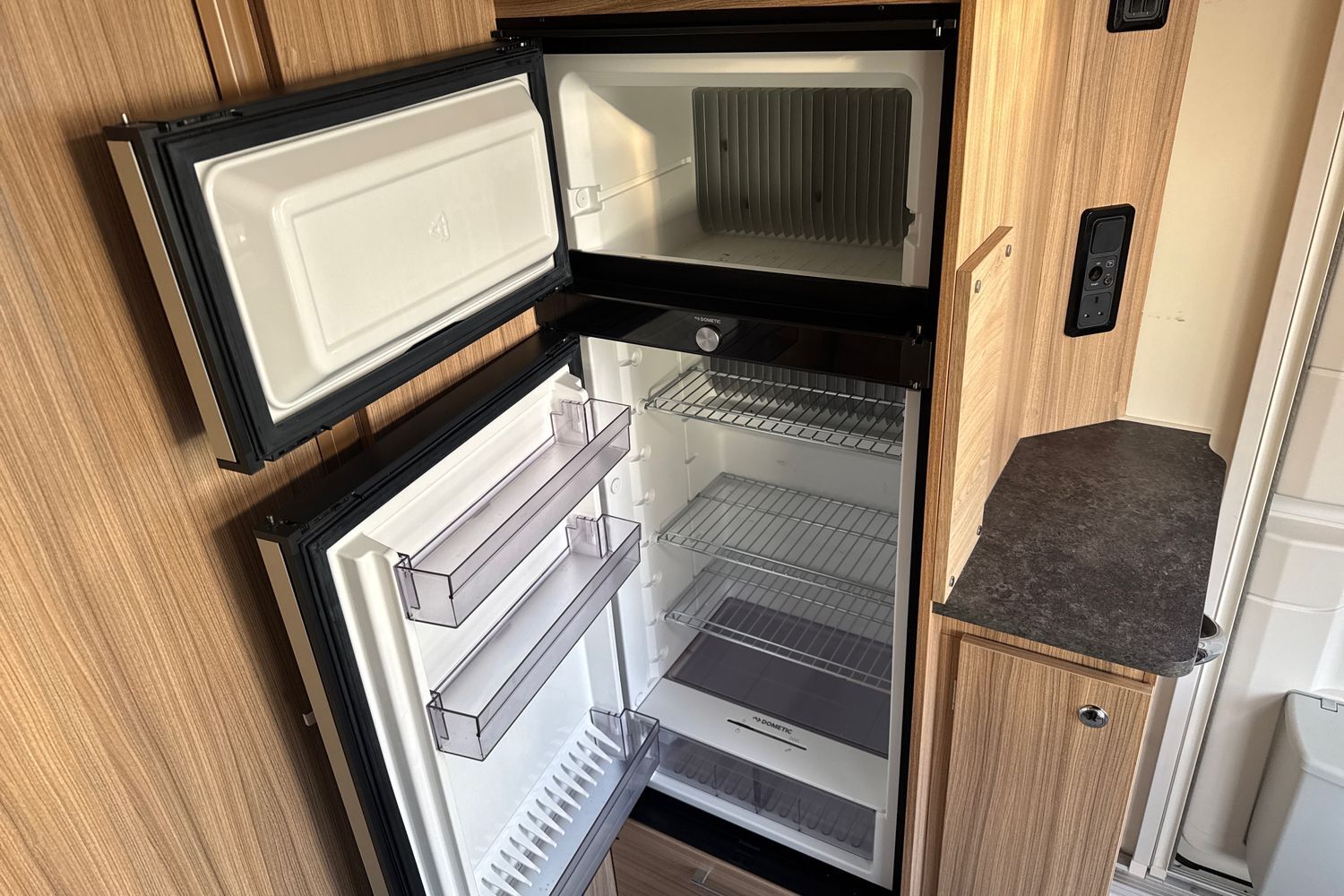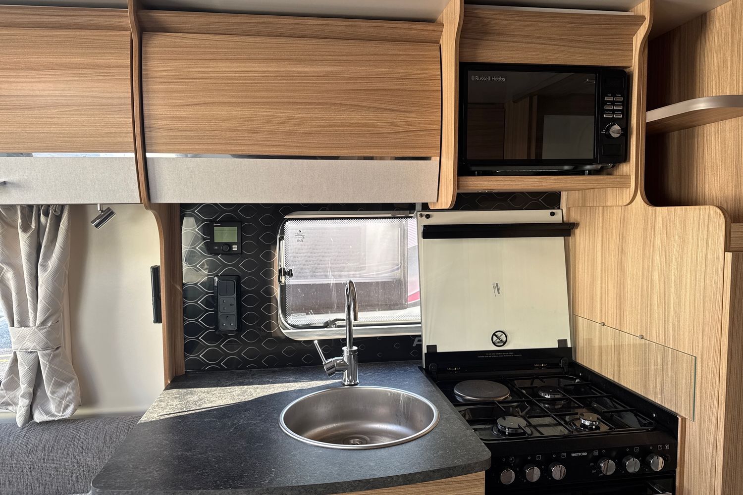 Hot water and heating is provided by the Truma dual fuel Combi system, with user friendly digital control panel with adjustable fan and water boost functions.
