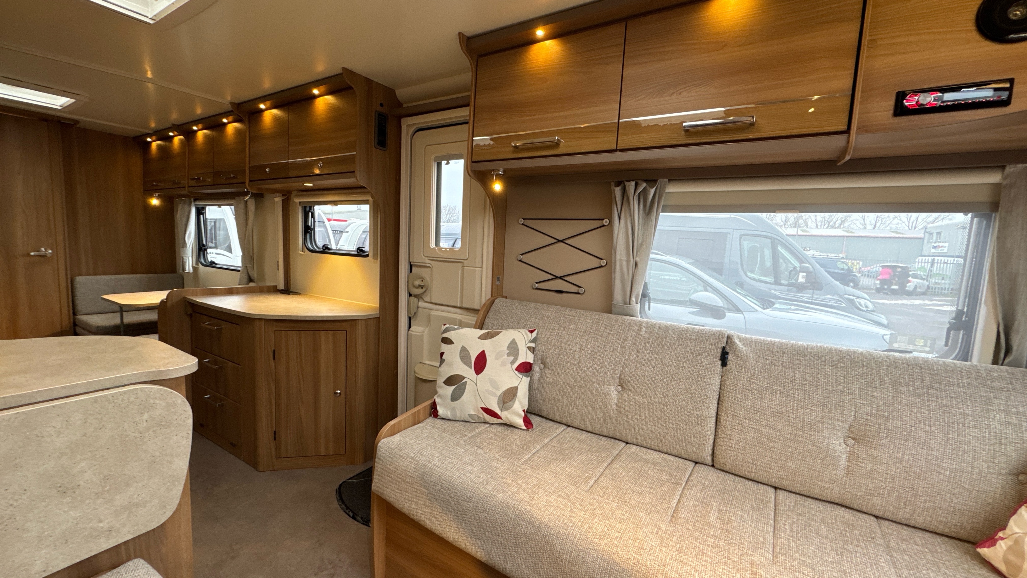 The Palermo has lots of refinements including a stunning lighting style involving 17 bright LEDs mounted into wooden panels running above all of the lockers, and even a magazine rack, on the nearside wall of the lounge.
