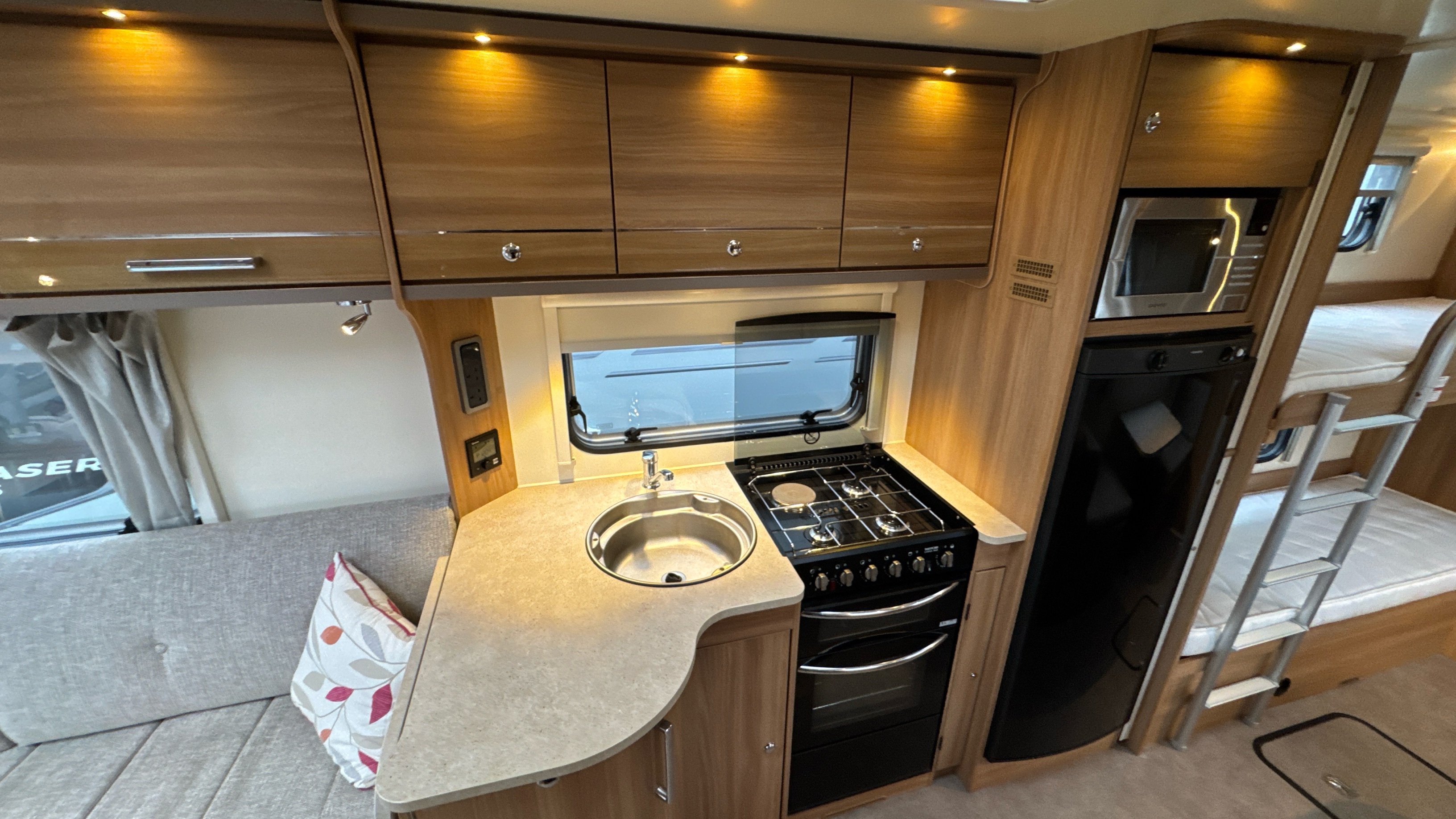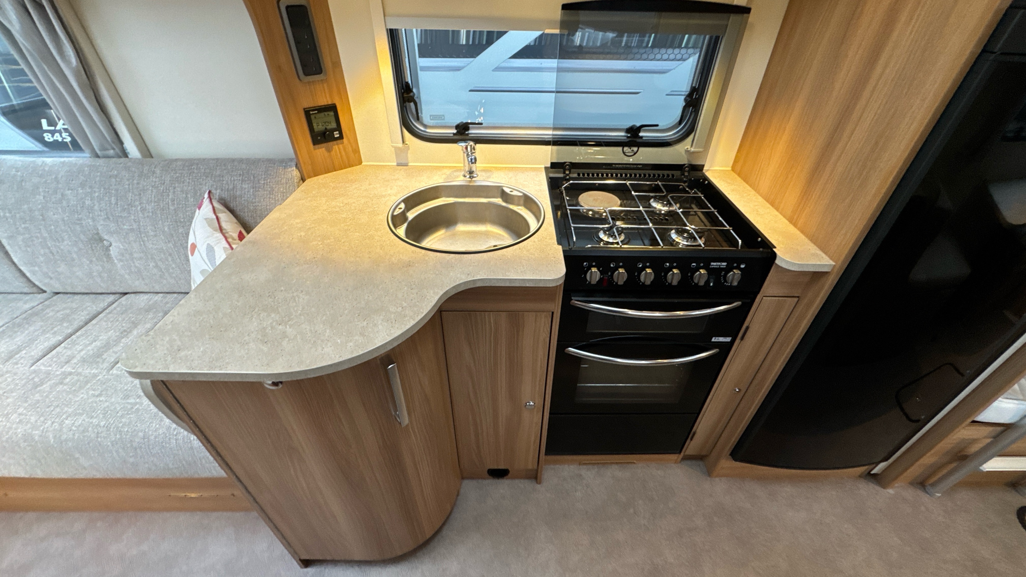 The Bailey Pegasus Palermo is Bailey’s biggest family caravan, with a unique layout and more than two metres of kitchen work surface space.