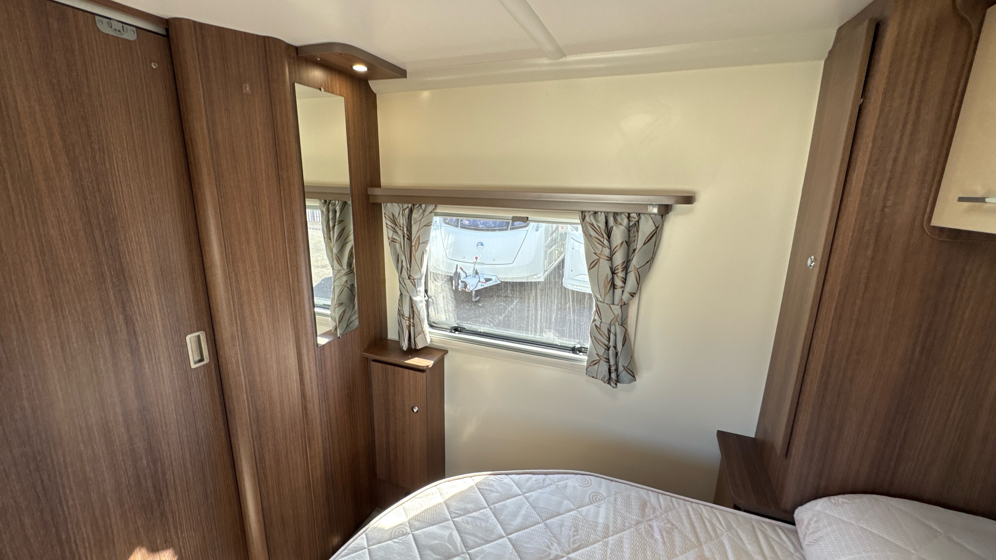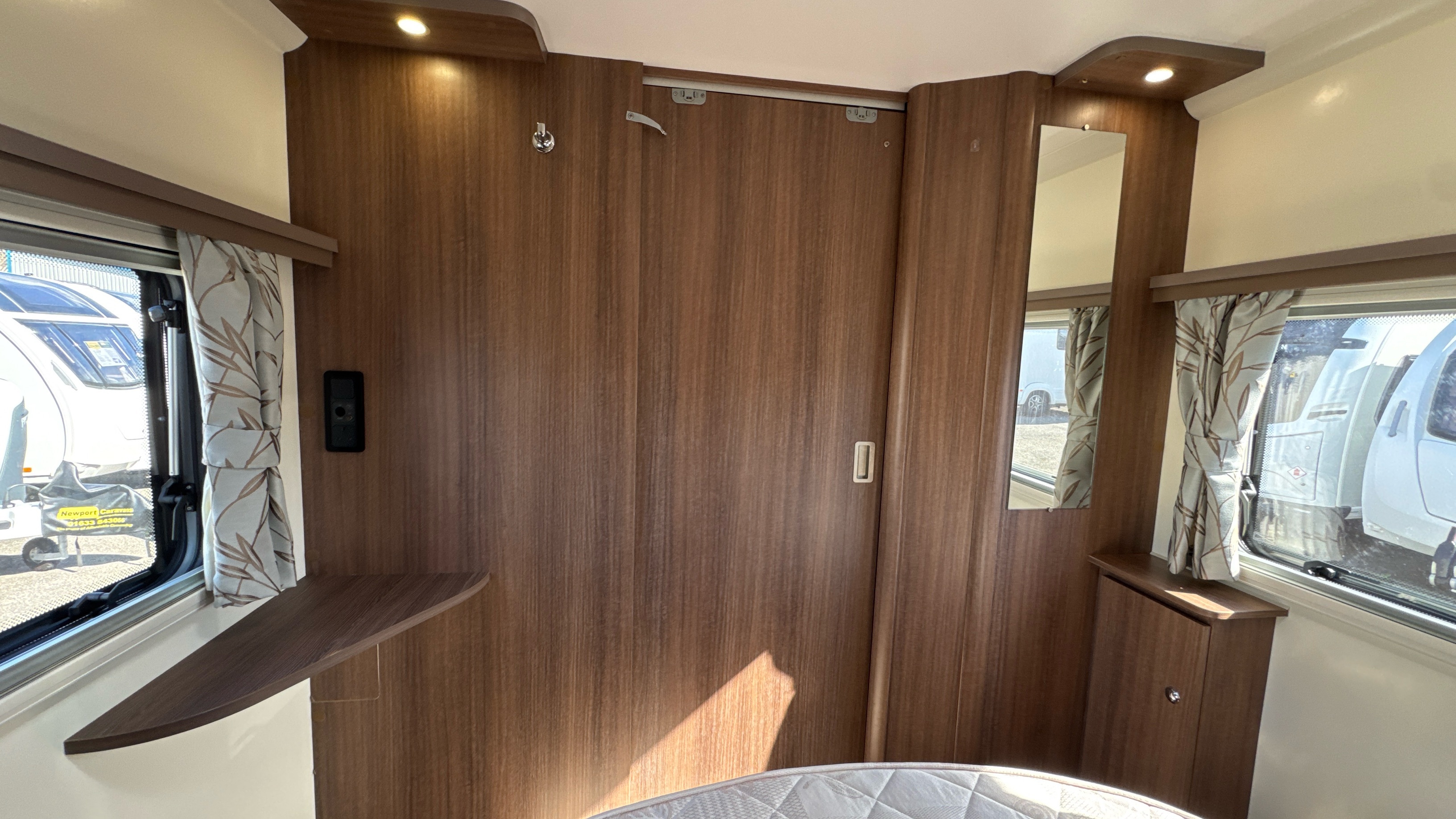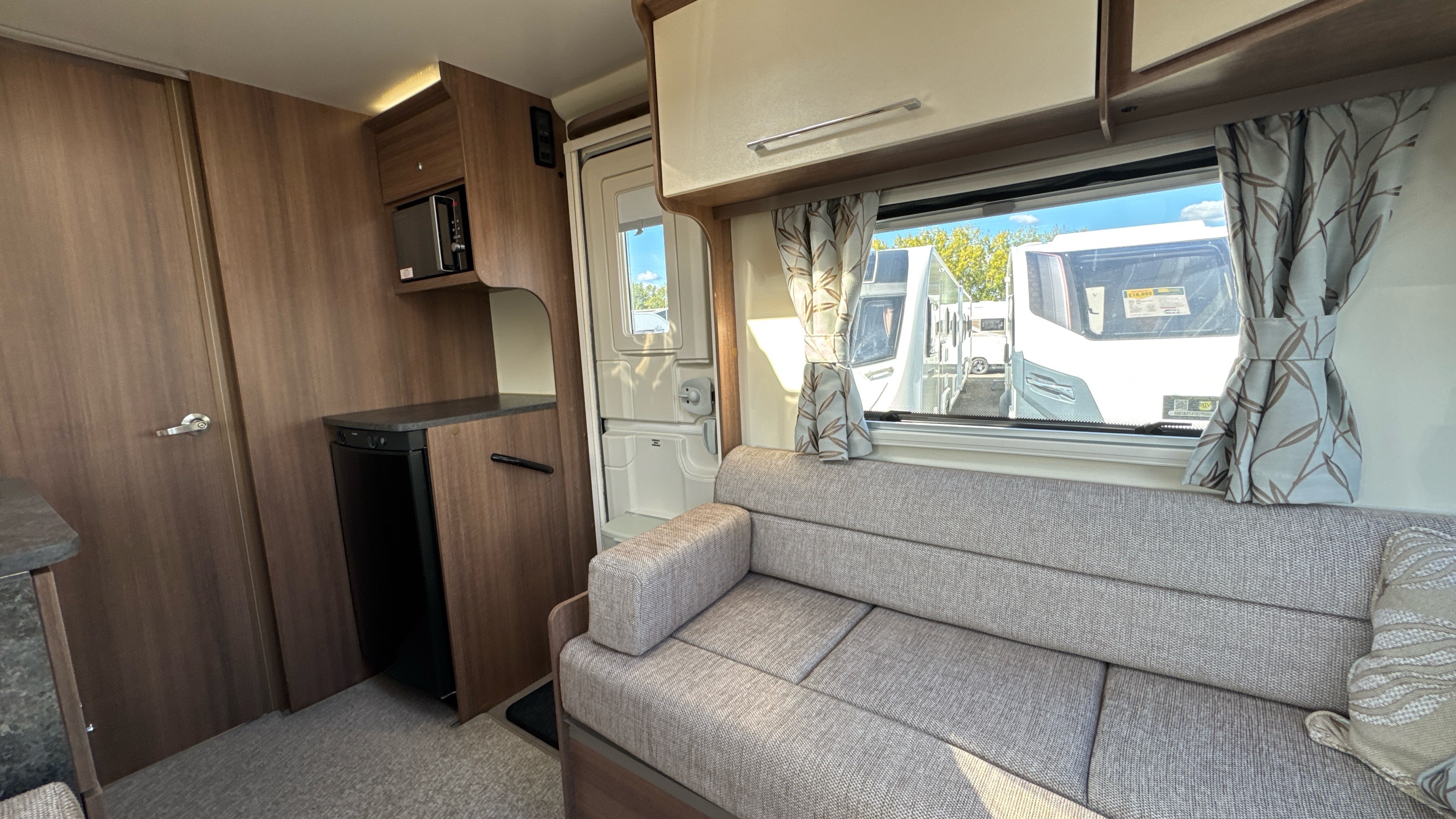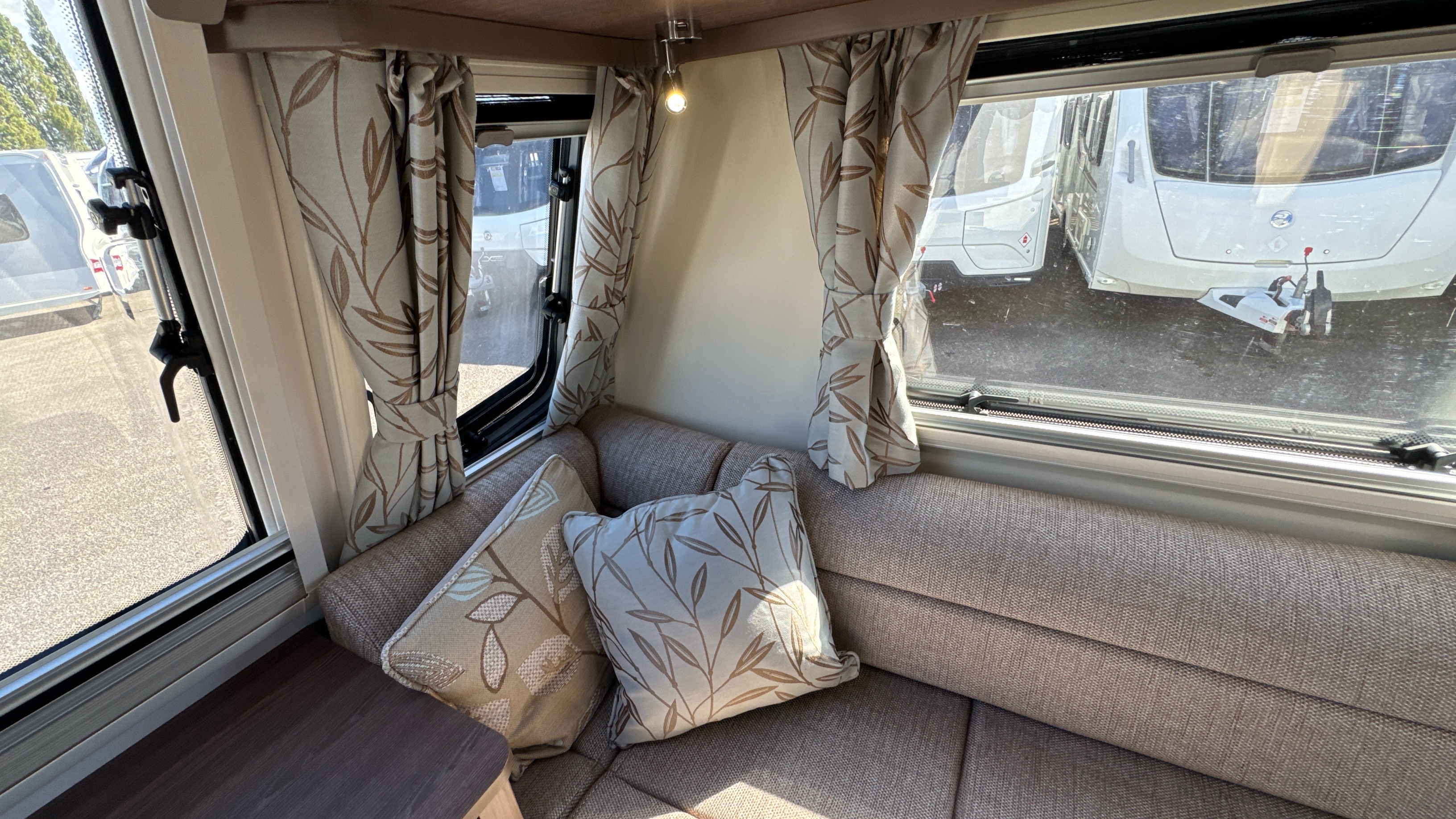 Layout consists of a dedictaed walk around rear island bed with domestic style mattress, acres of underbed storage, his 'n' hers wardrobe plus ample overhead overhead locker storage.