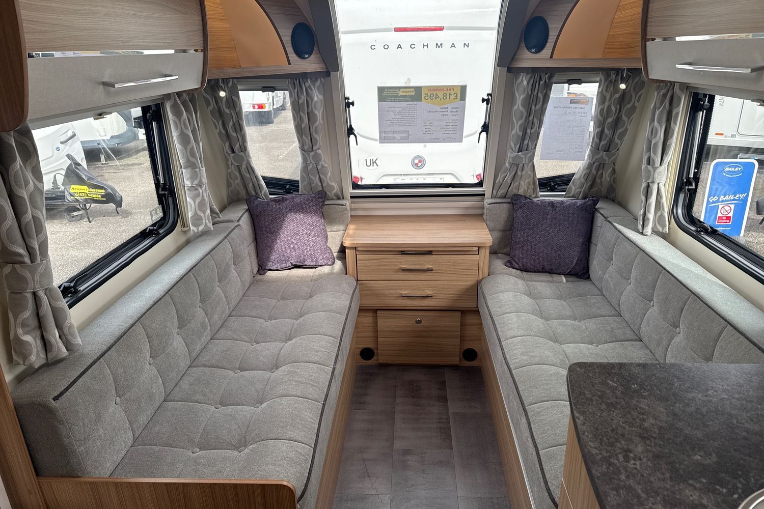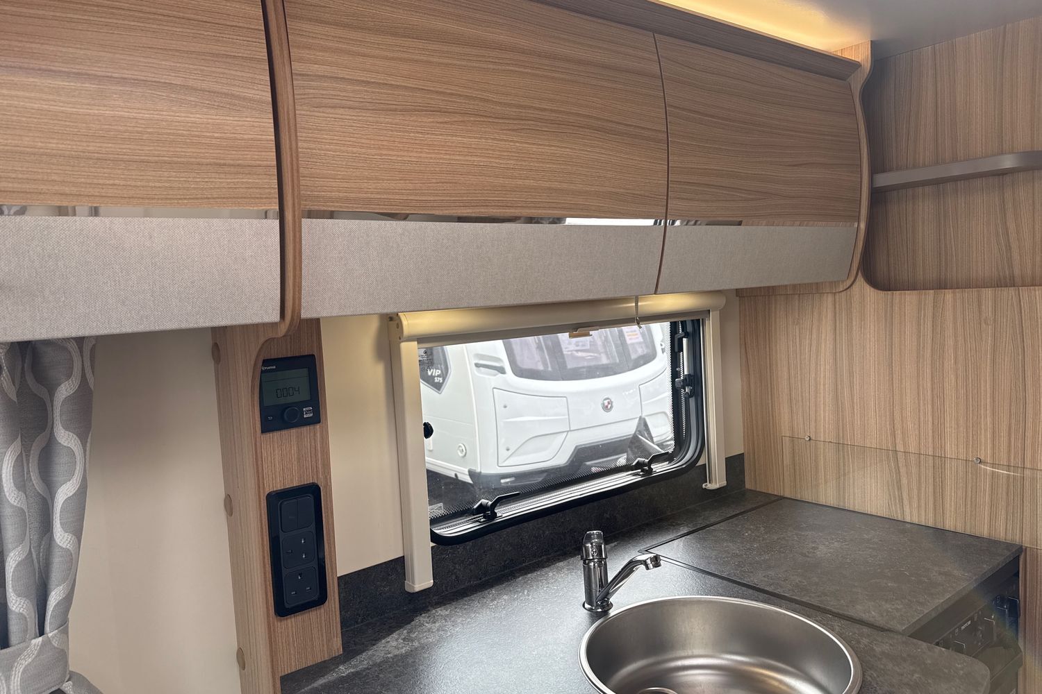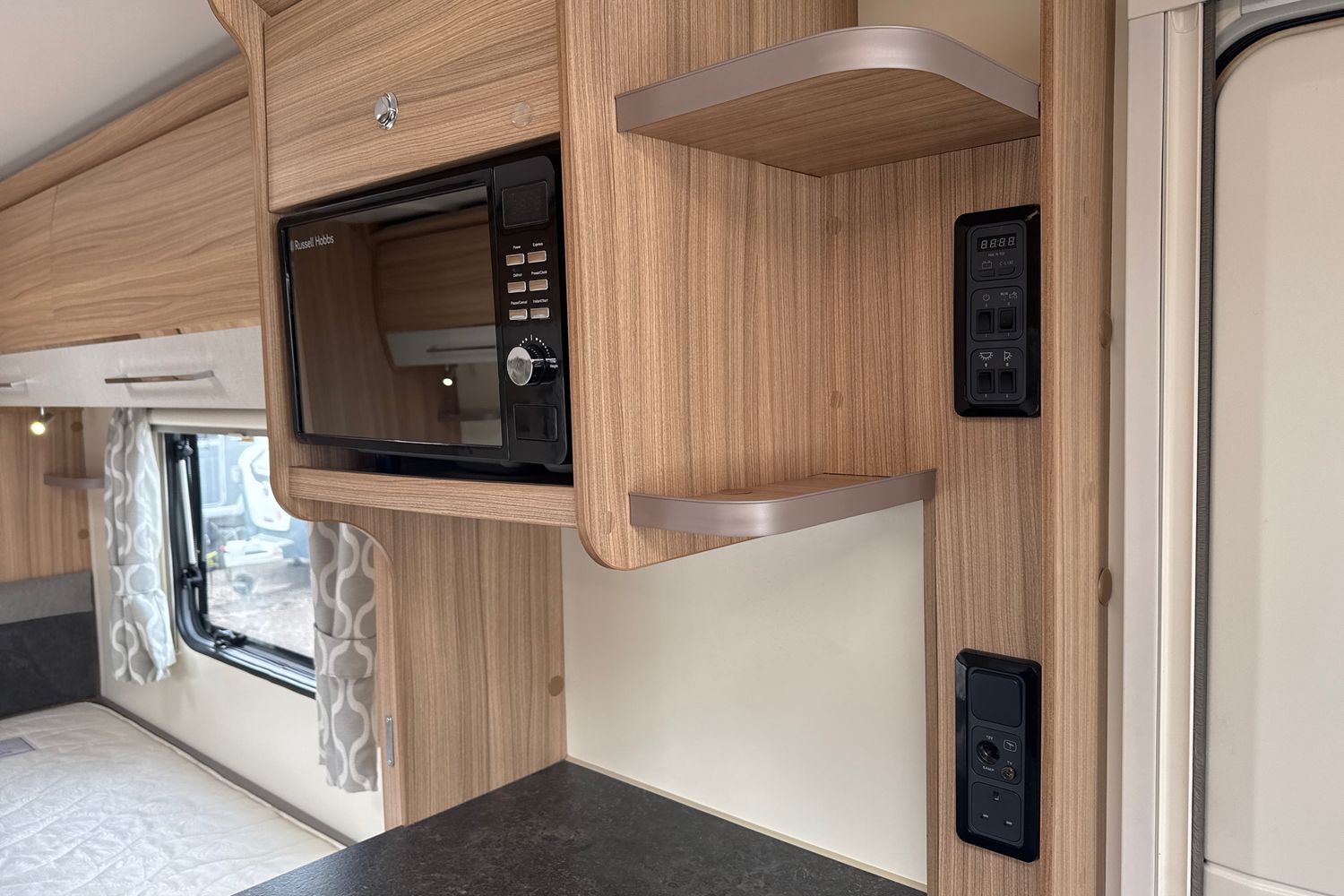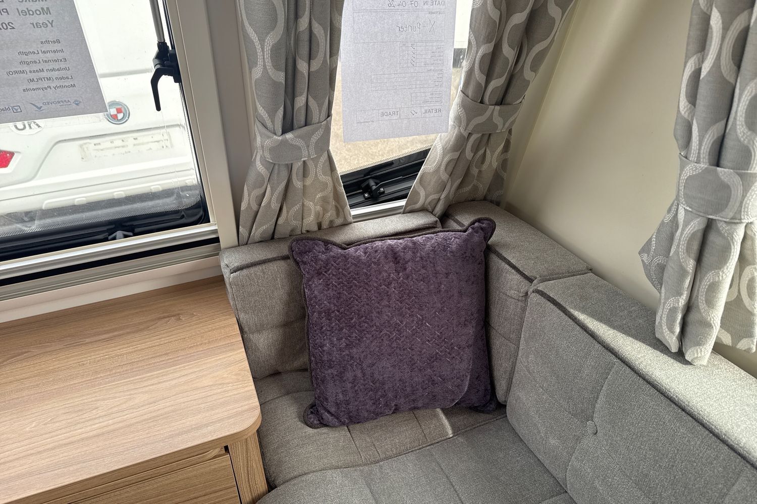 New arrival as a part exchange - first registered on the 26th April 2024 with only the one registered owner from new with a good service history record. Fantastic layout which features a dedicated full width rear washroom with large walk in shower, thetford cassette toilet and sink and vanity unit, dedicated fixed single beds with acres of storage space underneath each plus a plethora of overhead storage lockers.