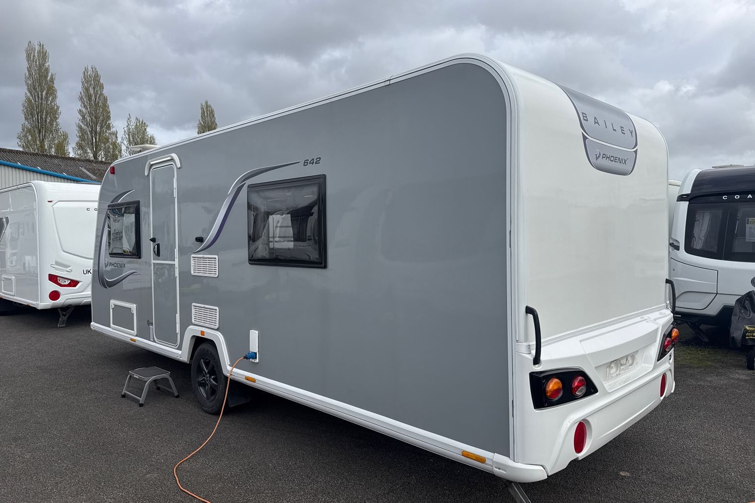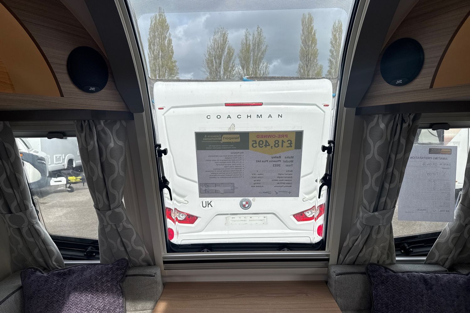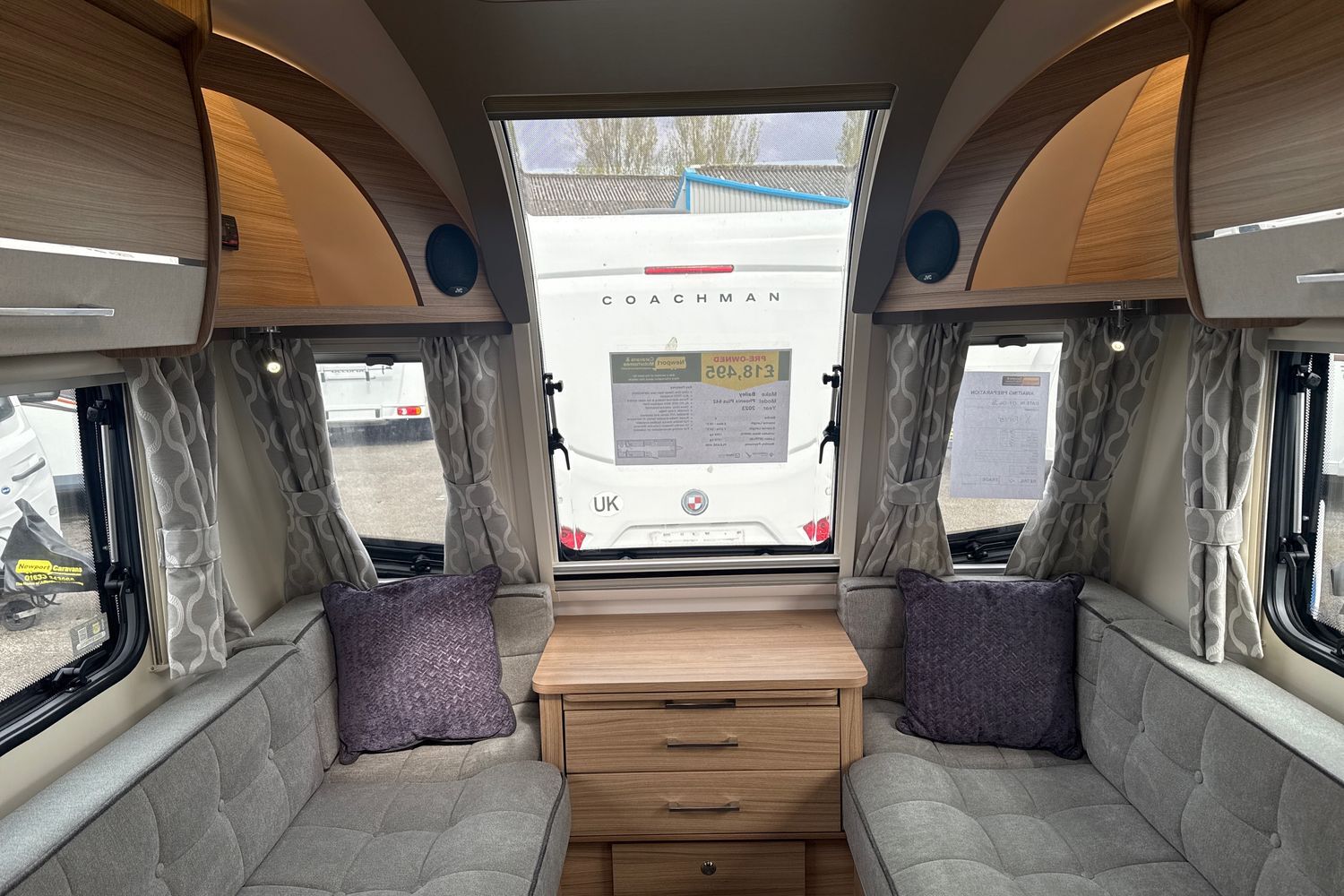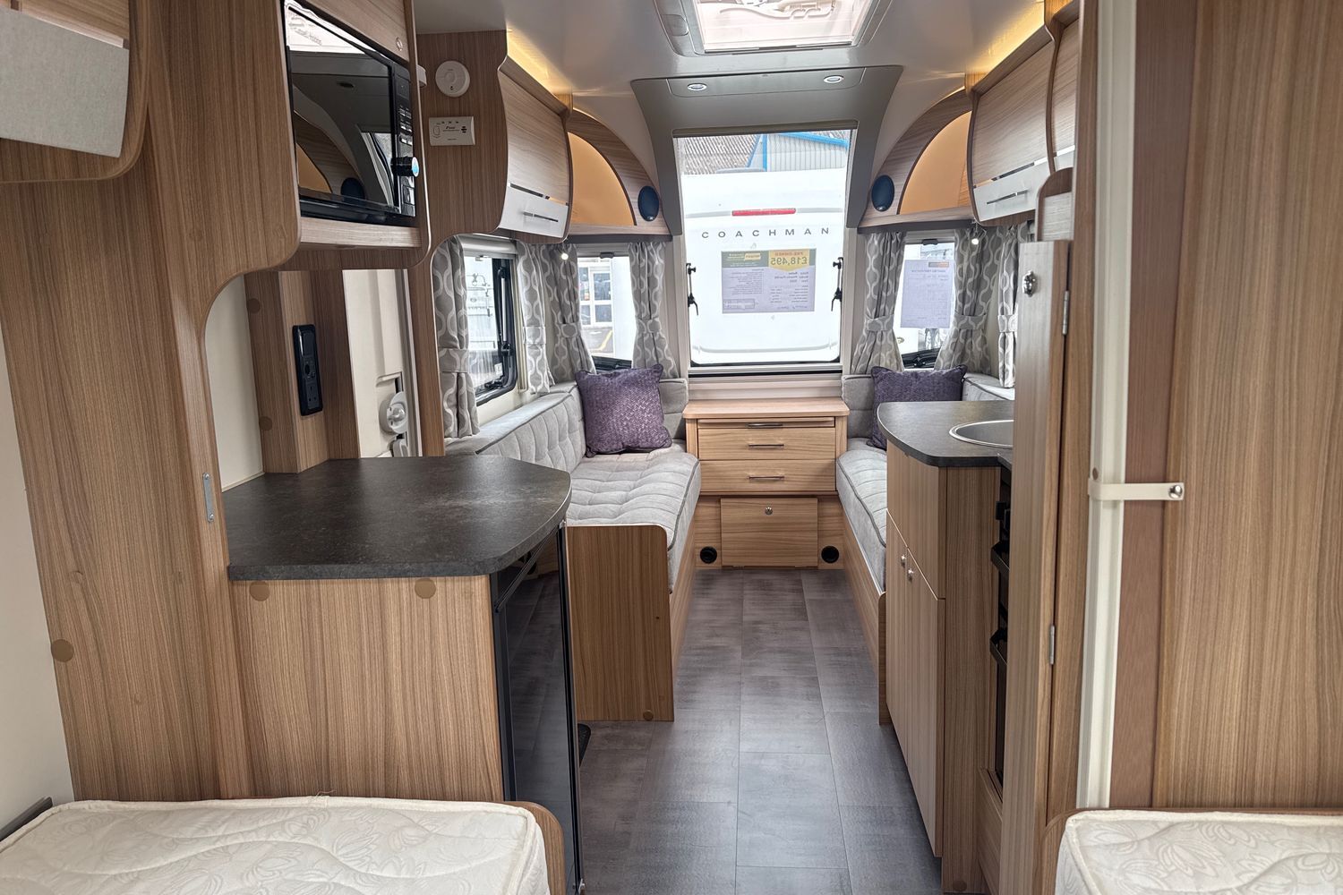 New arrival as a part exchange - first registered on the 26th April 2024 with only the one registered owner from new with a good service history record. Fantastic layout which features a dedicated full width rear washroom with large walk in shower, thetford cassette toilet and sink and vanity unit, dedicated fixed single beds with acres of storage space underneath each plus a plethora of overhead storage lockers.