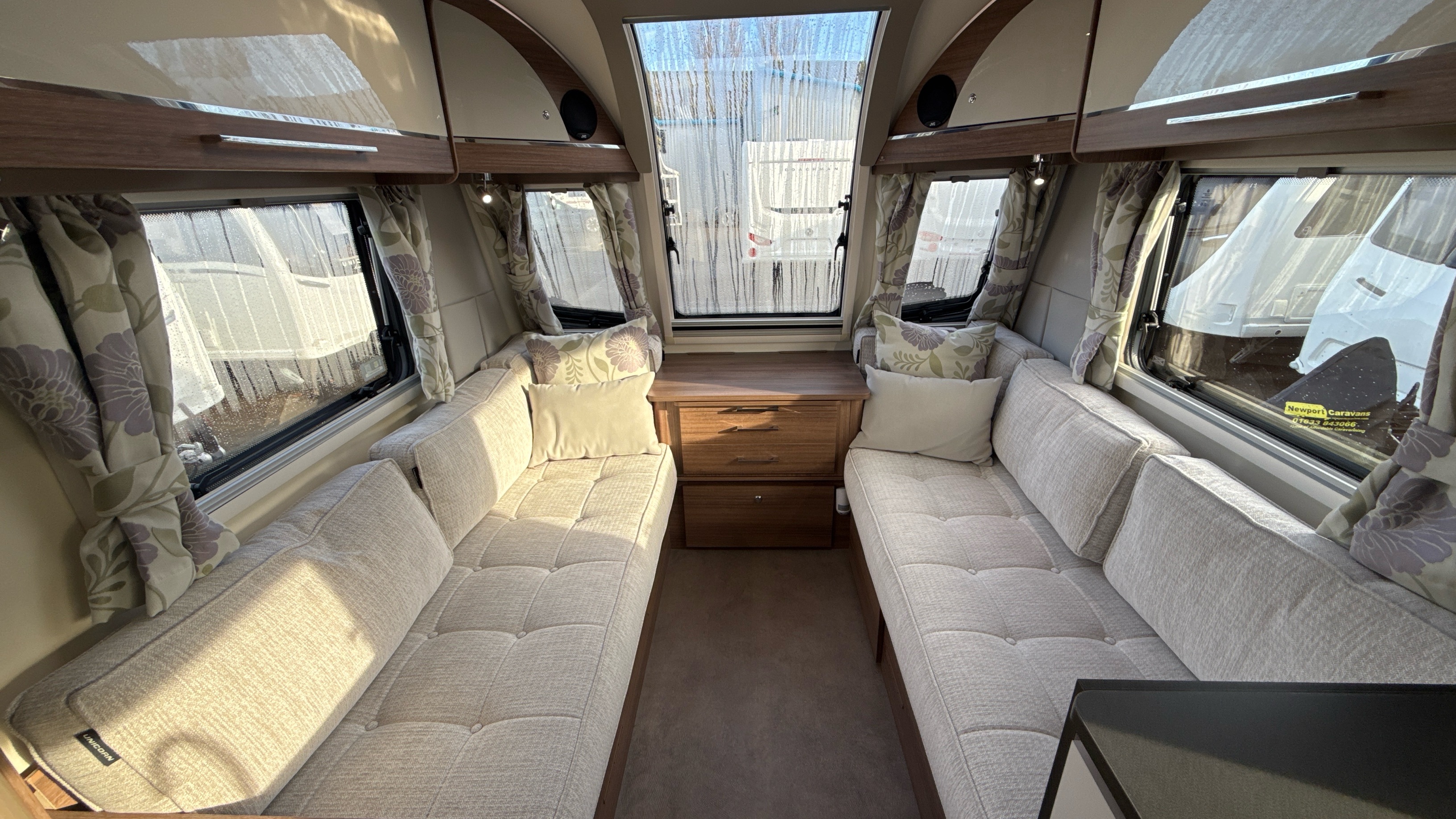 Other features of note include luxury ALDE wet central heating (fully programmable on a digital display), AL-KO ATC active trailer control system which offers a smoother and safer towing experience, external gas BBQ and mains 230v socket and AL-KO secure wheel axle lock kit.