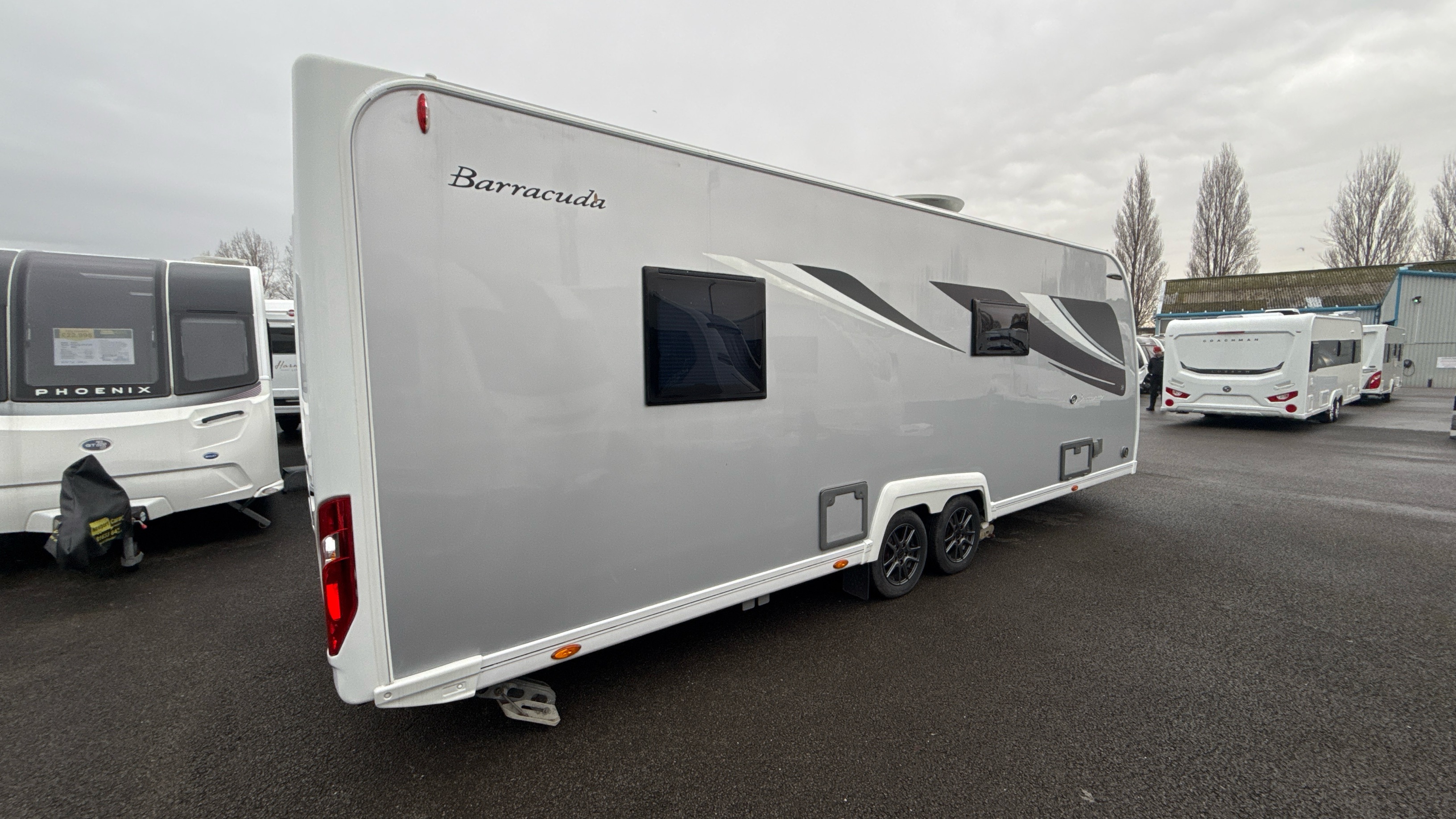 The Buccaneer Barracuda is, quite simply, like nothing else! A sumptuous L-shaped lounge with dedicated entertainment centre and 32” TV take pride of place at the fore - and converts to a comfortable double bed at night. At the rear is a bright and spacious double bedroom, with retractable bed. The Barracuda boasts a split-style washroom configuration, which can be used as an en-suite or family bathroom.