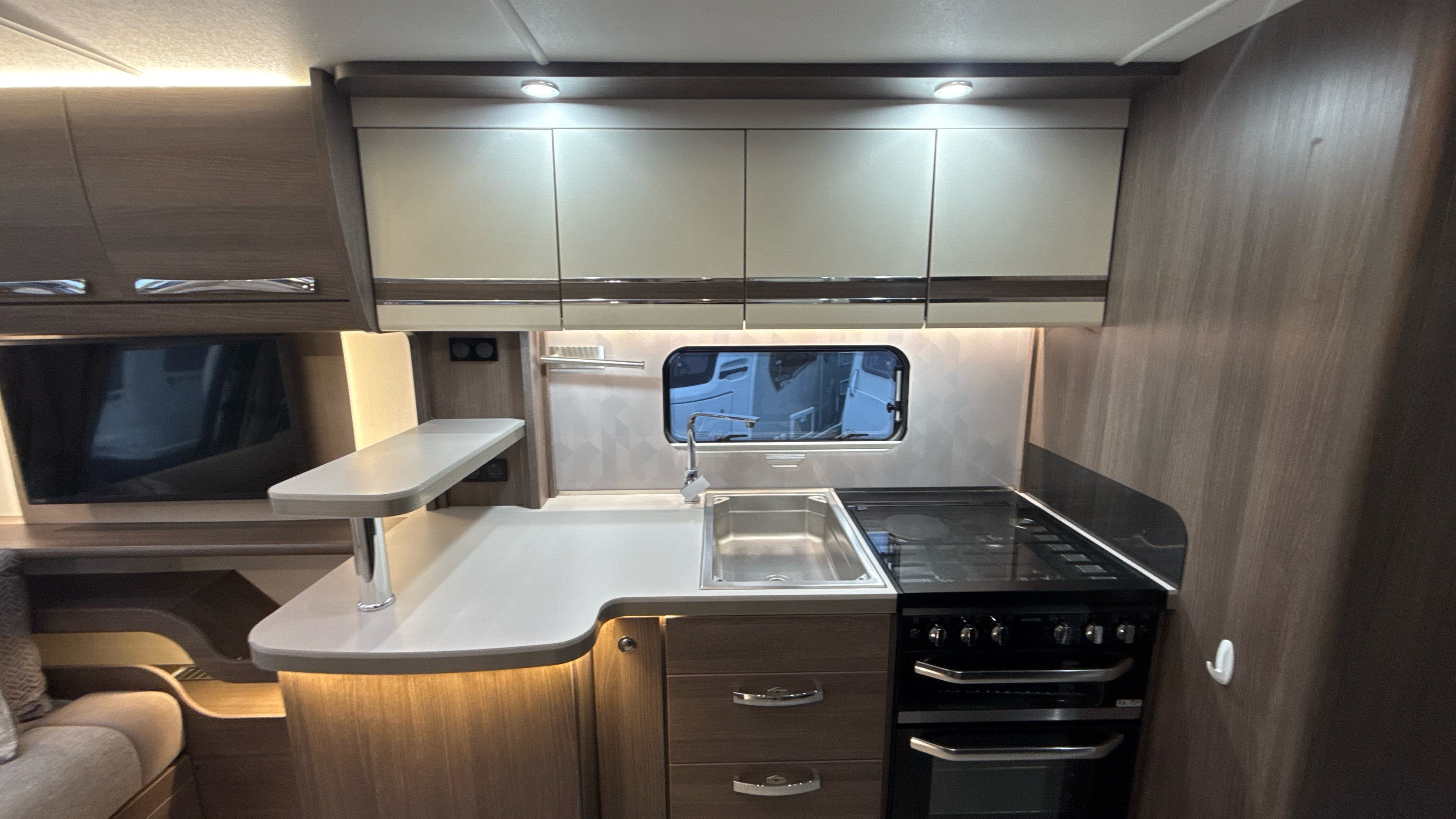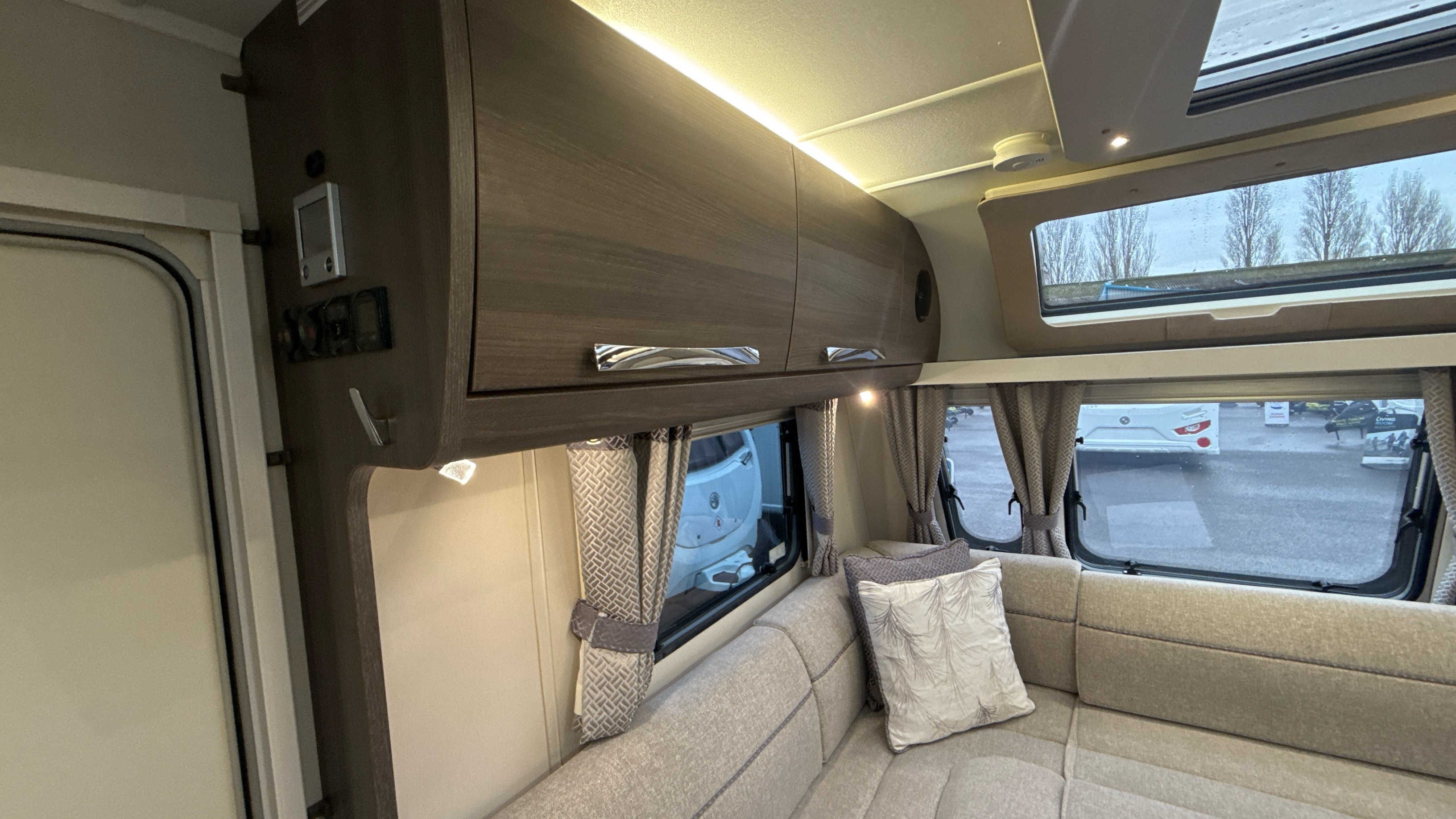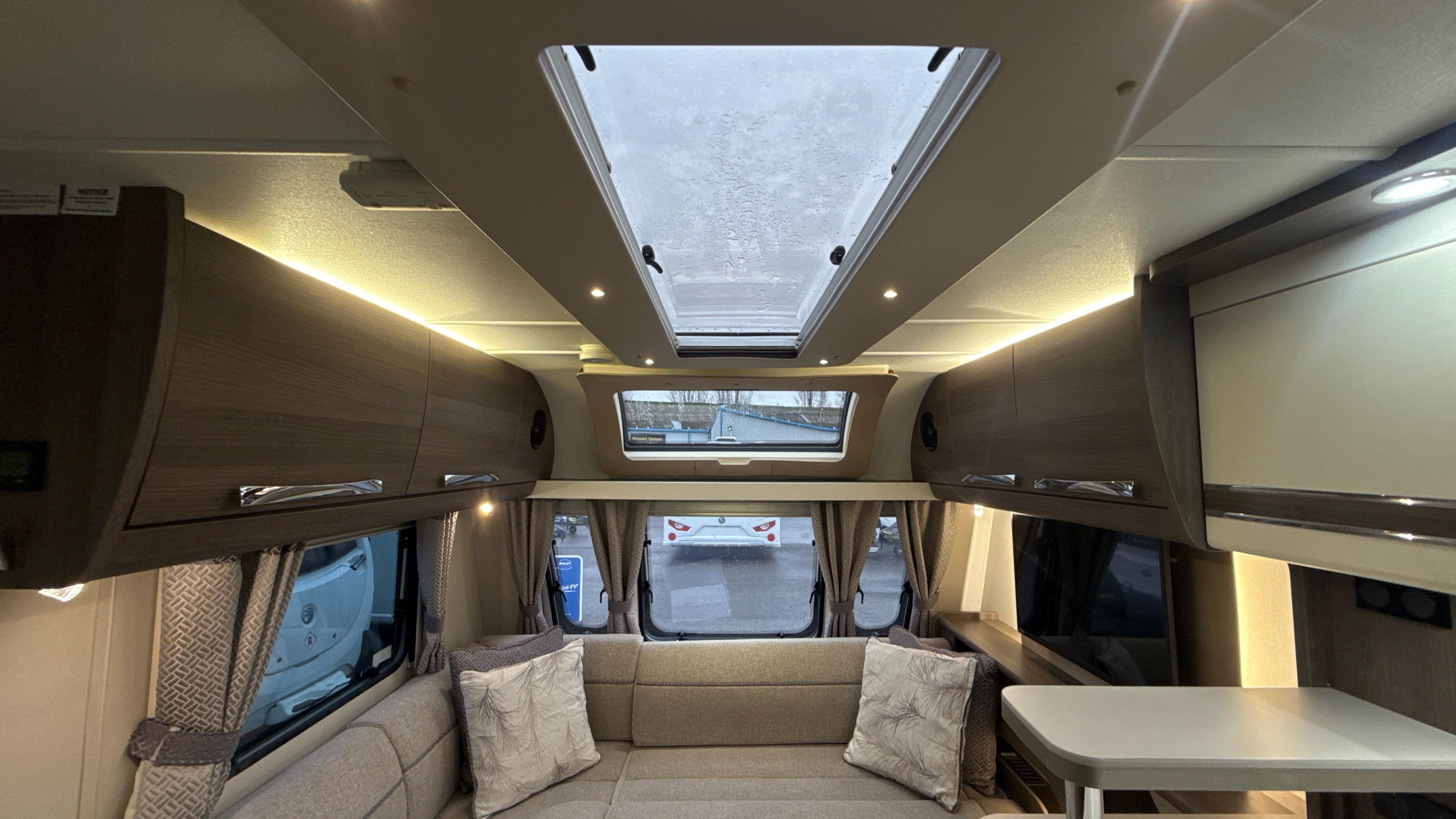 - Wide stunning panoramic Sky-Scape sunroof giving a flood of natural light into the front dinette, incorporating internal feature surround with LED lights and pleated night blind