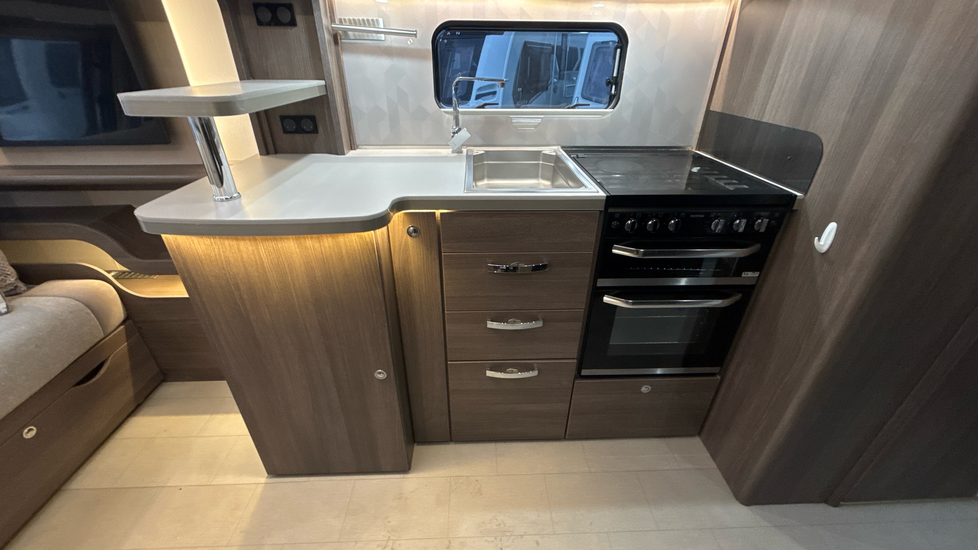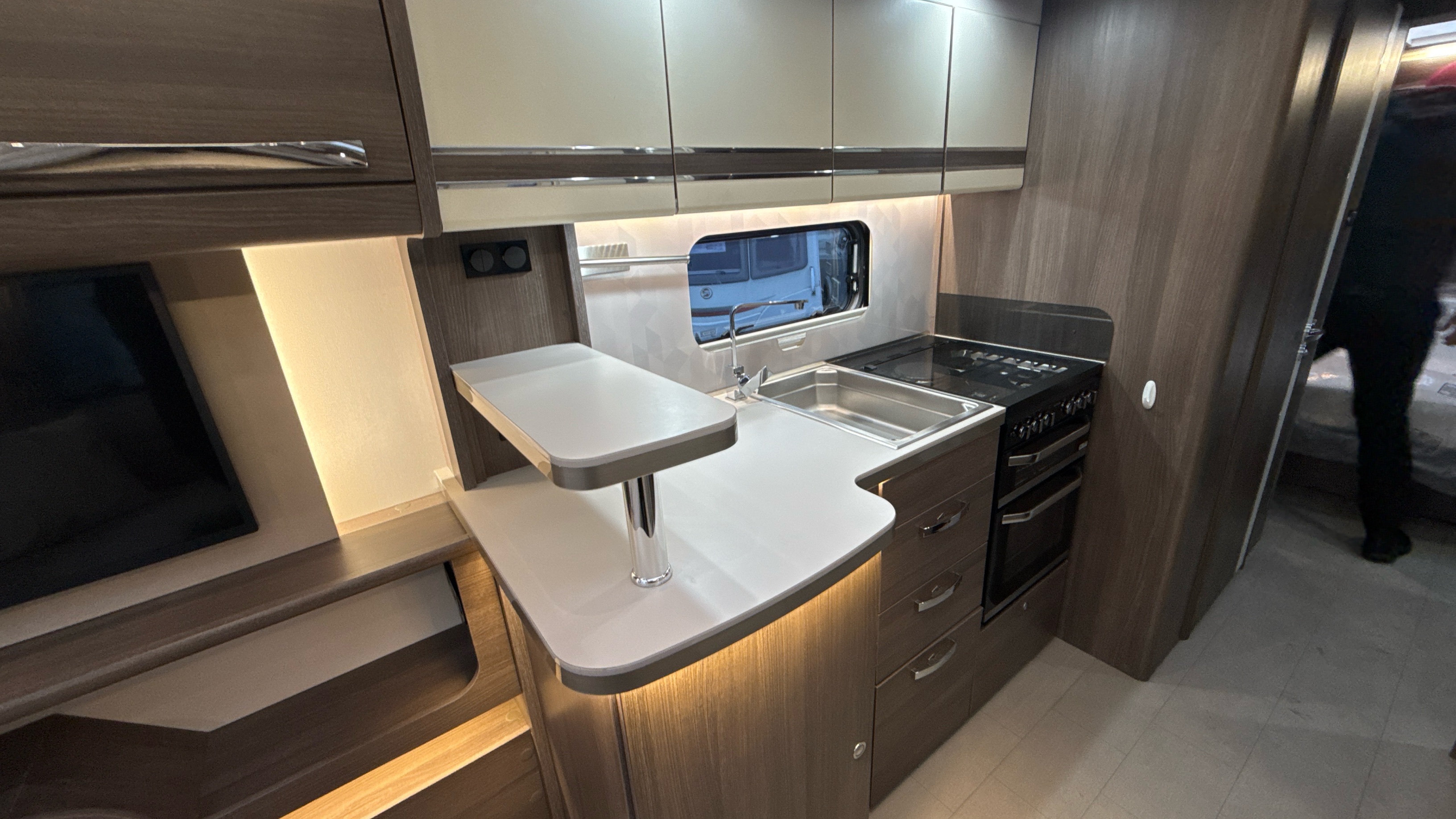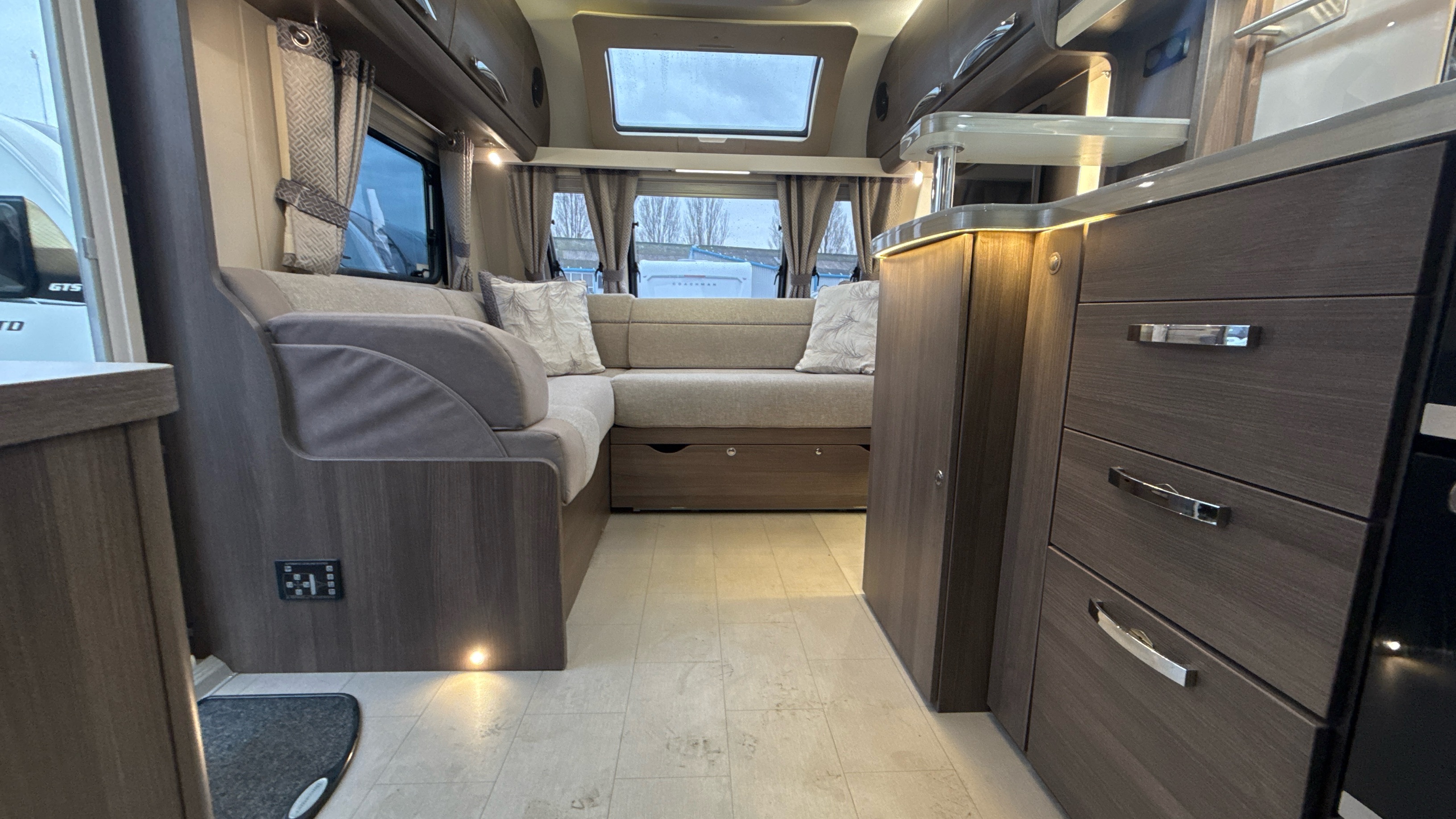 - Wide stunning panoramic Sky-Scape sunroof giving a flood of natural light into the front dinette, incorporating internal feature surround with LED lights and pleated night blind