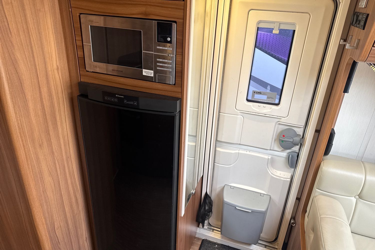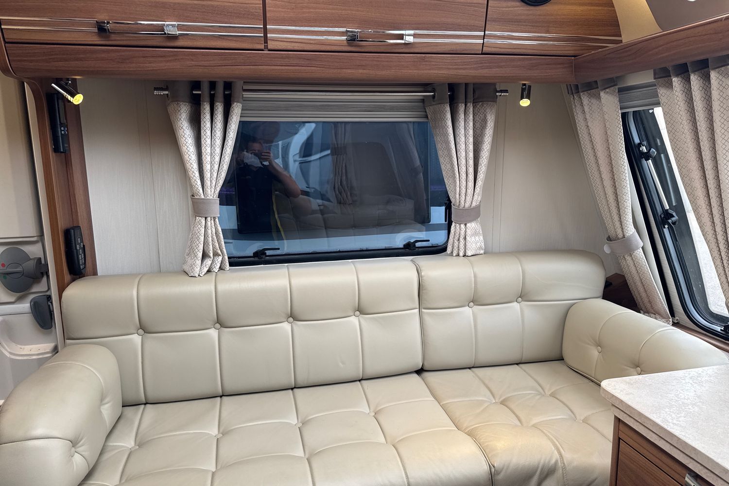 Upgraded from new with FULL cream leather upholstery and roof mounted Truma Aventa air conditioning. Being sold as part of our "2-Good-2-Trade" range as just doesnt quite meet our normal retail standard requirements, therefore supplied with a 6 month warranty which will cover all main appliances and excludes any damp or water ingress warranty. Ideal use on a seasonal pitch or for living accomodation for any Hinkley Point workers (delivery to site can be arranged *(delivery charges apply).