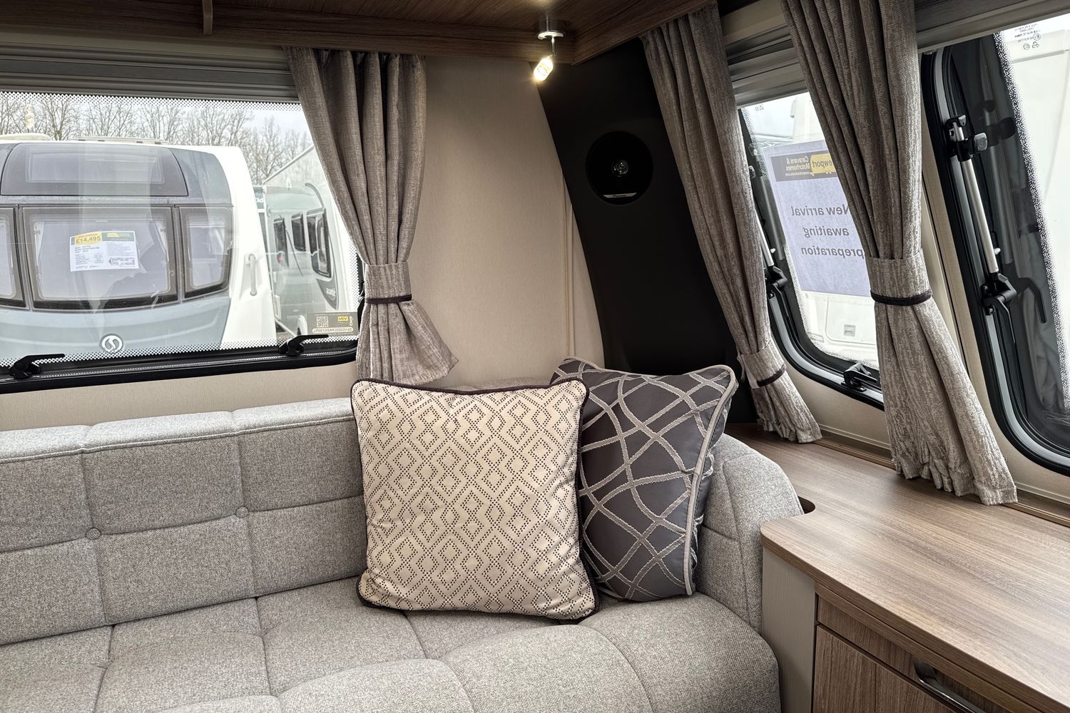 A recent new arrival as a part exchange against a motorhome - this superb Acadia 575 was originally purchased from ourselves when new on the 31st July 2024 and is presented in fantastic 'pre-loved' condition. Upgraded when new with a roof mounted Solar Panel kit and mobile Caravan Wi-Fi kit and represents superb value for money.