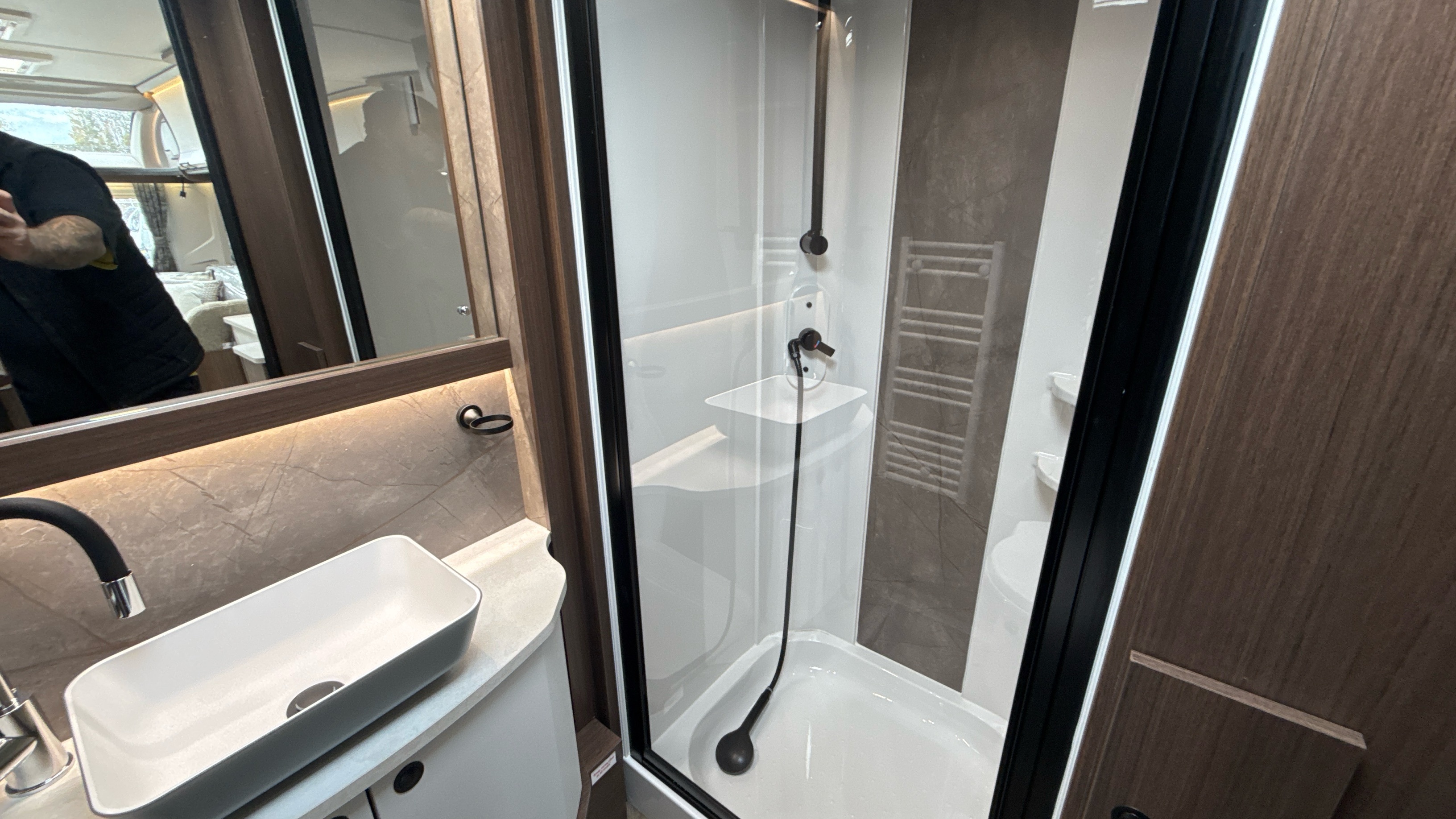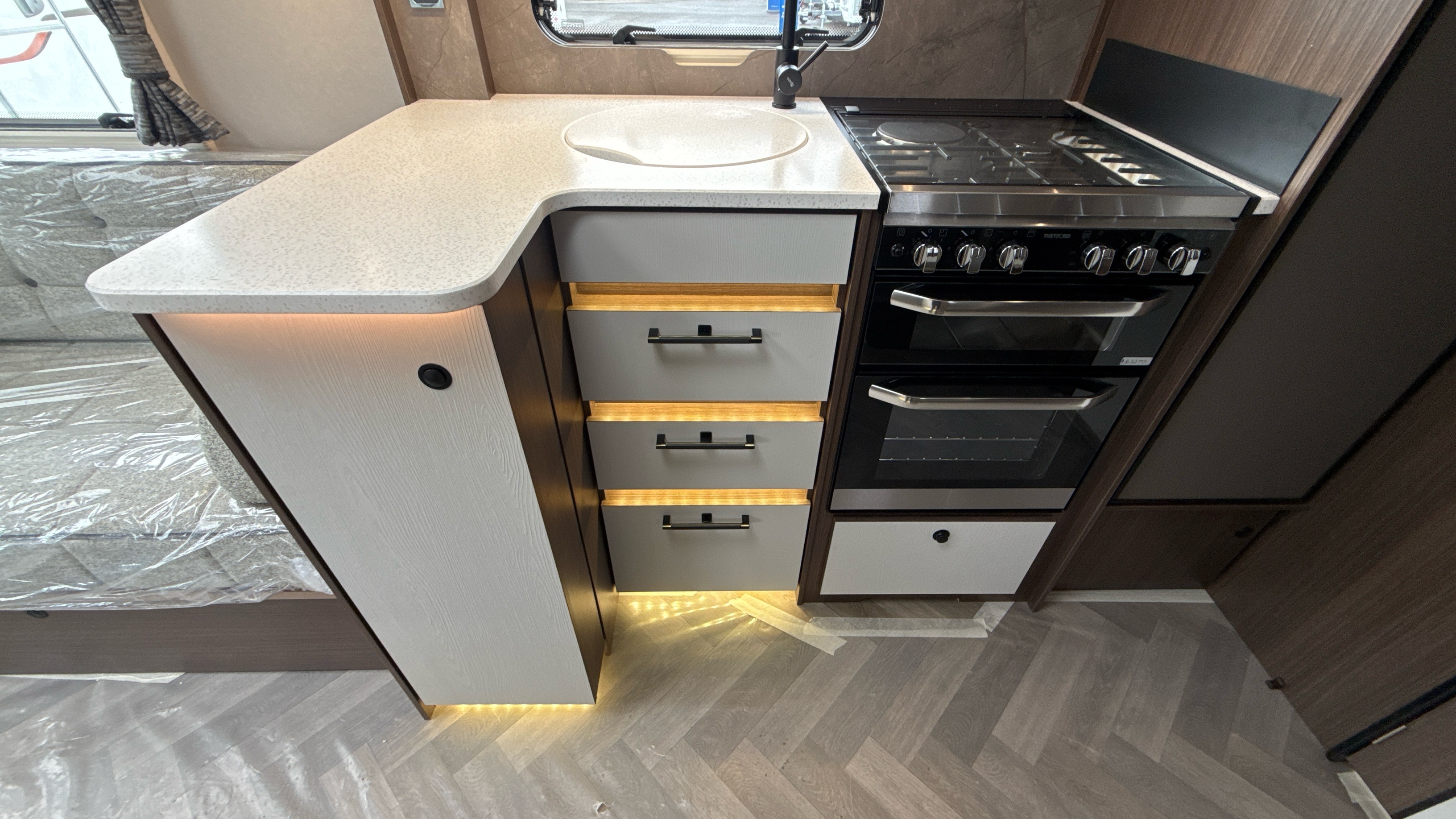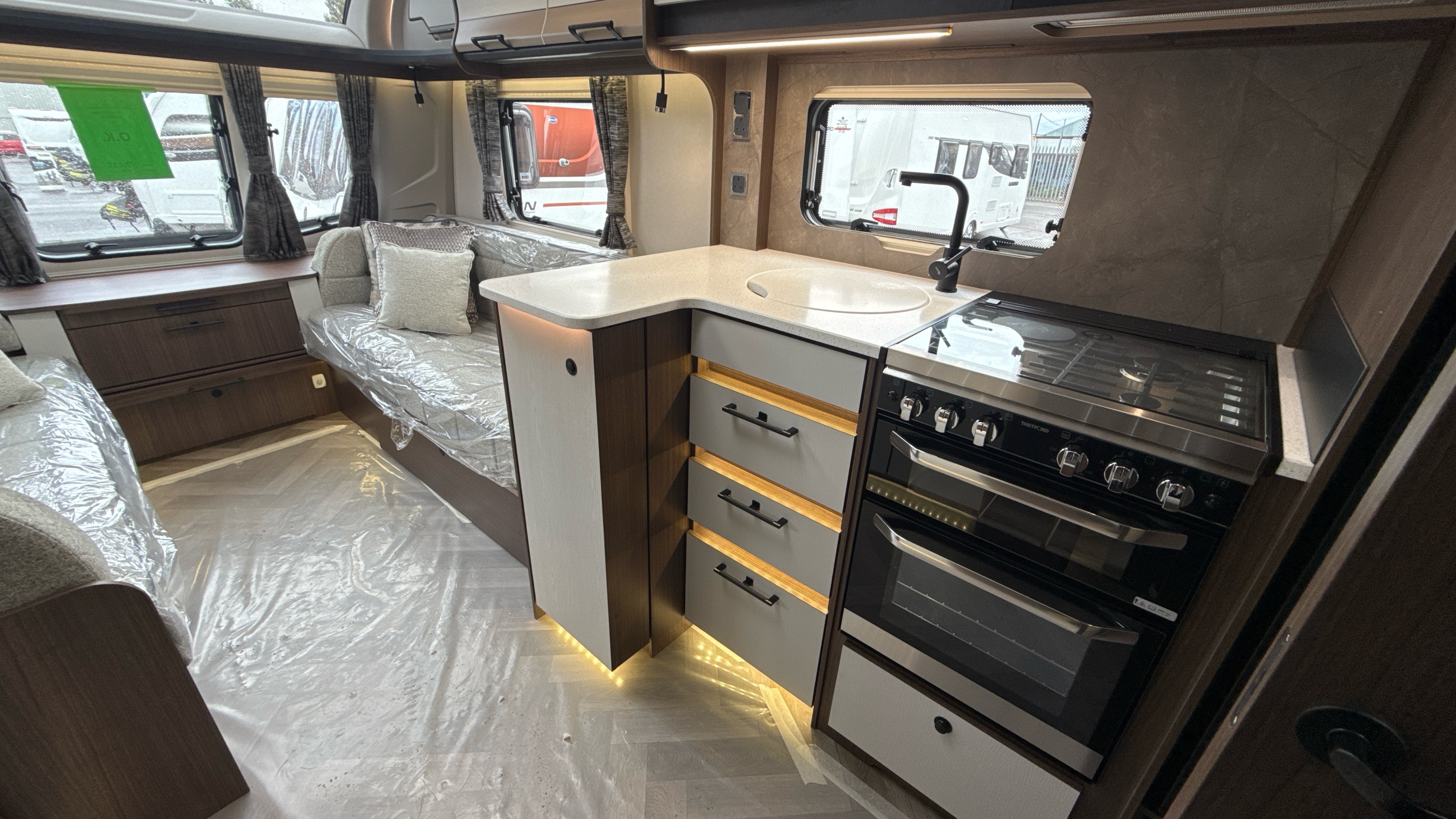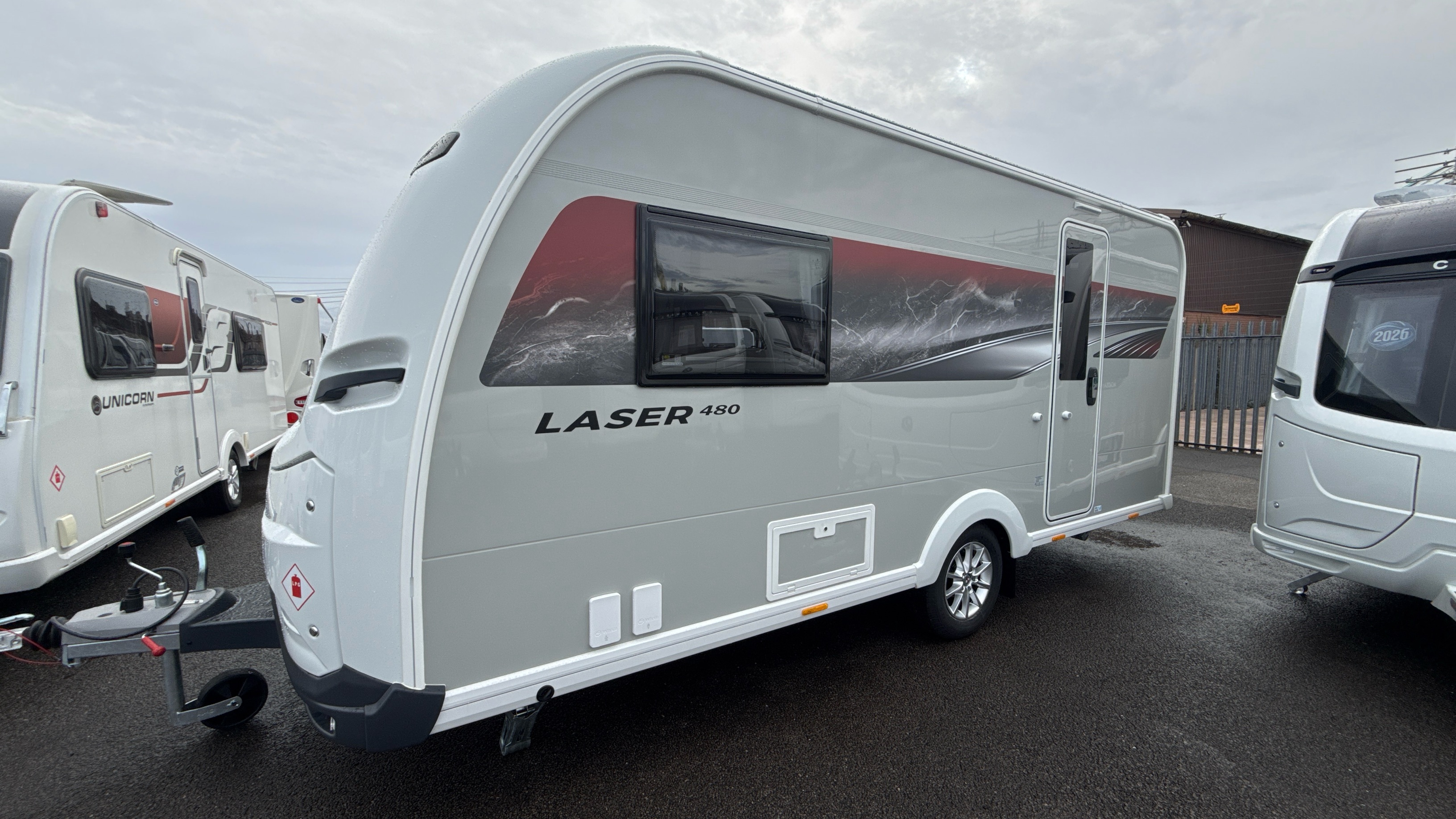 The Coachman Laser 480 Xtra is a completely new caravan not only for Coachman but for the UK market. This is certainly a caravan to turn heads on a campsite and get this with it being 8ft wide its the widest 2 berth caravan on the market. Featuring an end washroom with a middle kitchen and media wall make it the perfect caravan for couples. What’s New For 2026 For The Laser Range?