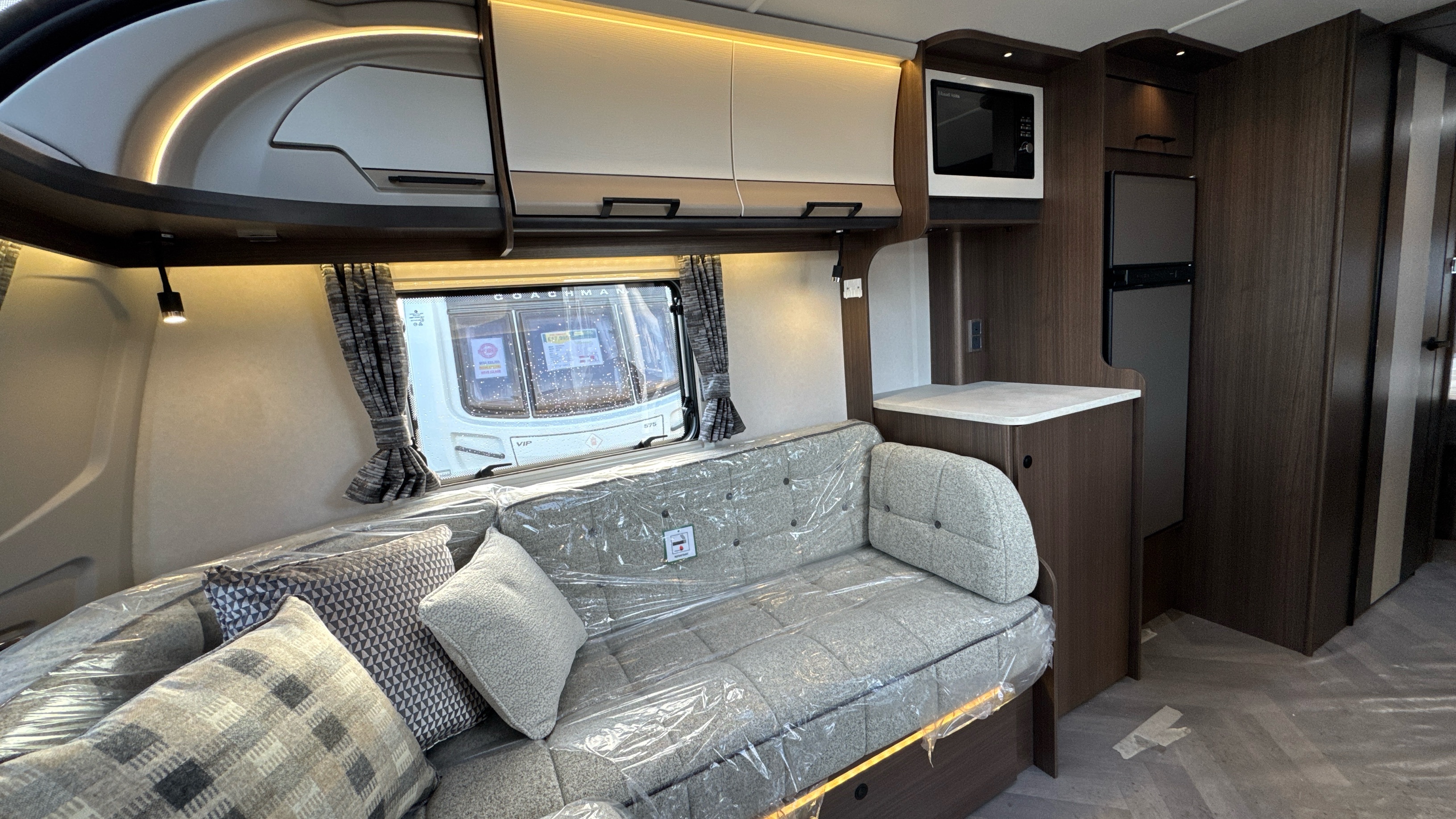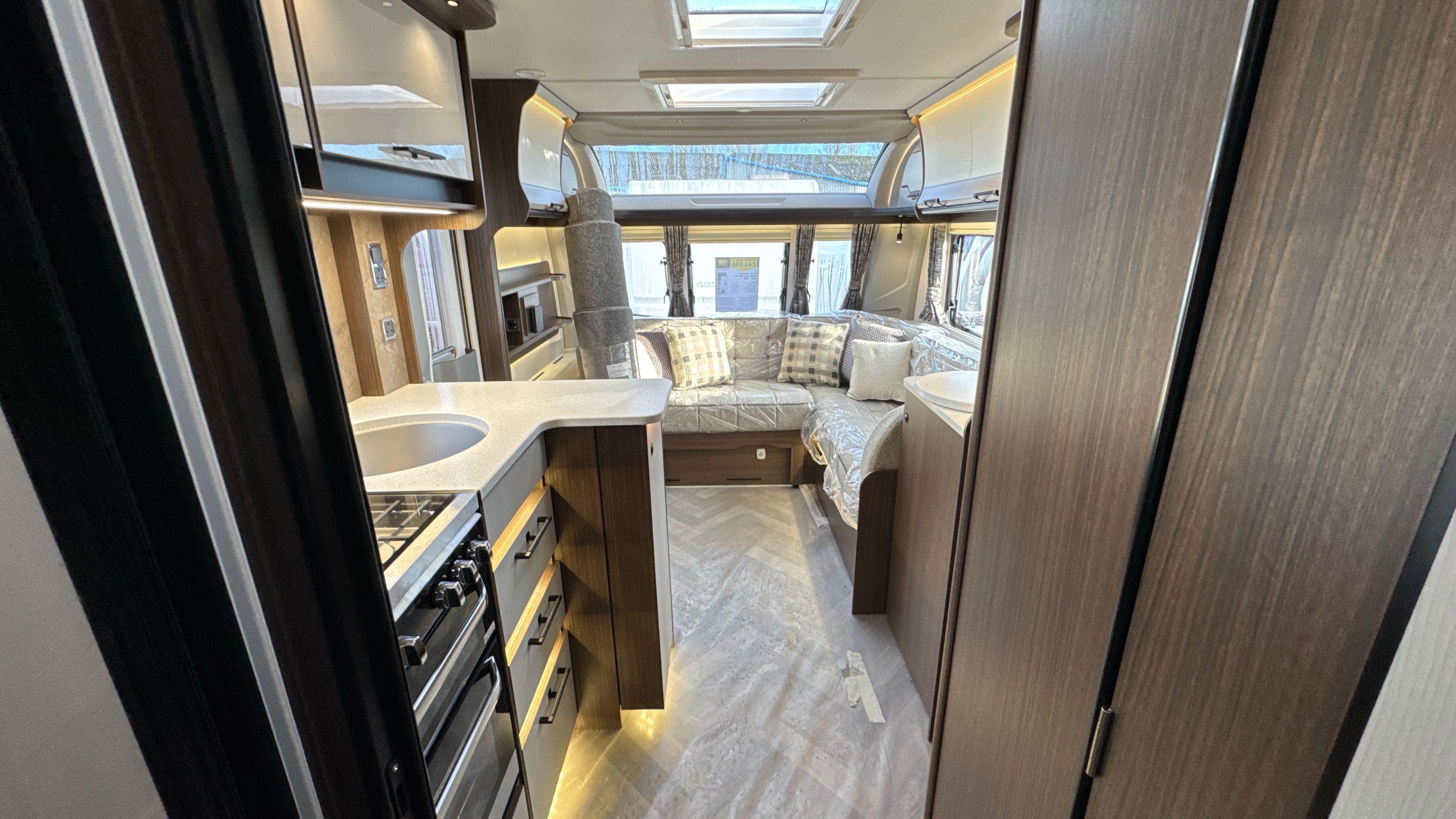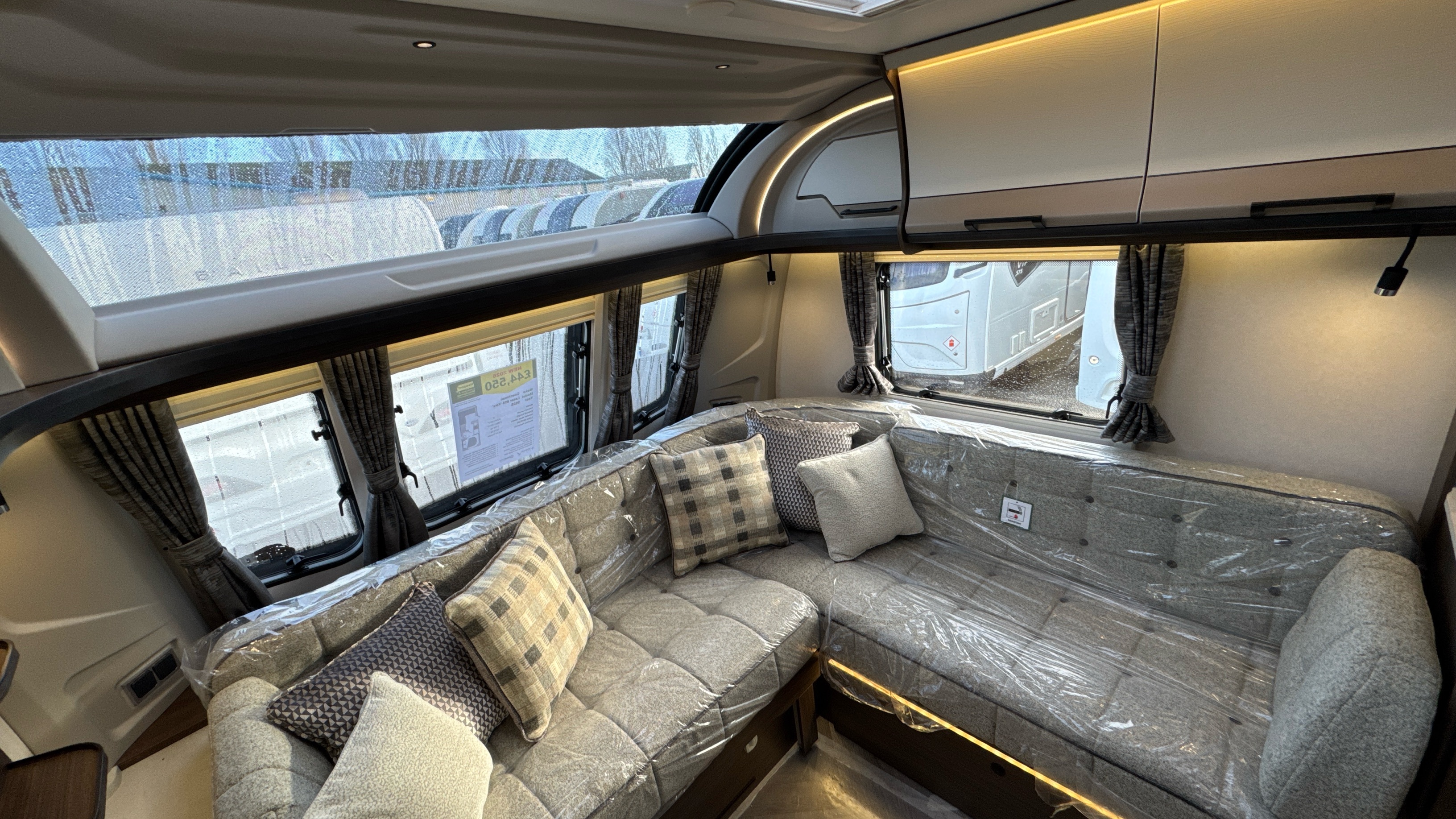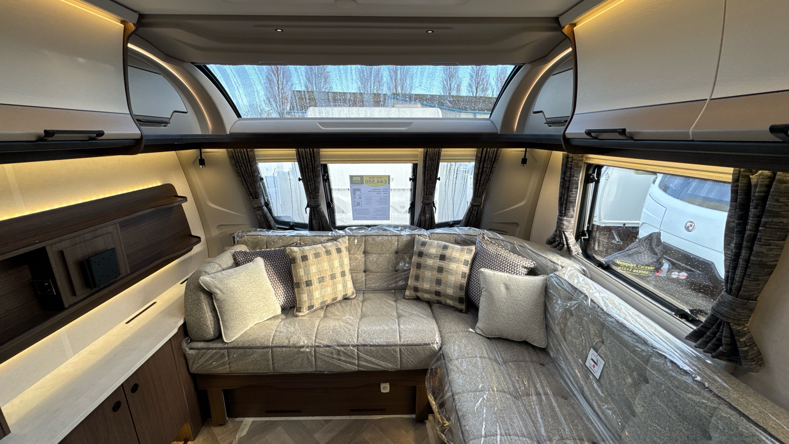 • ABS front panel incorporating, integral grab handles, fixed panoramic roof window, 3 flush fitting opening front windows and dual integrated front lockers for gas and storage with gas strut retainers