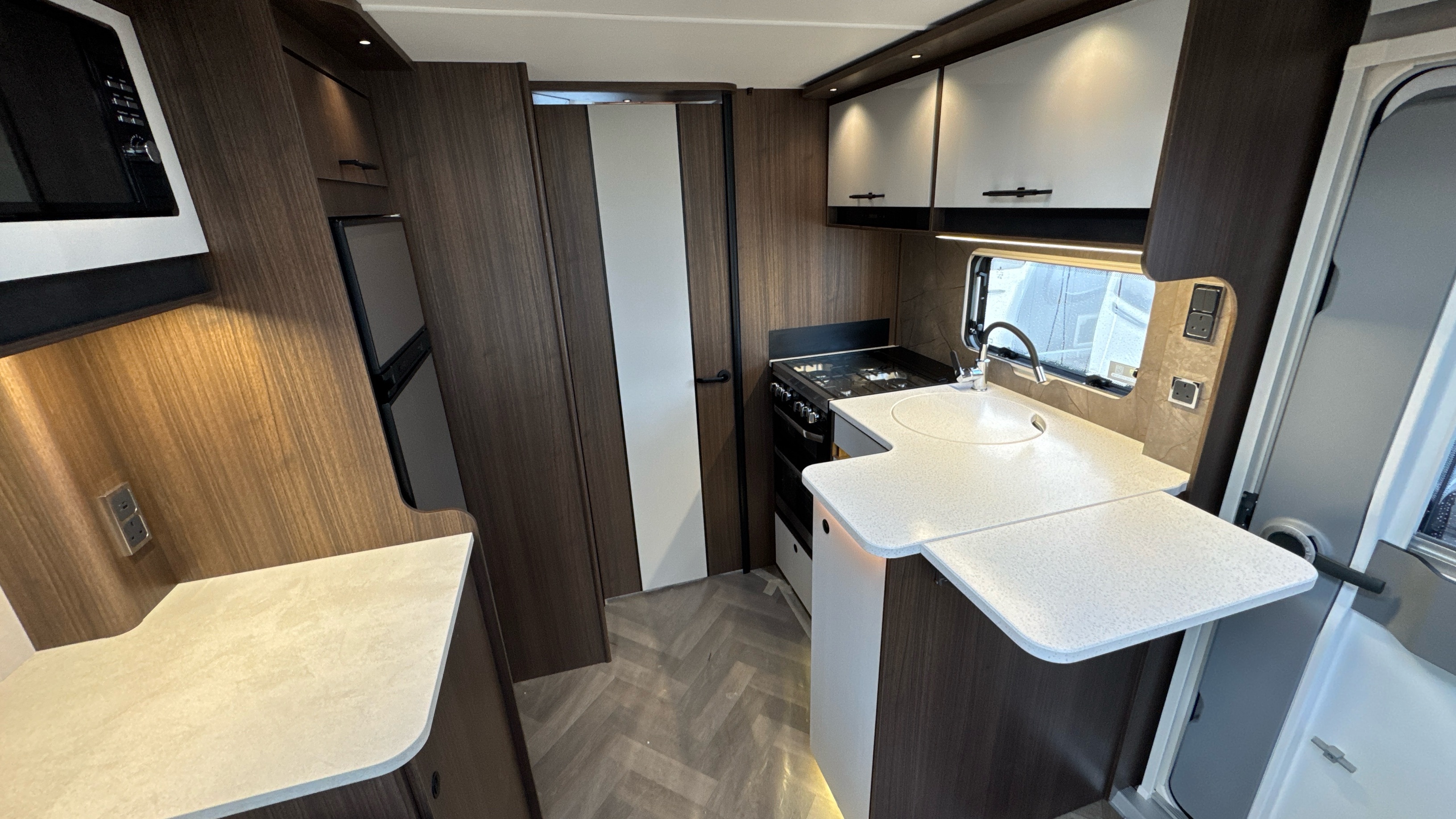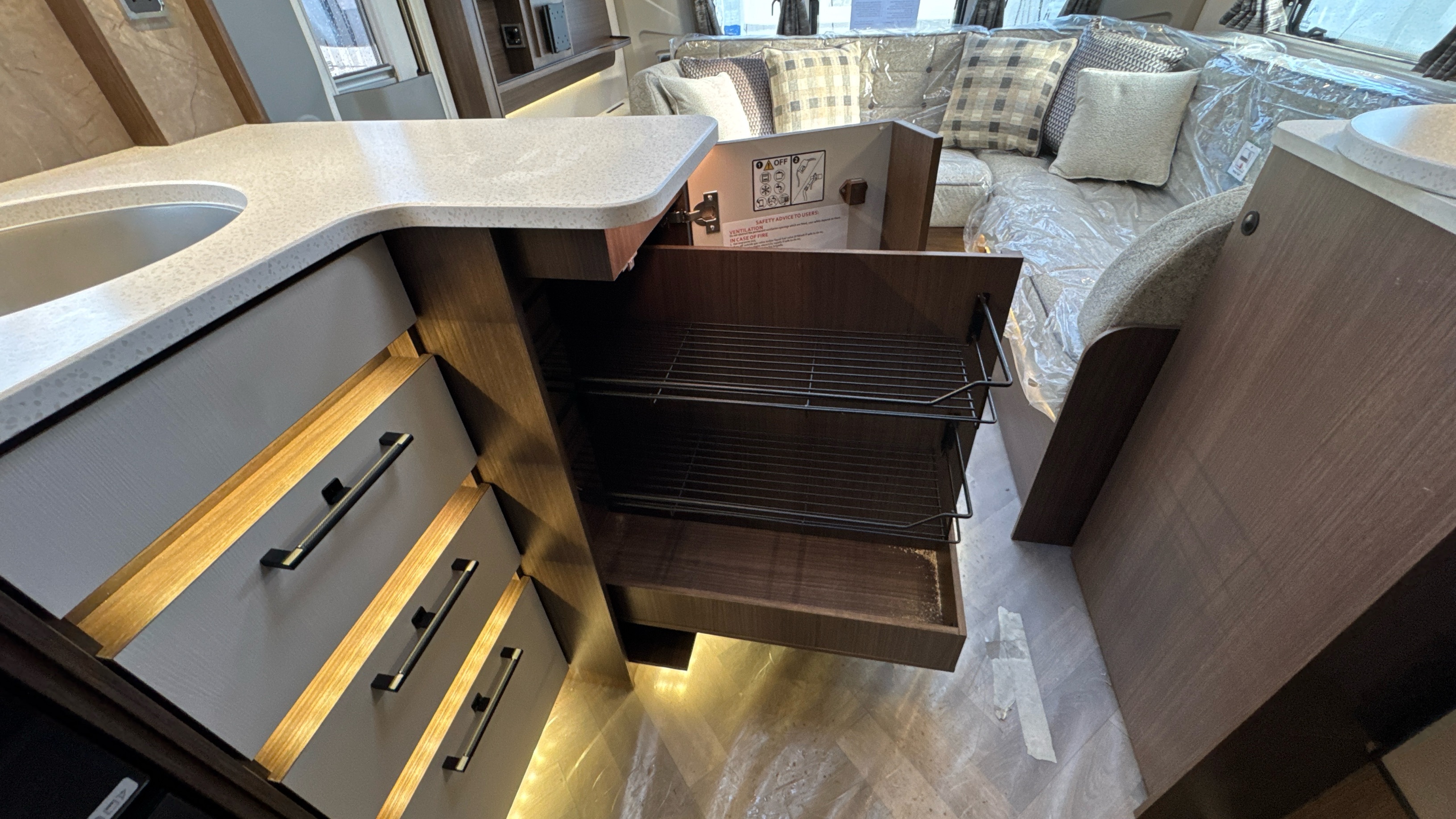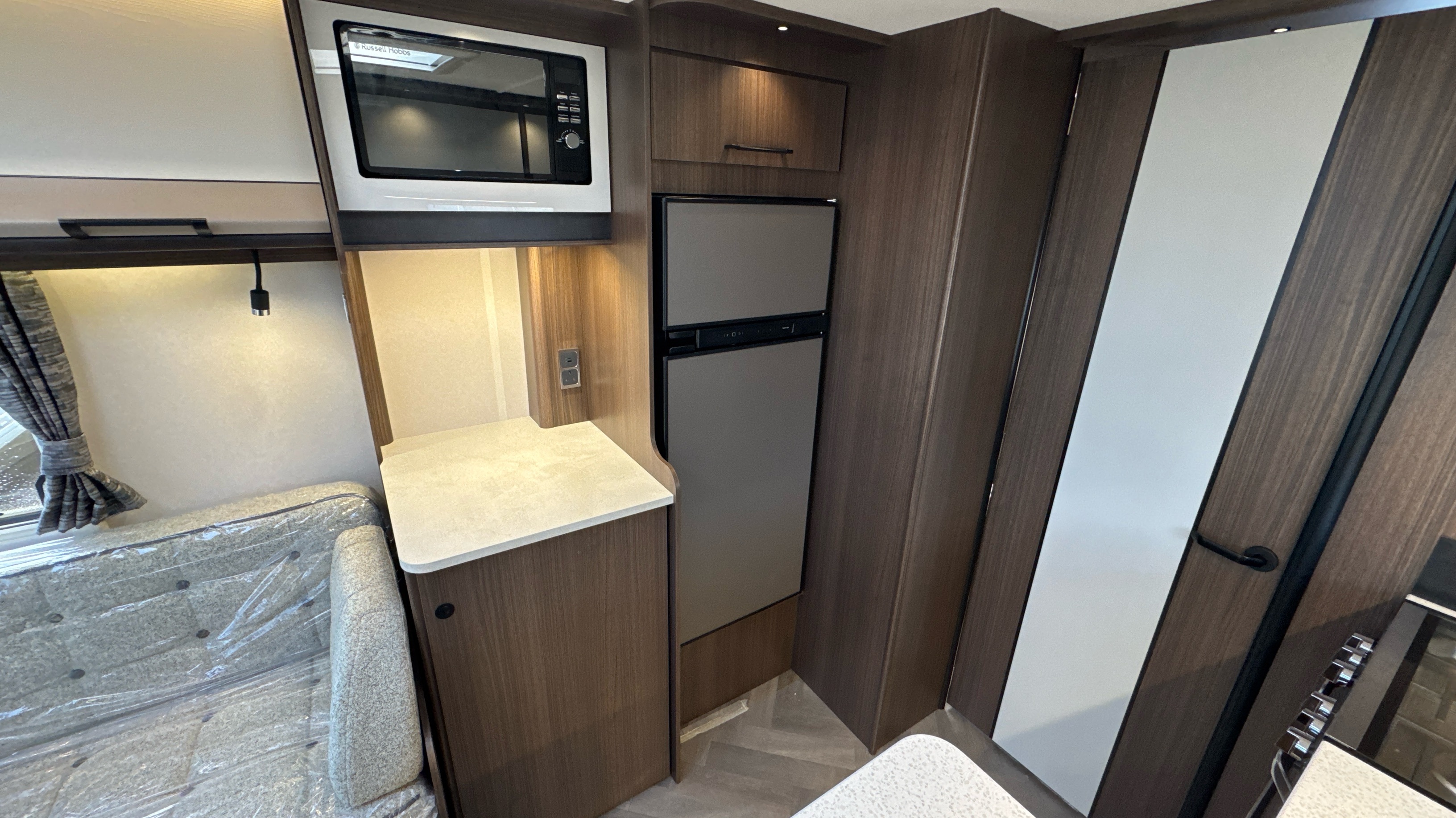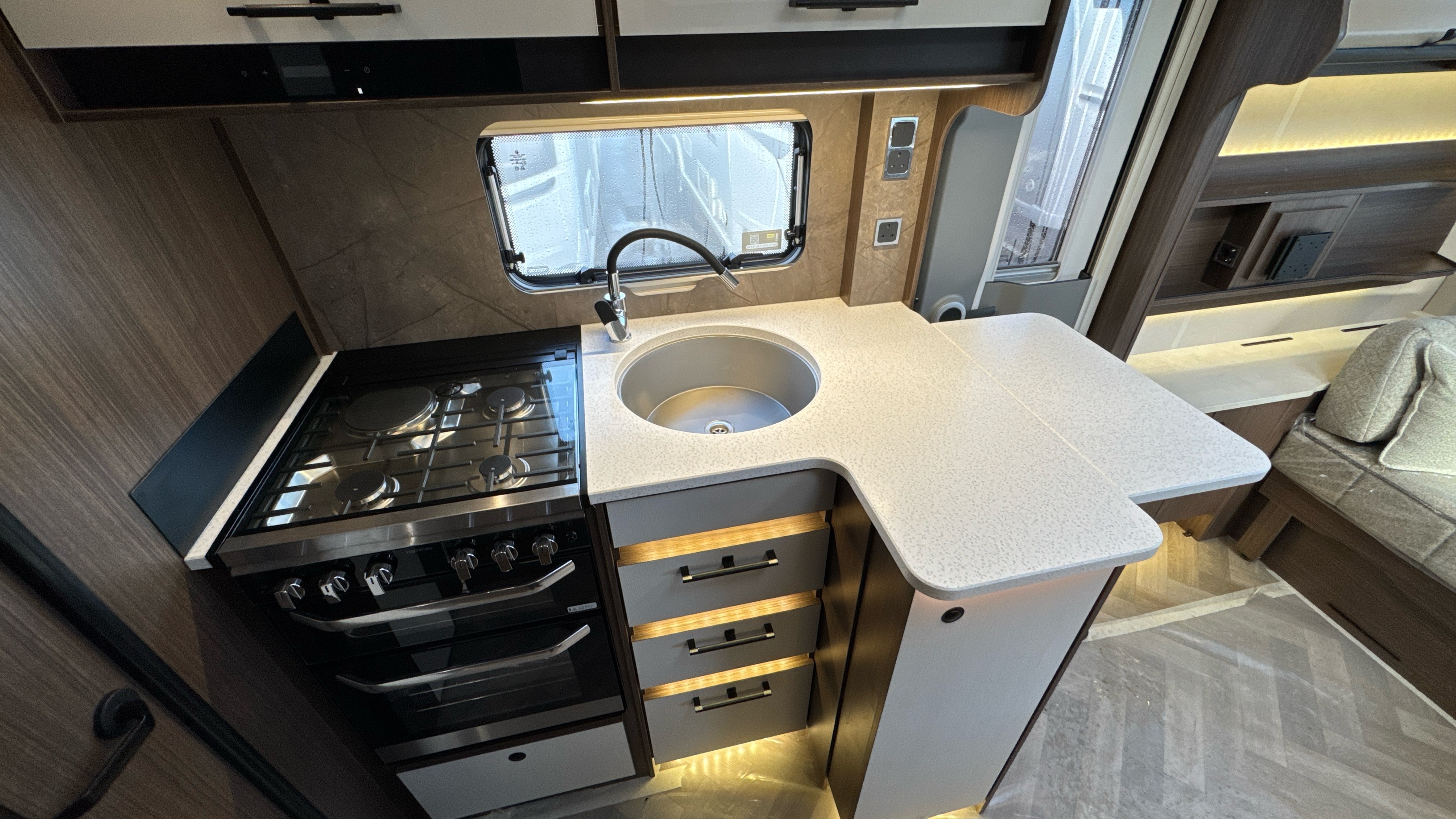 • Thetford oven has an interior light and separate grill with chrome finish and improved efficiency