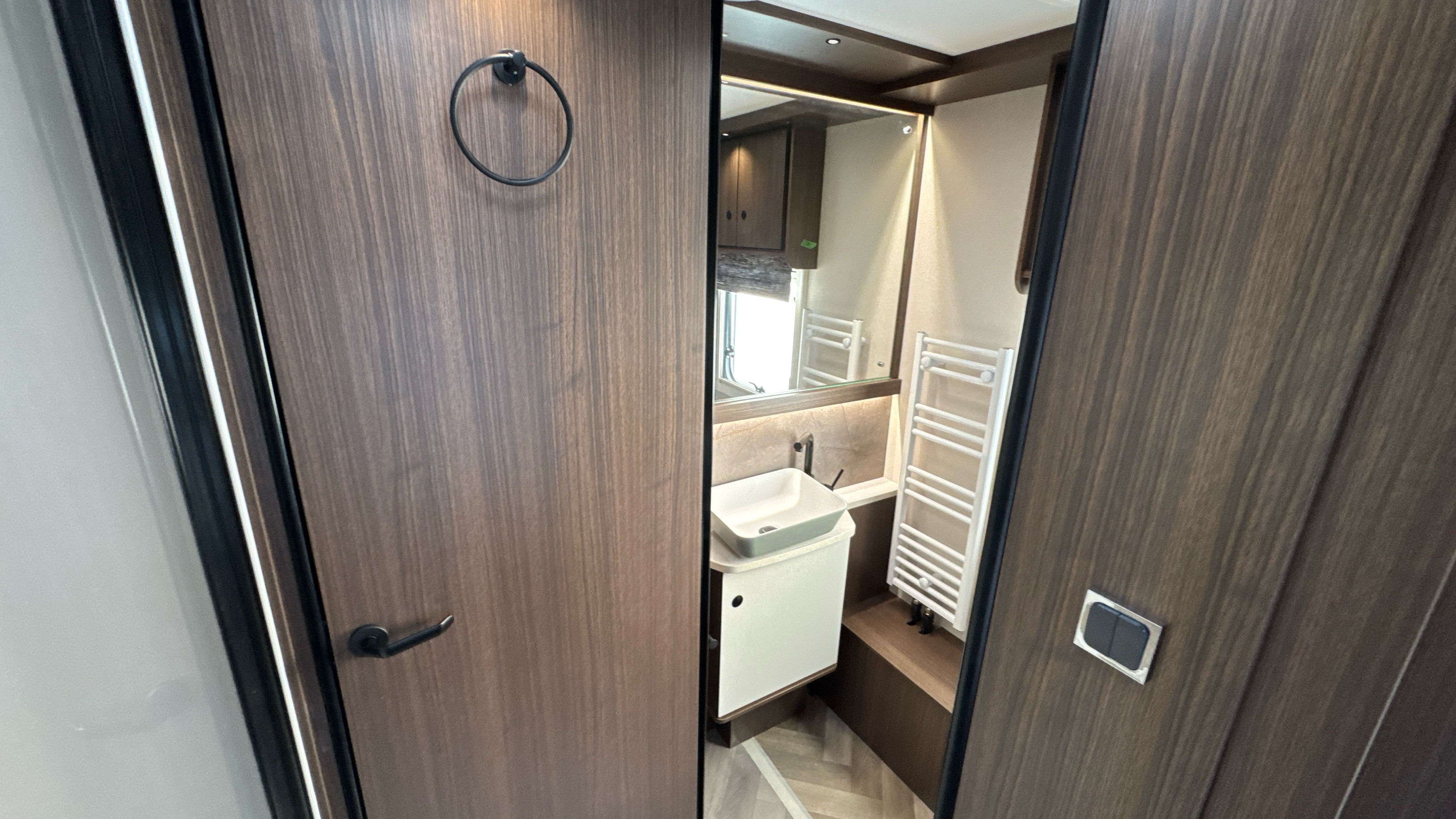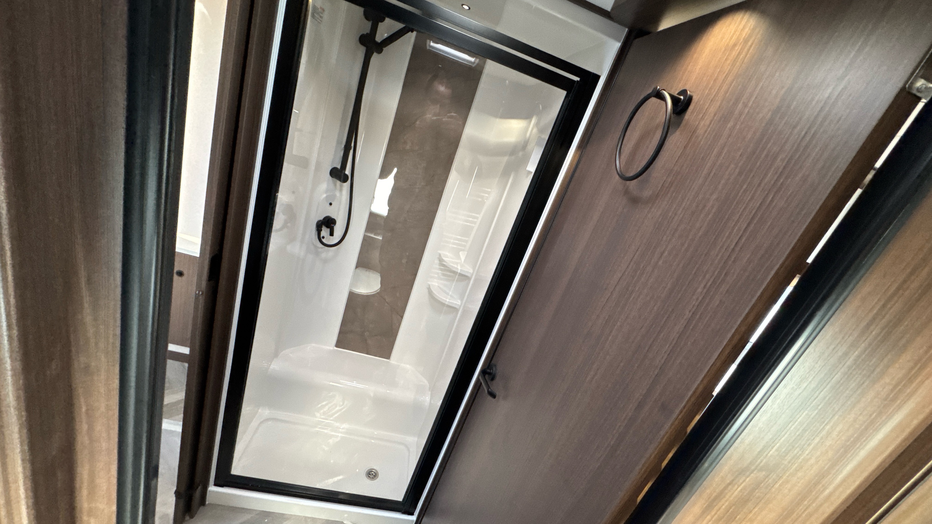 • NEW shaped shower with black saloon style doors (545 Xtra & 845 Xtra)