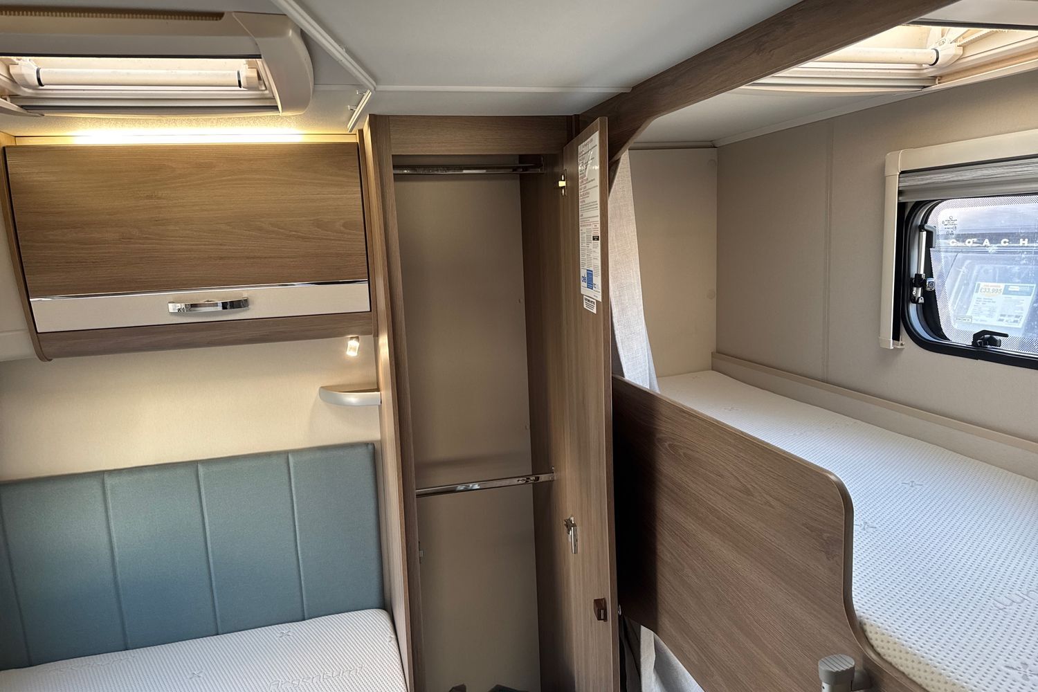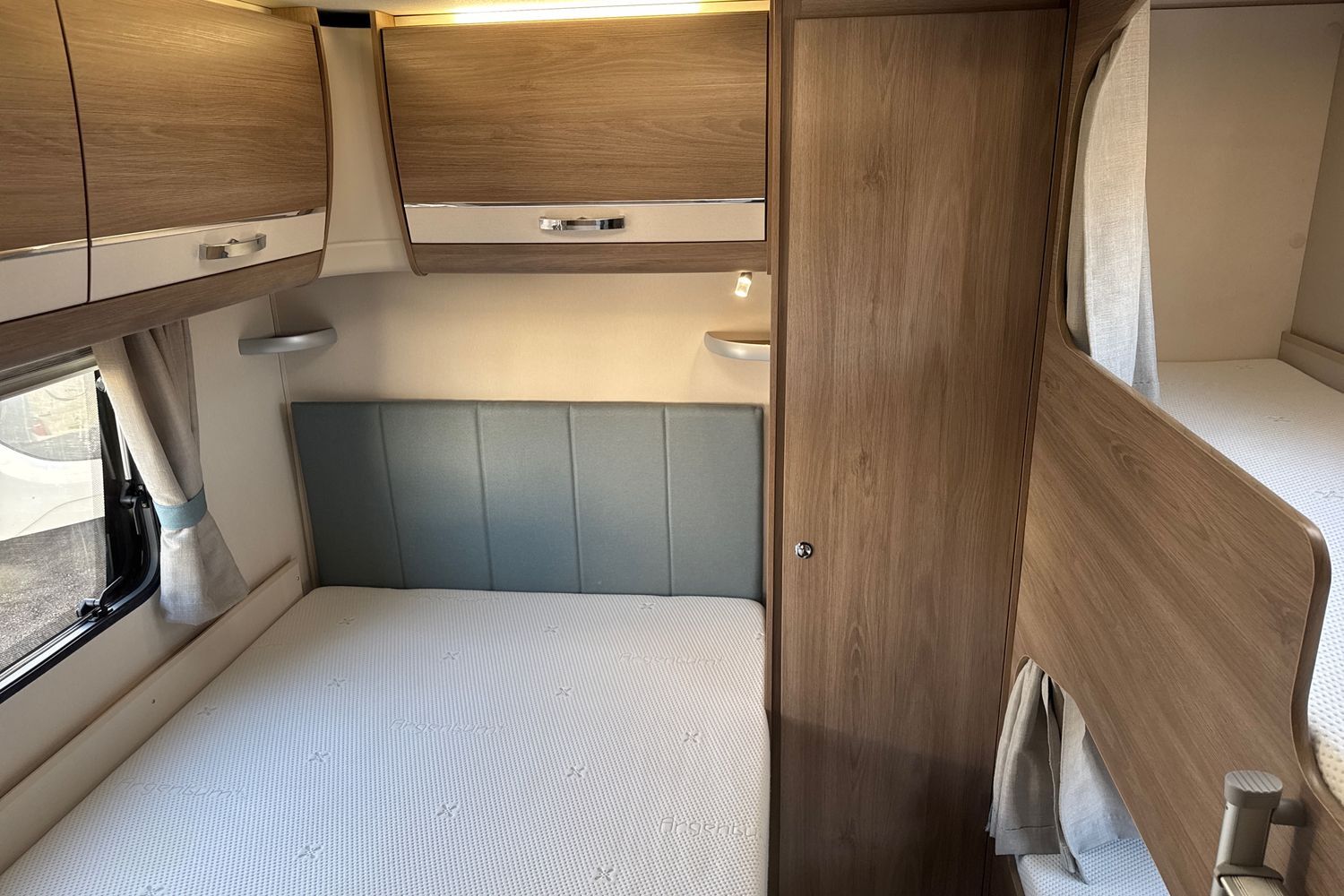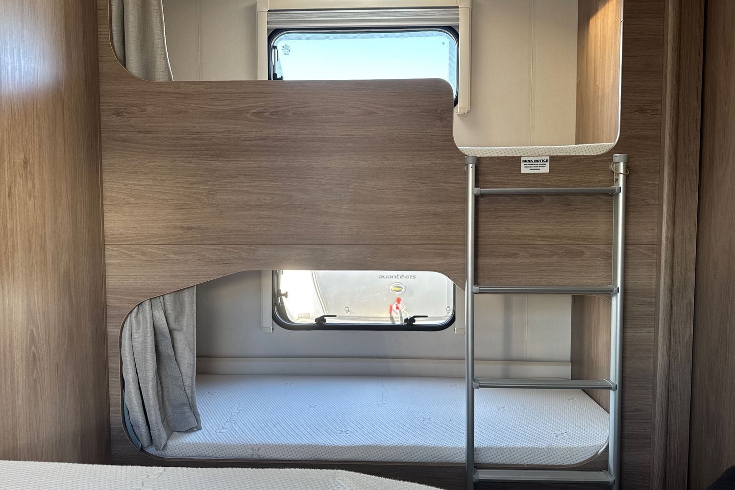 This 8FT wide SoLiD bodyshell construction caravan is an ideal candidate for a family looking for a tourer with extra living space. Dedicated rear corner fixed french bed with domestic style mattress, plethora of overhead storage lockers as well as acres of underbed storage, fixed bunk beds with dedicated fixed ladder located opposite each with privacy curtains - if you are looking for a 6 berth tourer then in terms of ease of use, this really is the perfect layout.