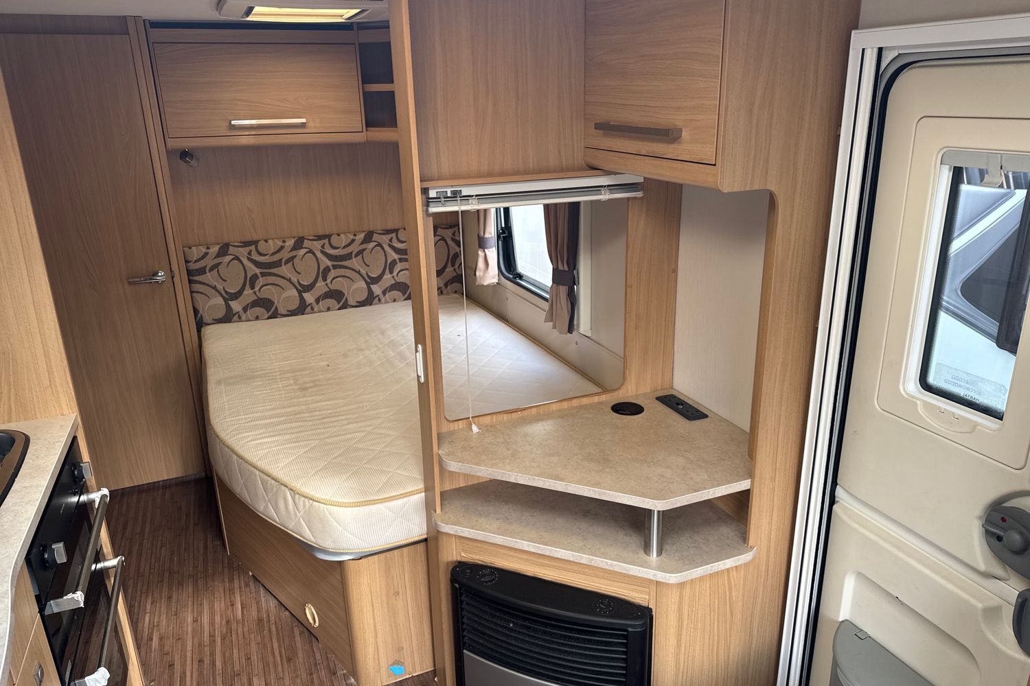 Perfect "first time" caravan - single axle with a fixed side french bed and full width rear washroom with walk in shower cubicle. Due to its age this Avante is in our " 2-good-2-trade" category as it falls outside our credentials for our normal pre-owned stock, however will still have a safety check and be supplied with a 6 month warranty (see below). Originally purchased on the 6th September 2012 with only the one owner from new and regularly serviced.