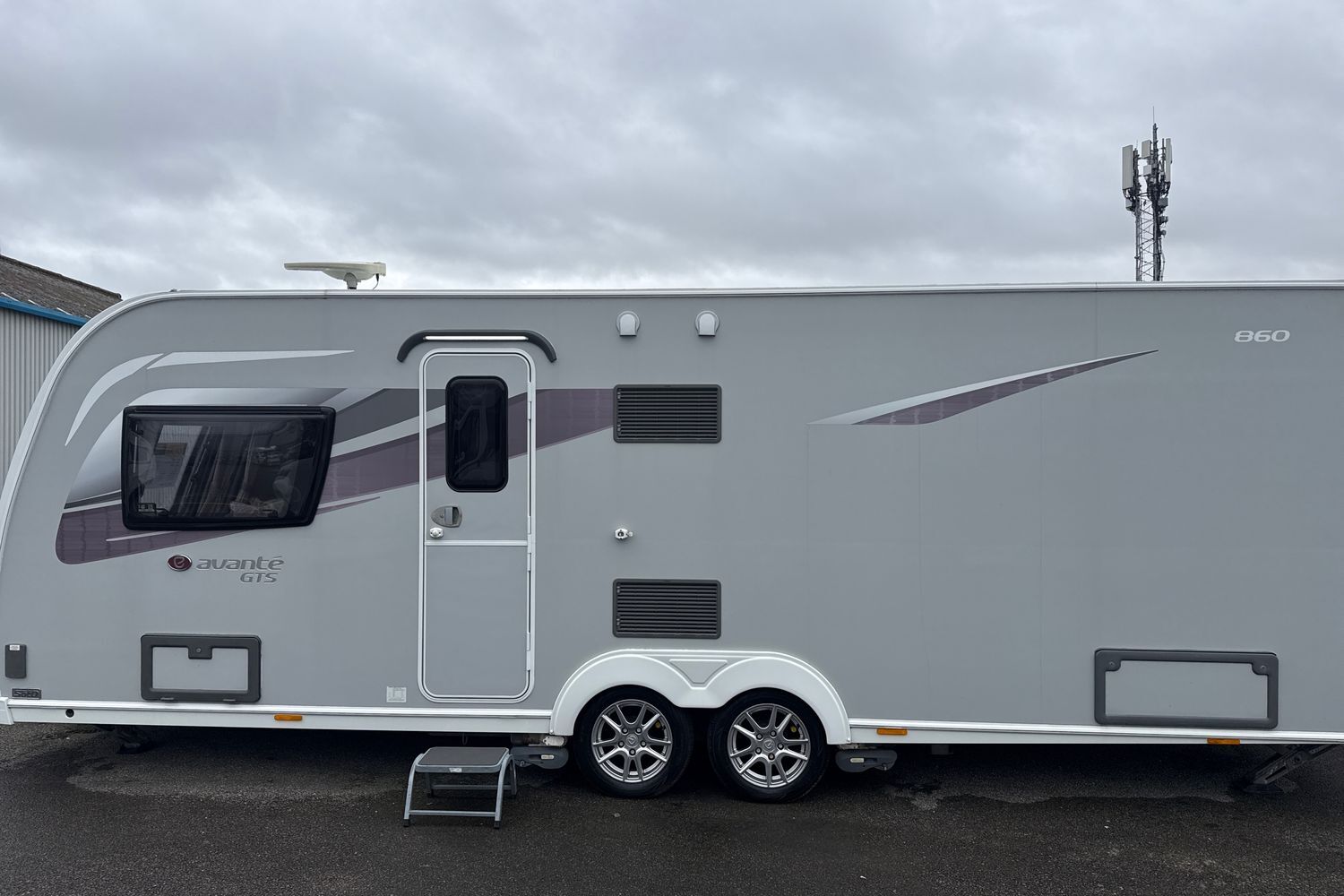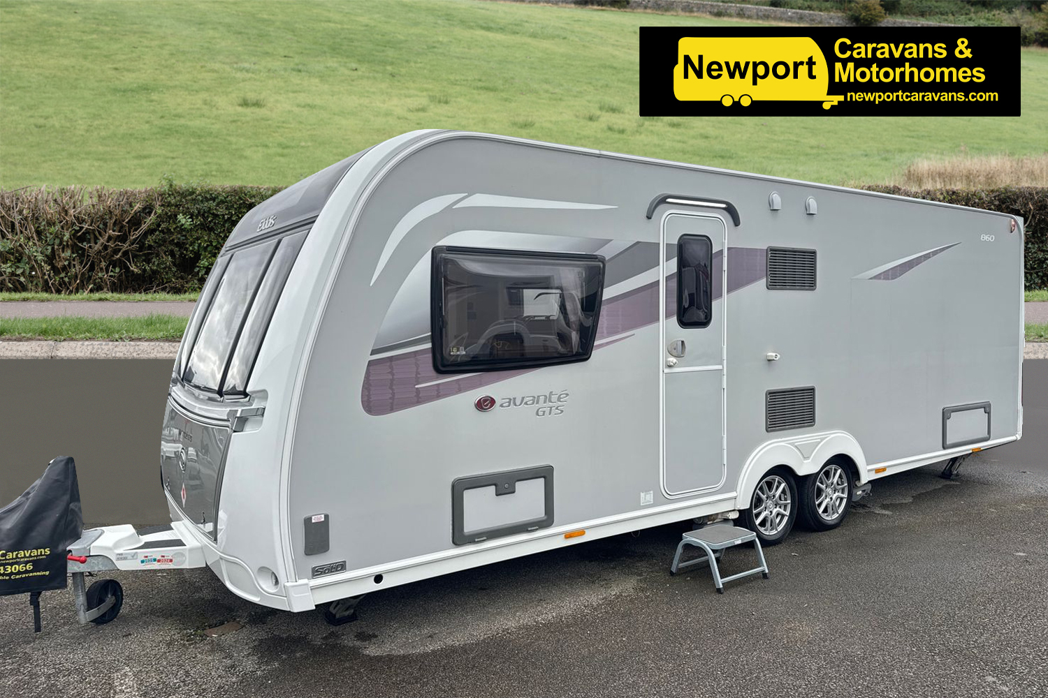 Newport Caravans & Motorhomes are pleased to offer this genuine One Owner from new Elddis Avante 860 "GTS" twin axle beauty that has arrived with ourselves as a part exchange. Fitted with expensive optional additions such as a Powrtouch AWD 4x4 motor mover, roof mounted 100w Solar Panel kit.