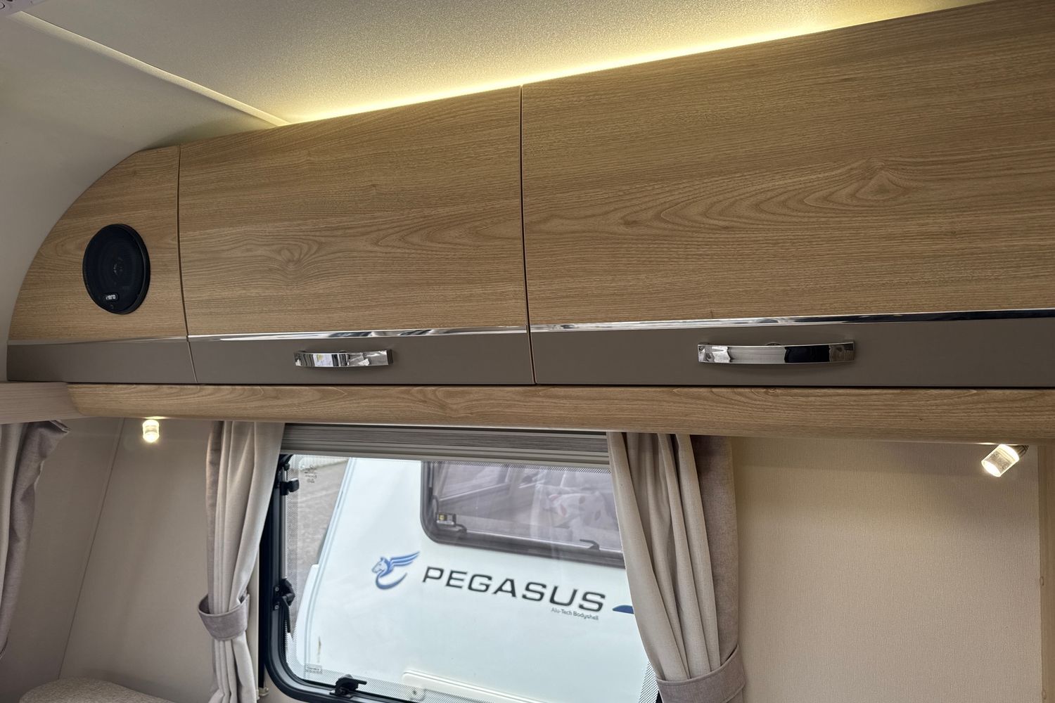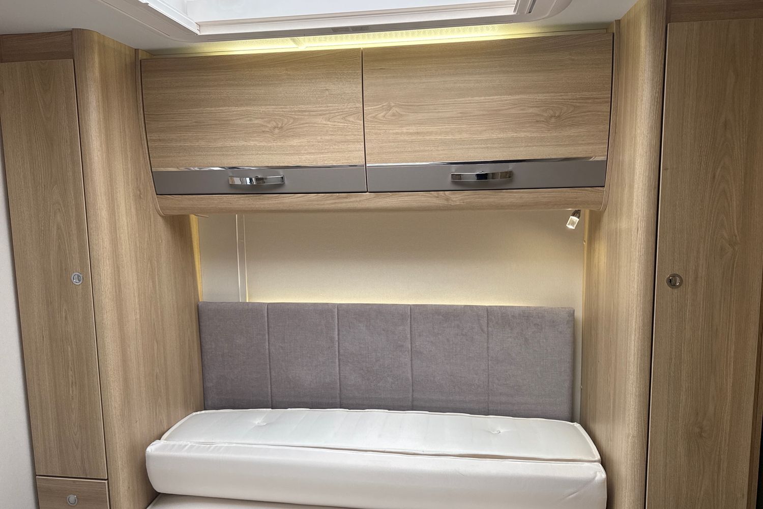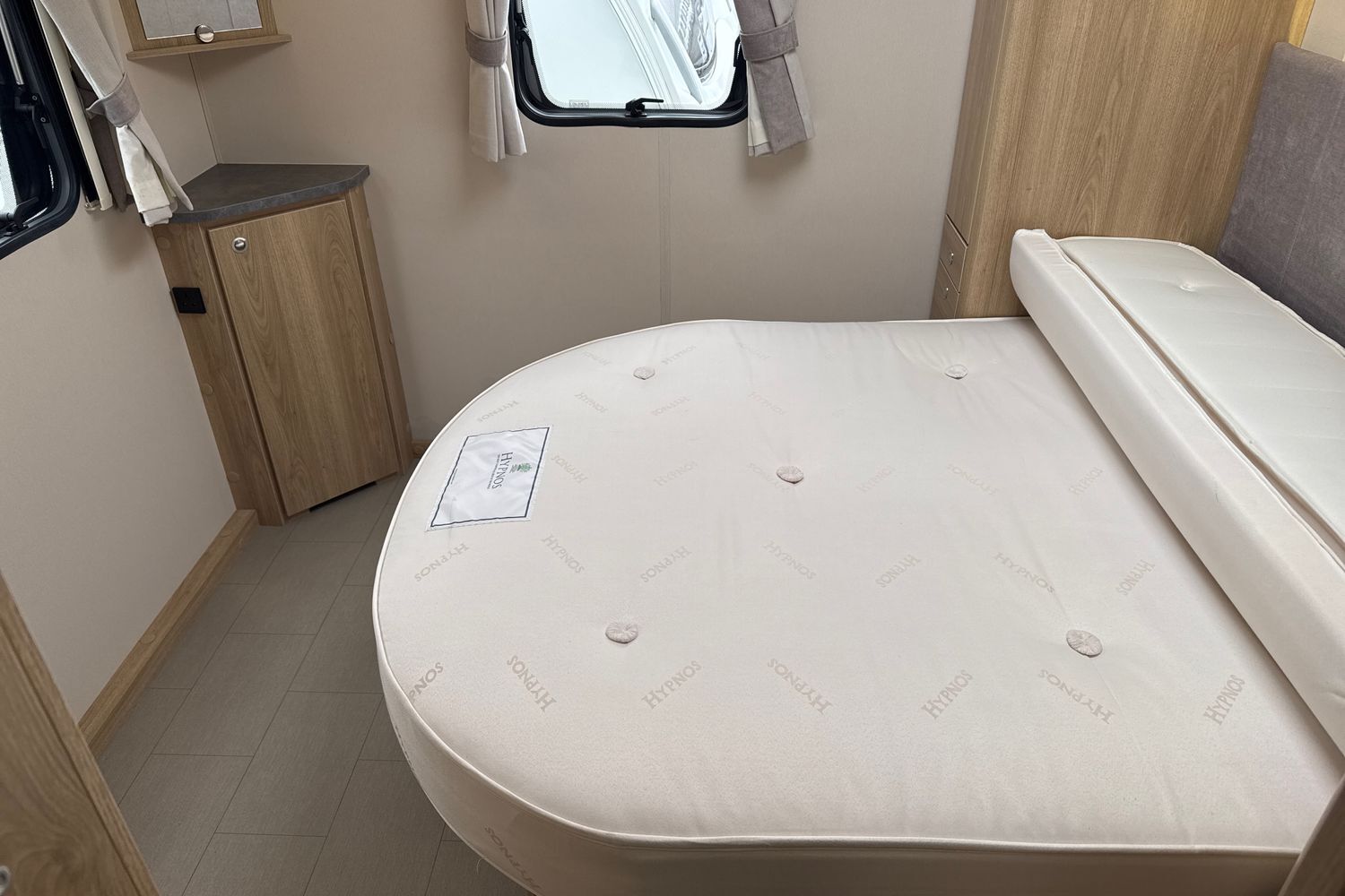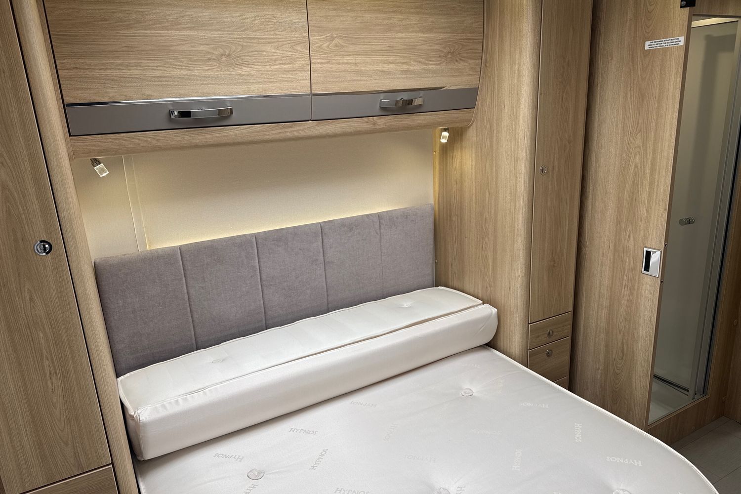 Layout consists of a dedicated rear walk around island bed which comes off the nearside wall, his 'n' hers wardrobes either side plus an abundance of overhead 'aircraft' style storage lockers, acres of underbed storage plus access to under the bed also available from an external lockers service door. Mattress is the expensive 'HYPNOS' upgrade which is part of the GTS pack and will offer a generous nights rest.