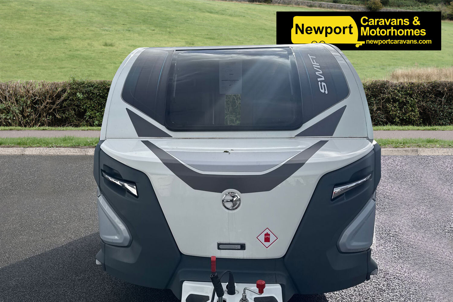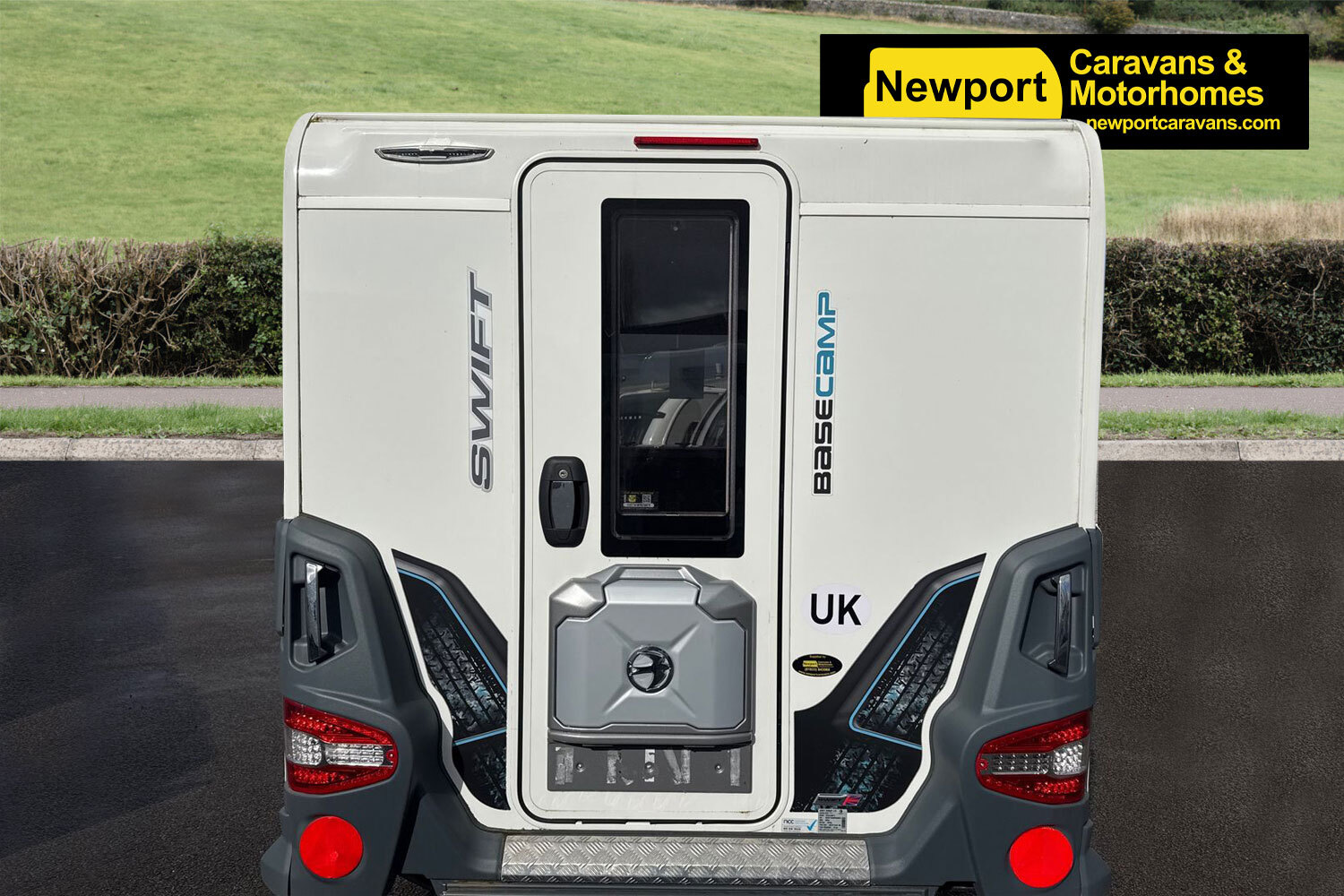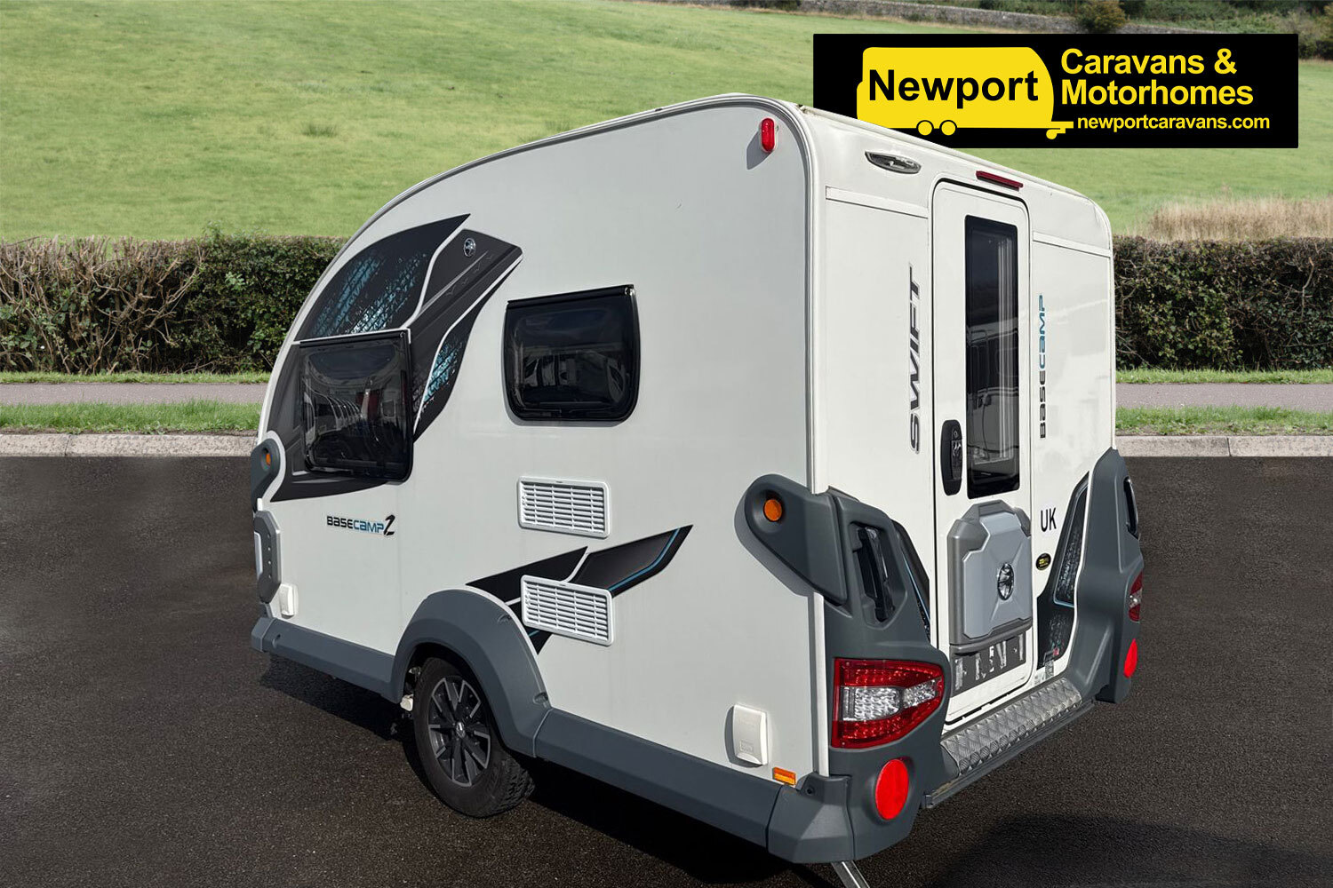 Newport Caravans & Motorhomes are delighted to be able to offer this funky yet extremely versatile Swift Basecamp 2 that has arrived with ourselves as a part exchange. First registered on the 13th June 2023 with 2 owners from new and complimented with a FULL annual service history record. Supplied with the correct VANGO 'Basecamp 2' awning for the rear, motor mover and flat screen TV.