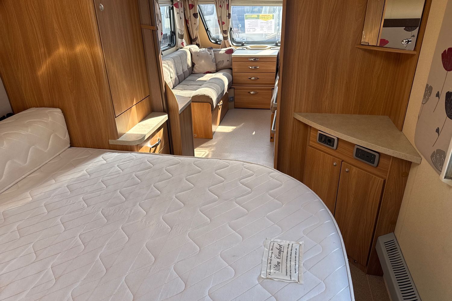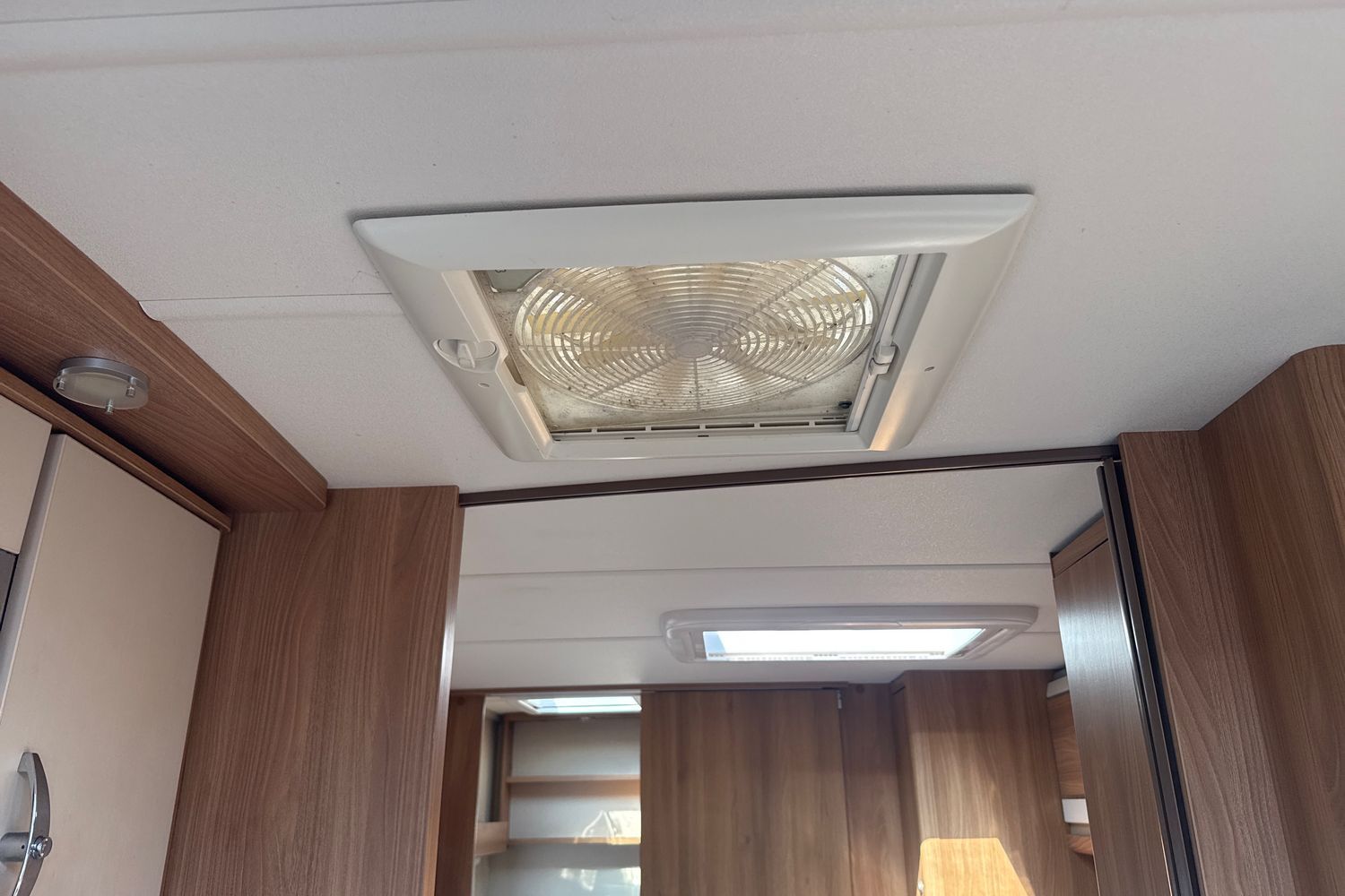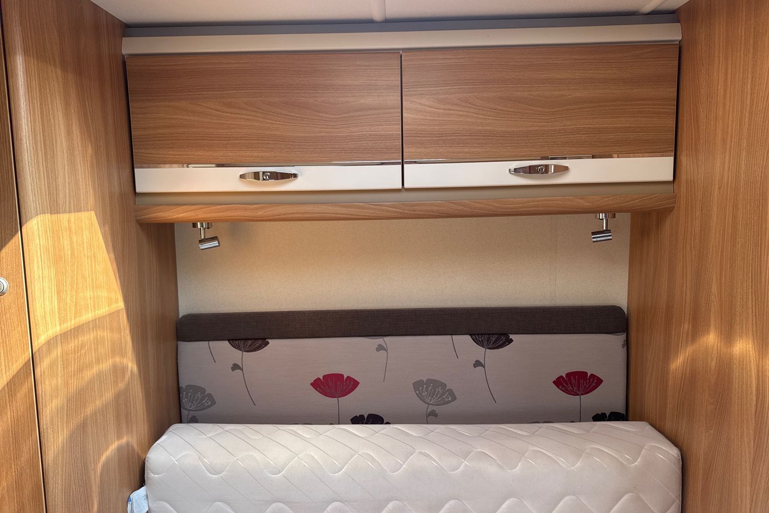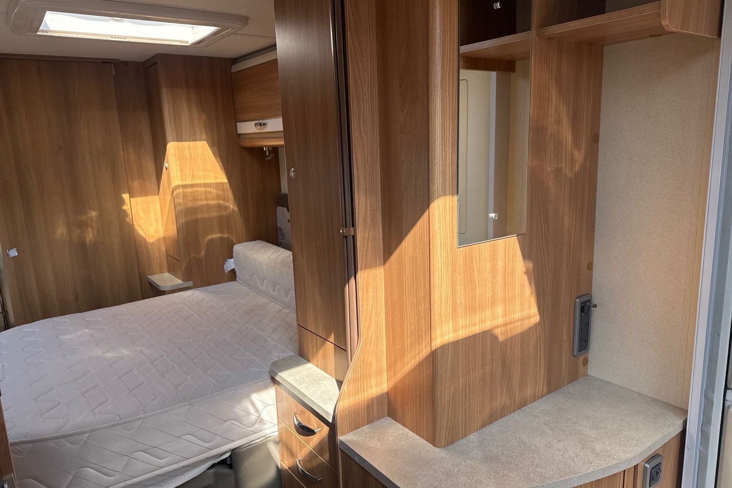 Popular single axle model which features a dedicated full width rear washroom with seperate walk in fully lined shower compartment, sink and vanity unit with back-lit vanity mirror and thetford swivel cassette toilet with electric flush operation.