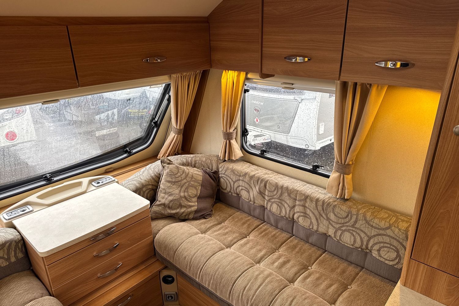 Centrally located dinette area (a haven for the kids during the wet weather or evening times) which easily converts into a single bed with additional pull up bunk bed with privacy curtain and bunk ladder.