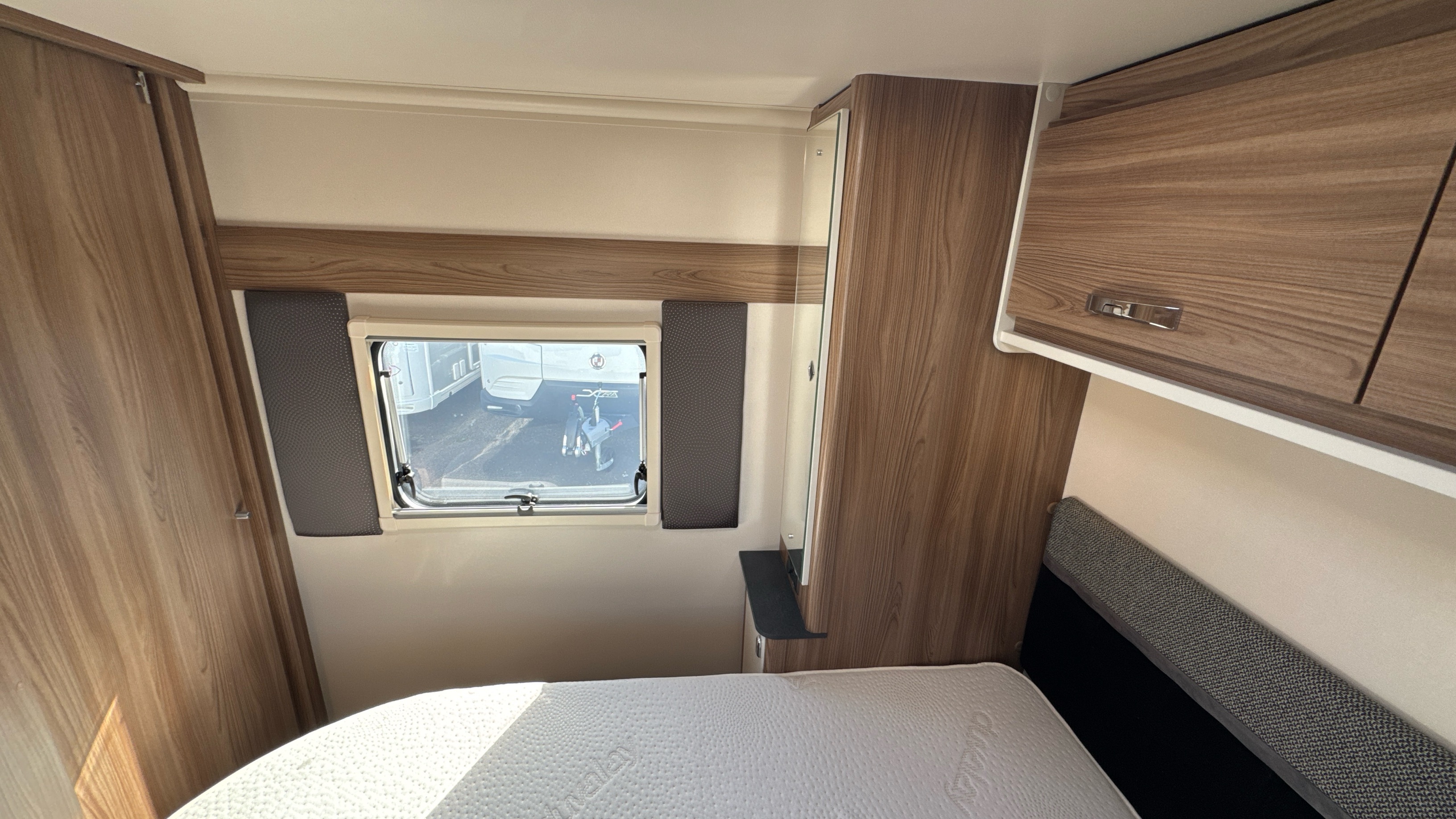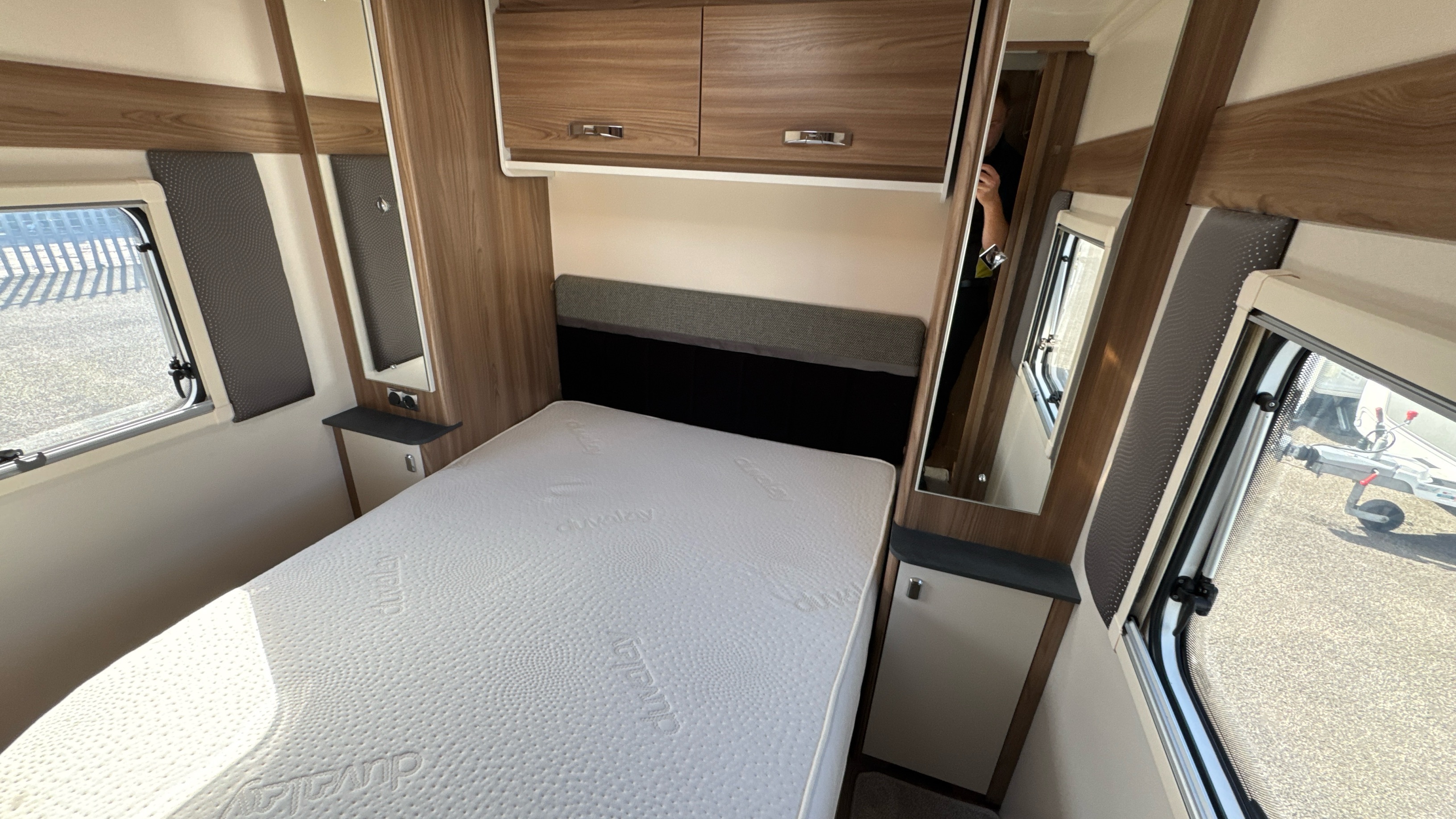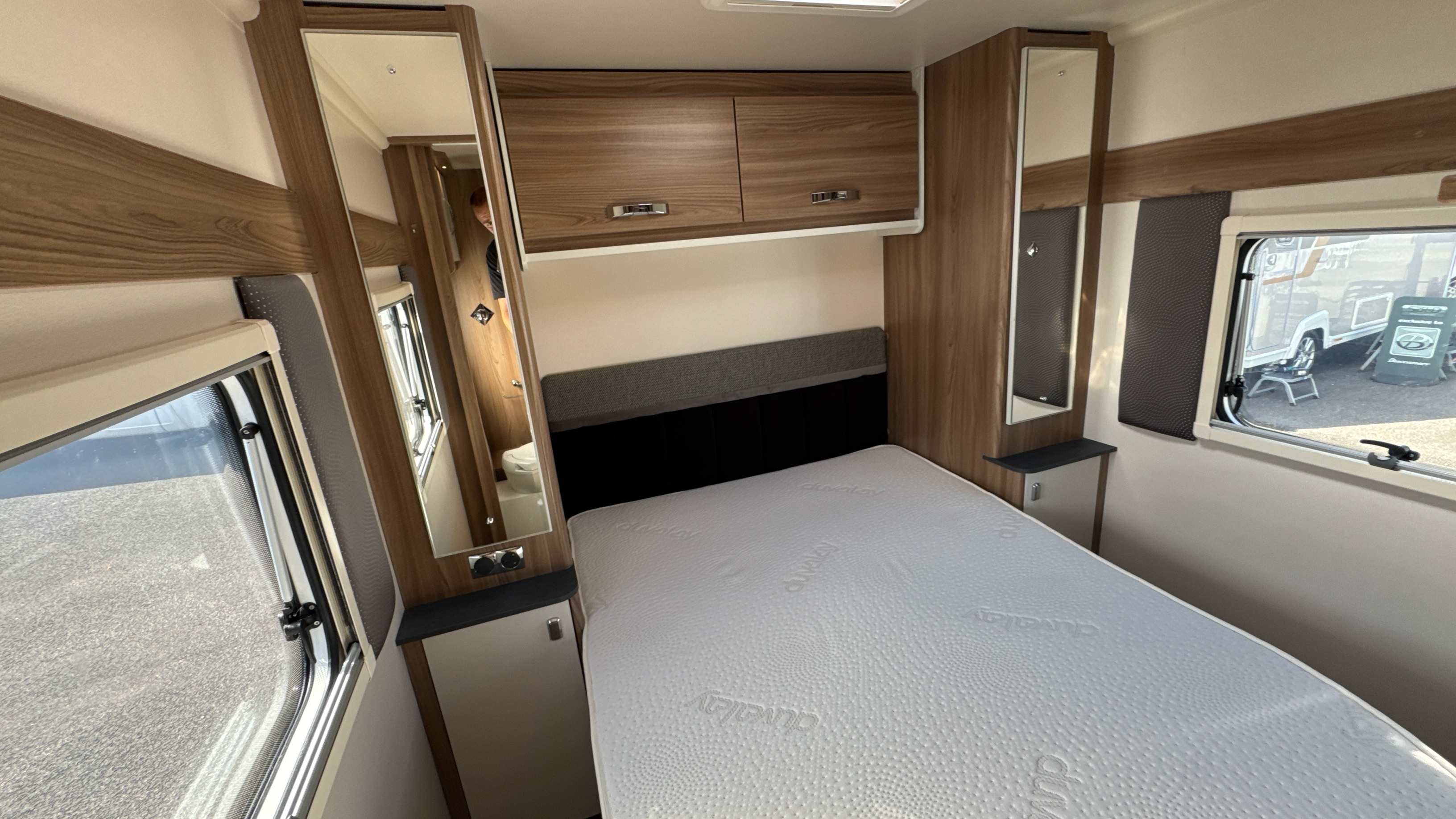 A popular and versatile layout that features a dedicated rear walk around island bed with domestic style duvalay mattress, his 'n' hers wardrobes either side of the fixed bed plus an abundance of handy storage and cupboard space.