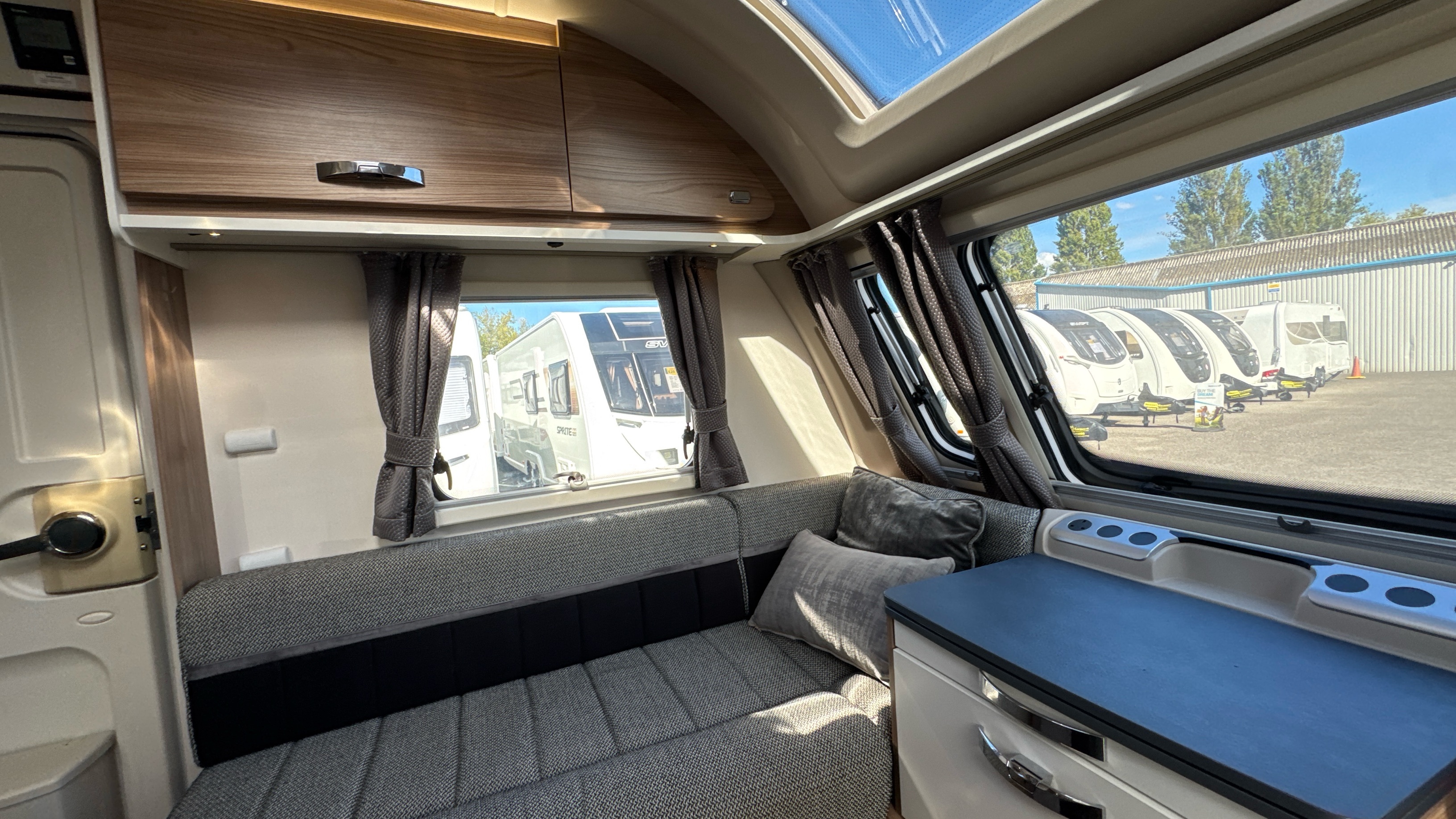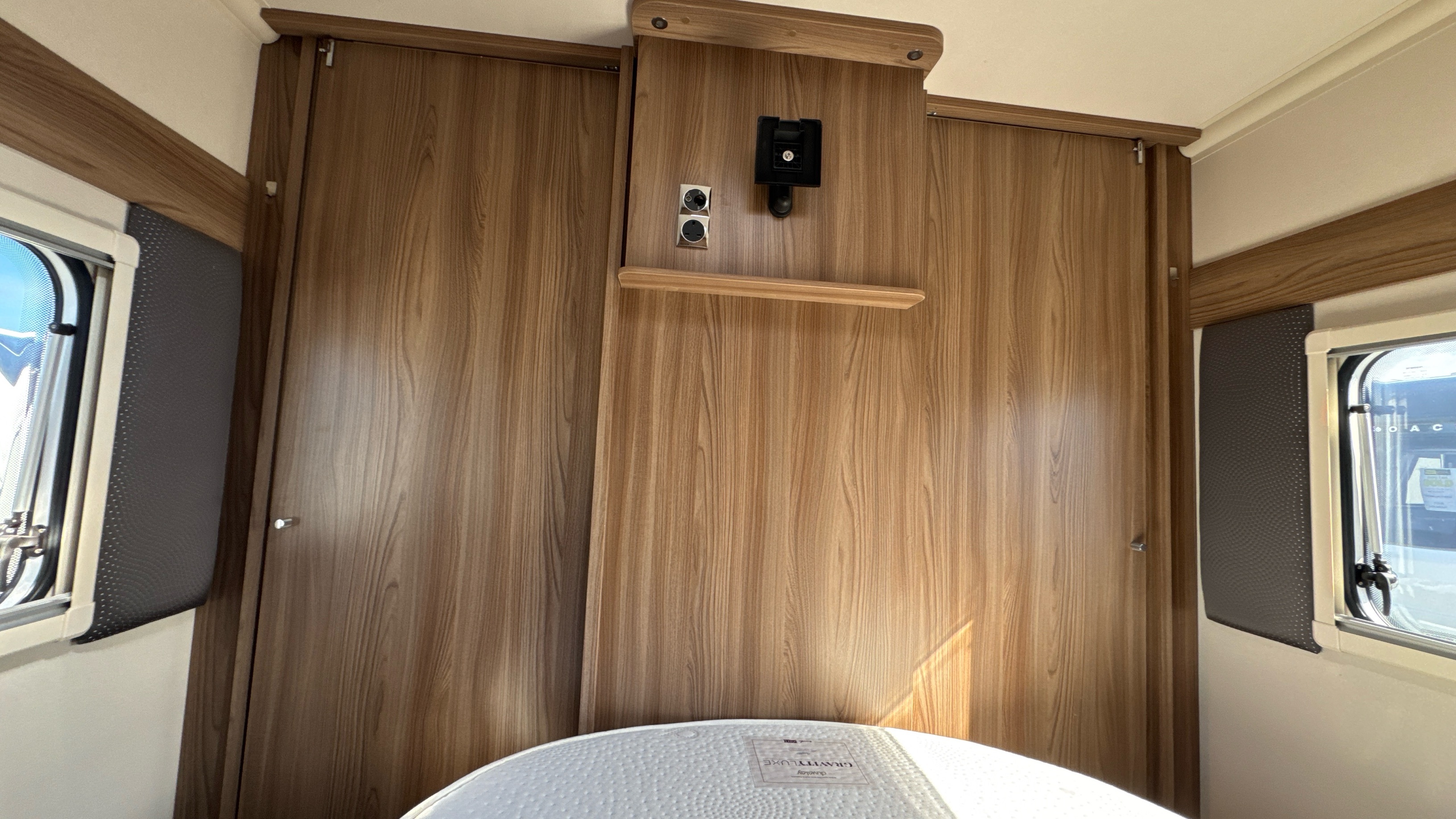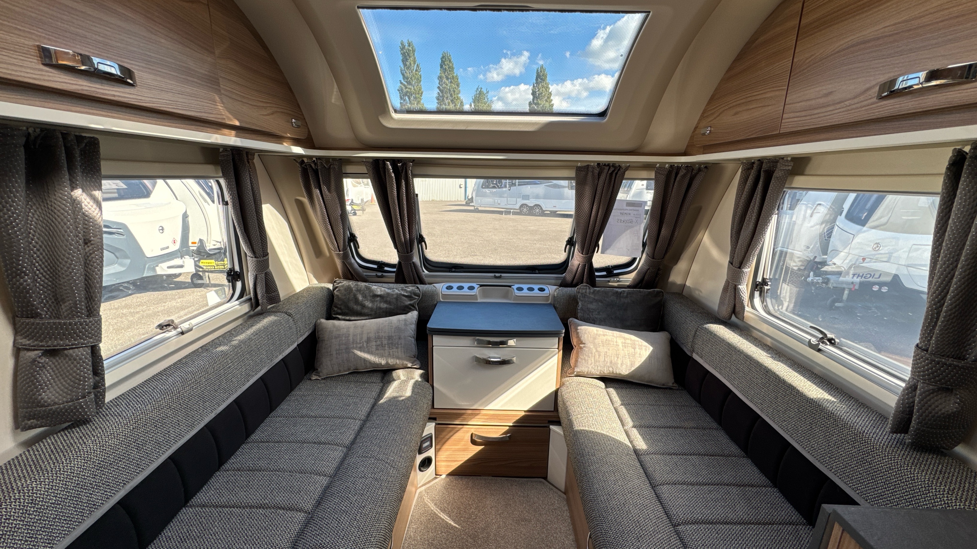 A popular and versatile layout that features a dedicated rear walk around island bed with domestic style duvalay mattress, his 'n' hers wardrobes either side of the fixed bed plus an abundance of handy storage and cupboard space.