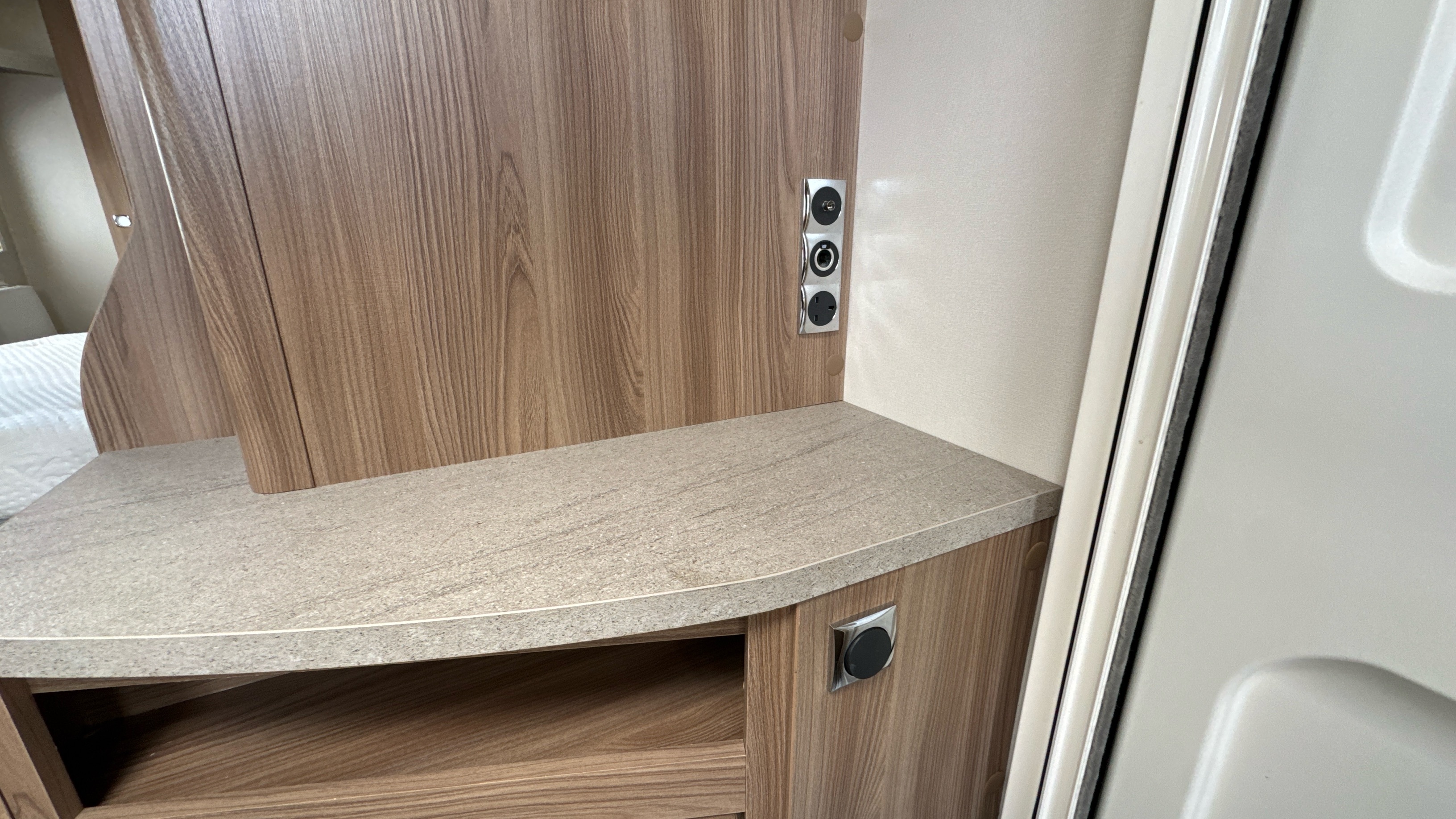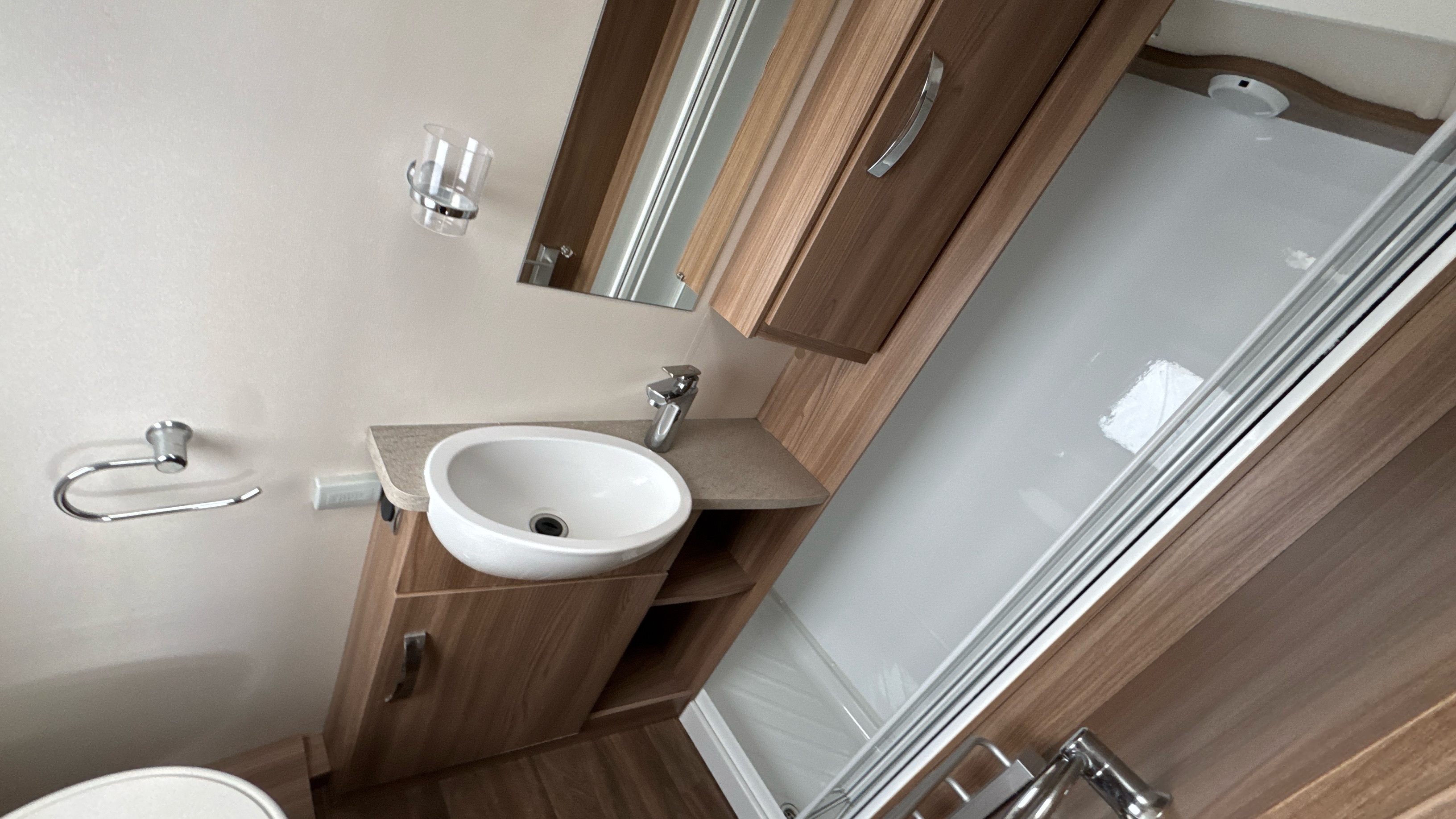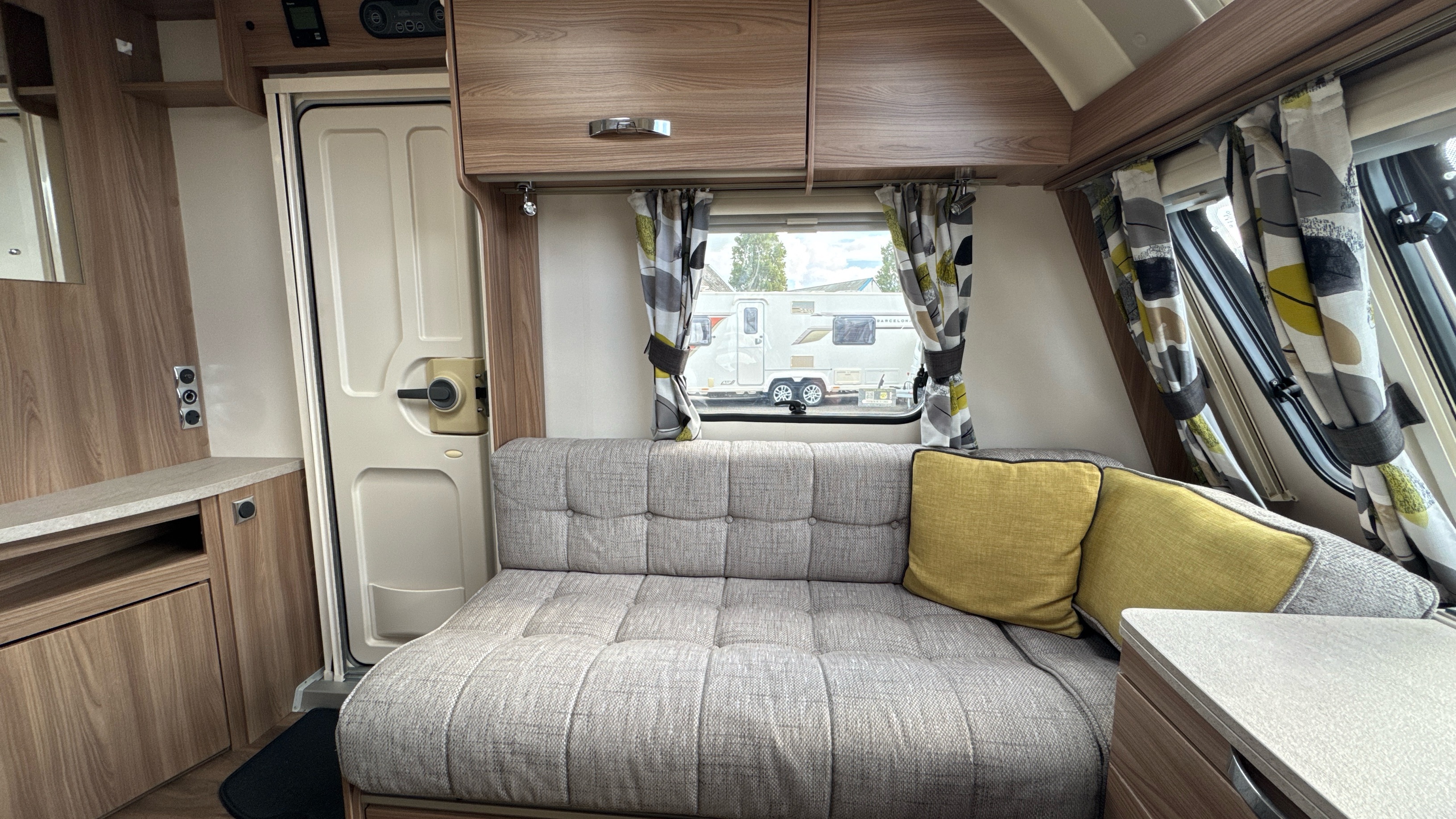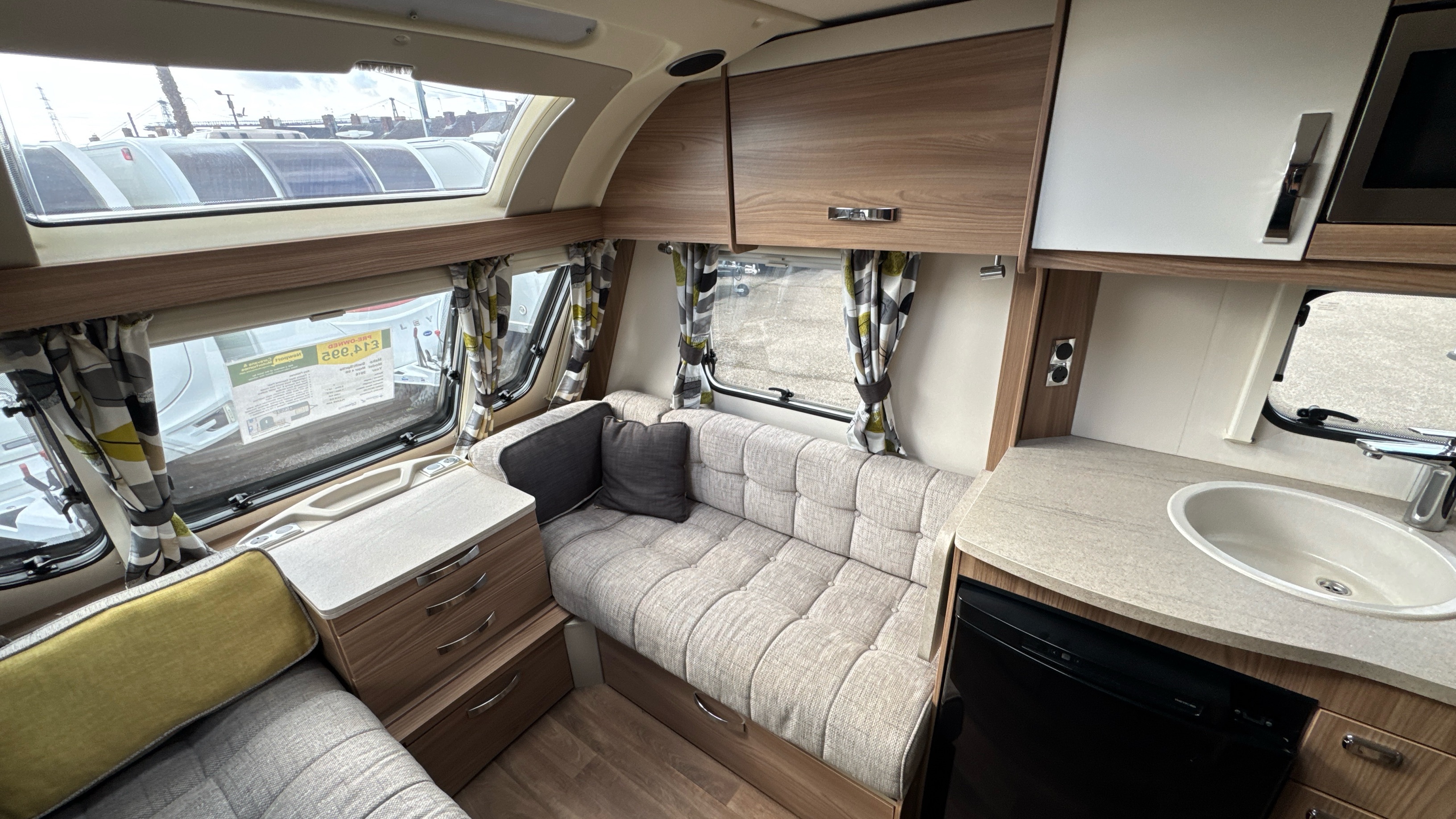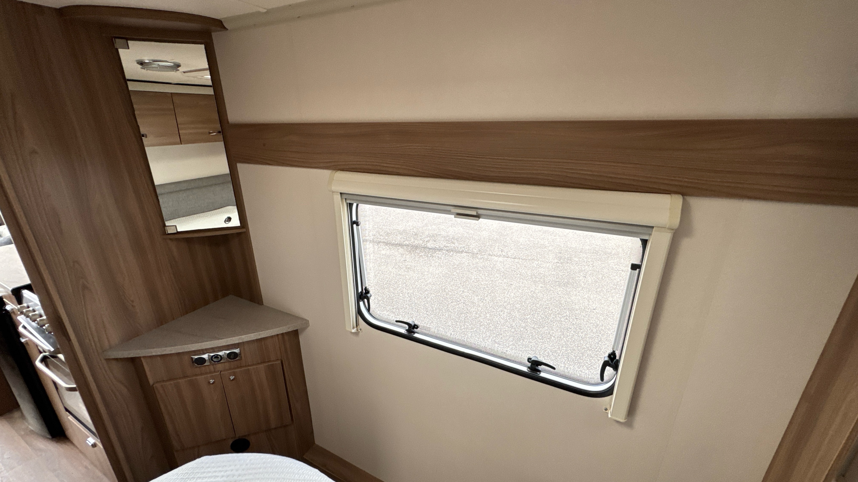 Fantastic layout features a dedicated rear walk in washroom with separate walk in fully lined shower compartment, thetford cassette swivel toilet and recessed sink/vanity unit. Centrally located island walk around bed with an abundance of over head storage locker space, his 'n' hers wardrobes and a domestic style high quality Duvalay mattress to ensure a peaceful and comfortable nights rest.