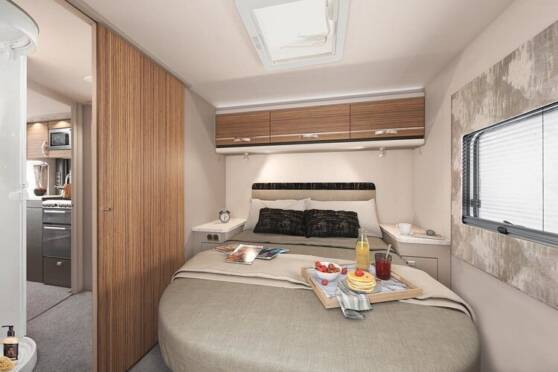 New front corner opening lockers provide extra storage and adding to the quality feel are pleated cassette blinds to the windows.