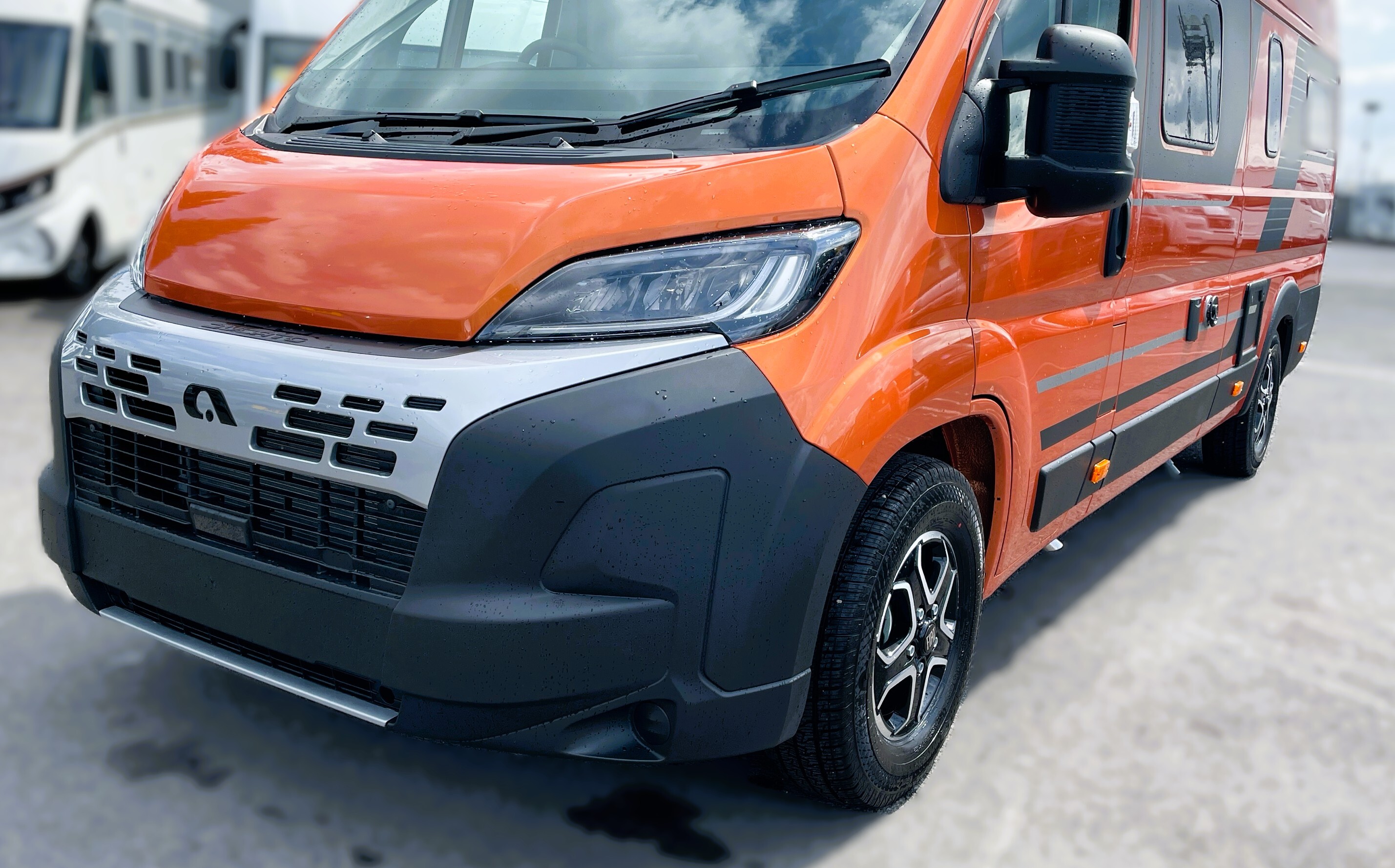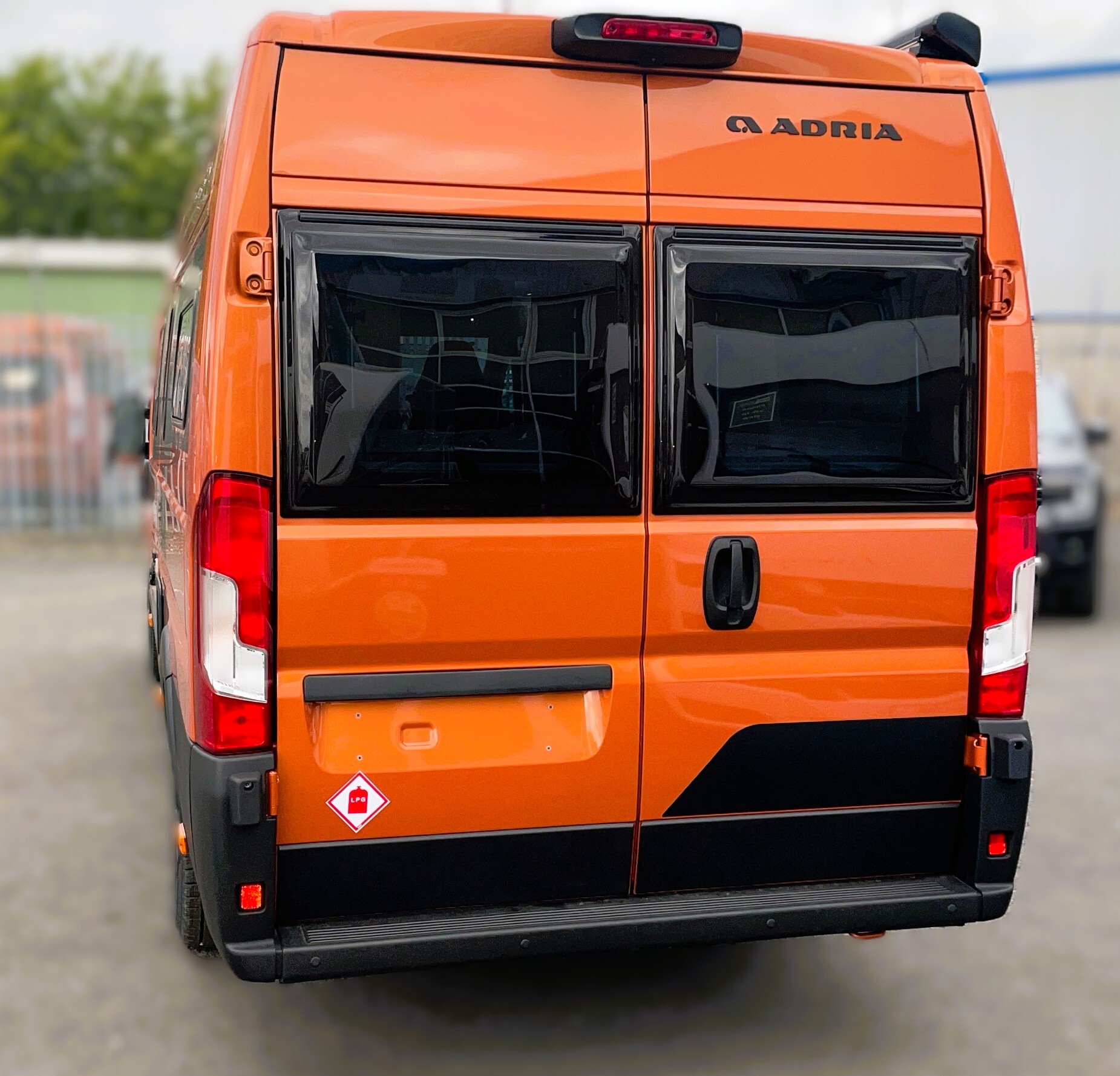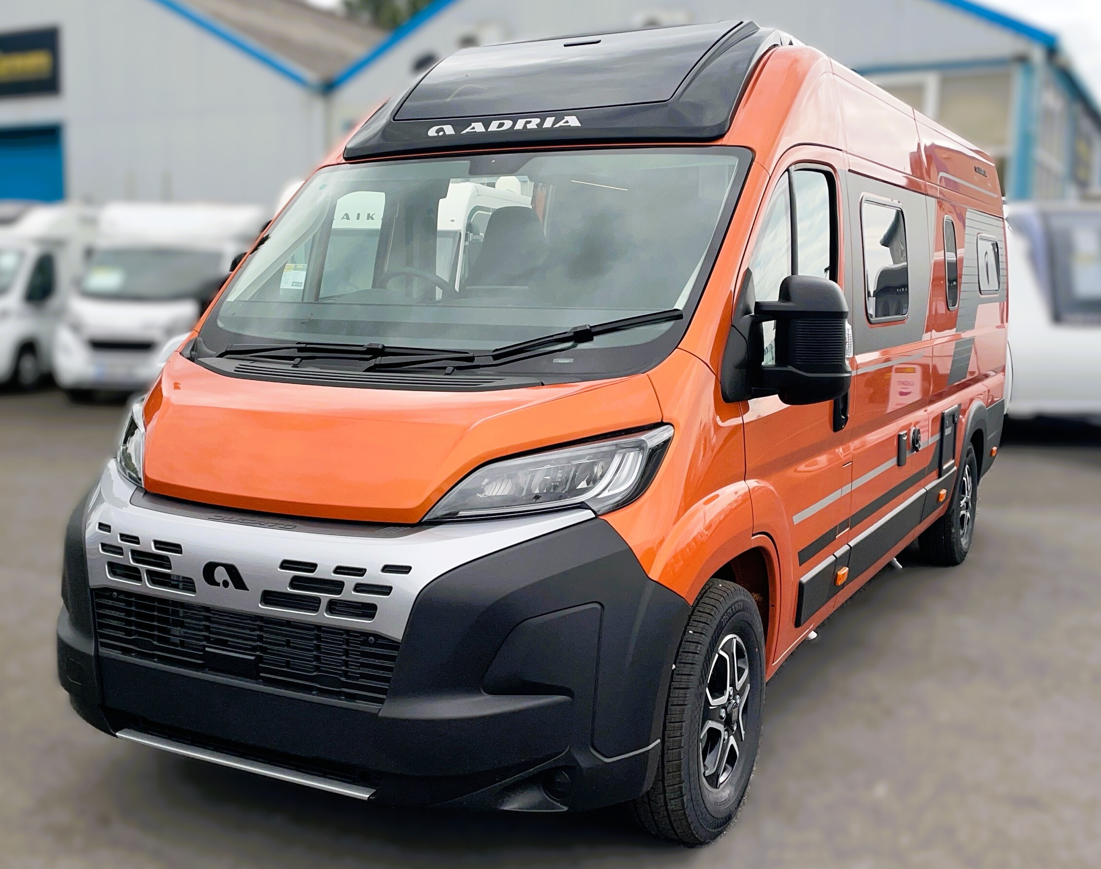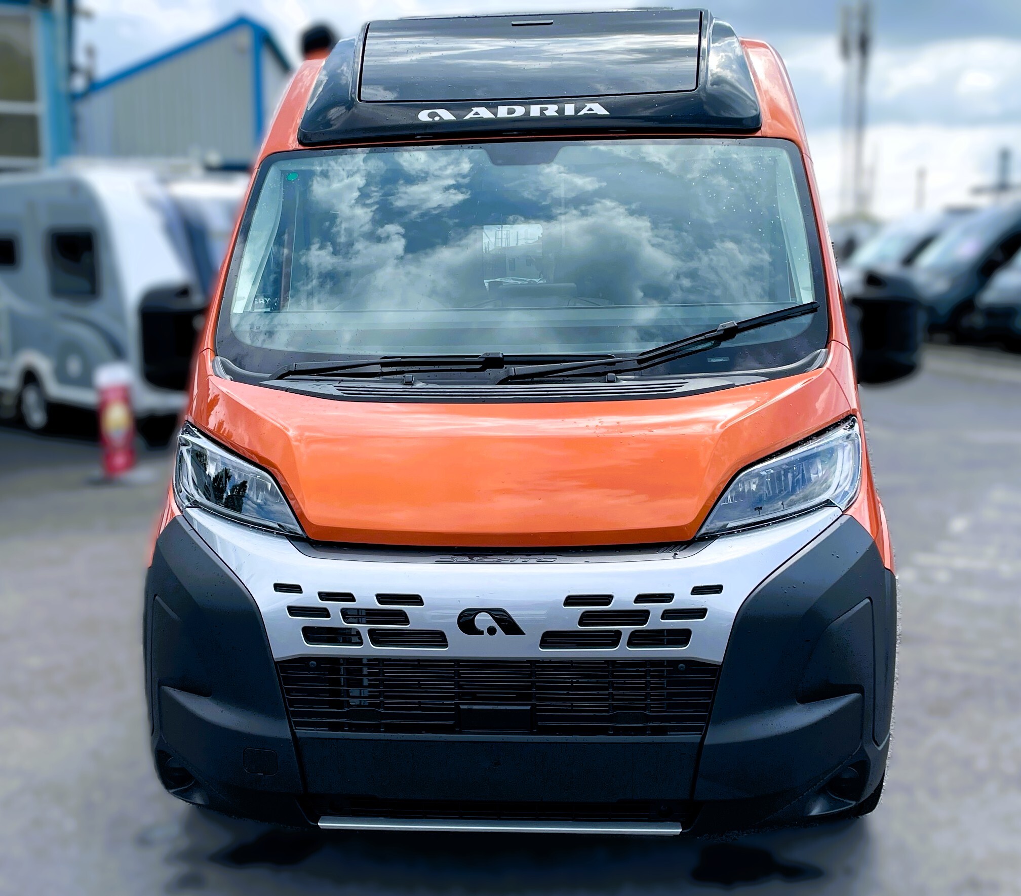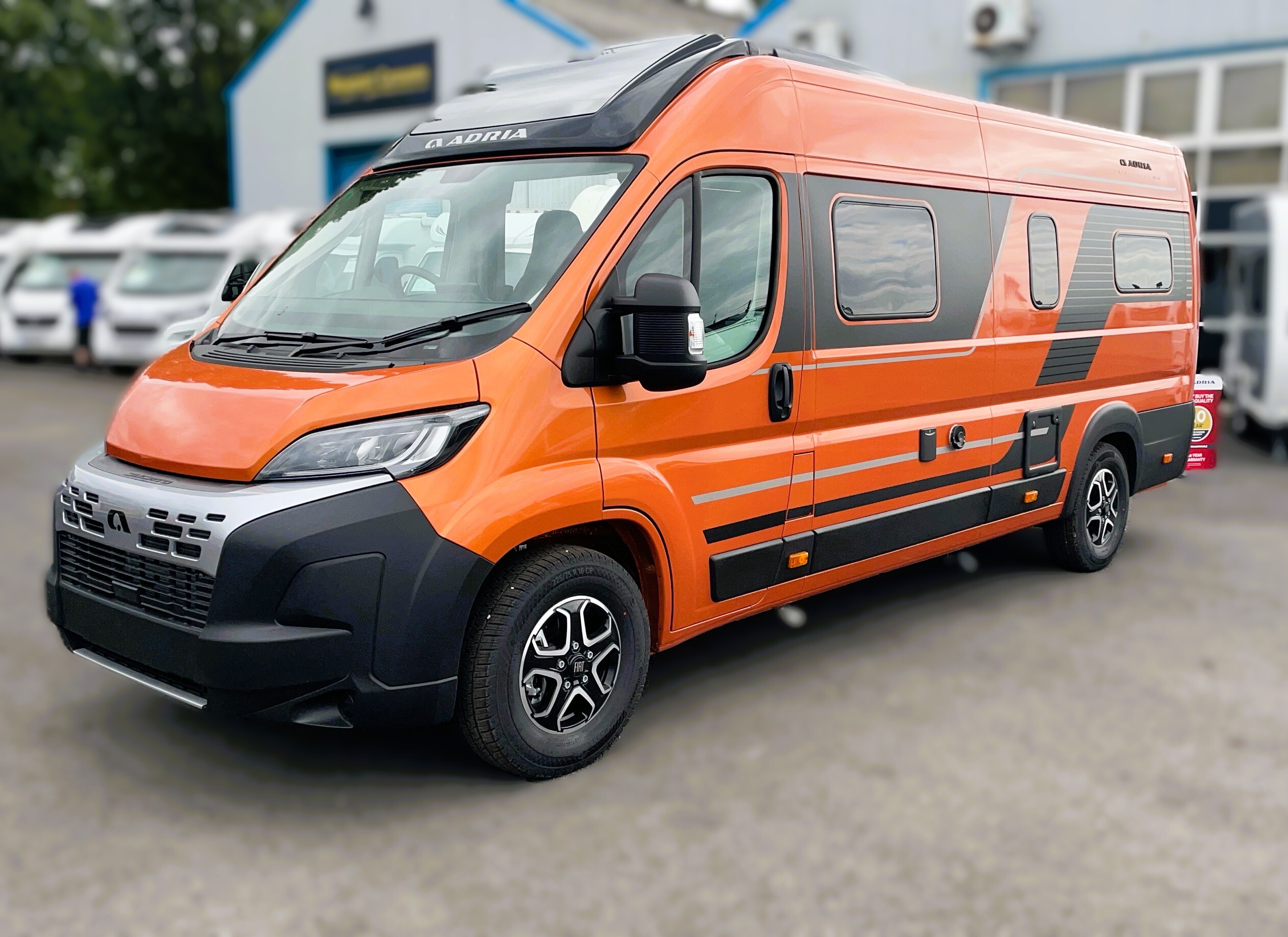 2025 Adria Twin Supreme 640LB Fiat 140BHP, Automatic 8-speed AT8, All Inclusive, Fiat Lux Pack, BATIC ORANGE 505 (black Front Bumper),10” Radio Navi DAB Rev. Camera, Full LED headlamps, Electric Park brake, Fuel tank 60L Diesel-electric heater with boiler Truma Combi D 6 E, Auxiliary battery X2 100ah AGM Solar Panel, PANORAMIC ROOF WINDOW WITH OPENING OPTION, Refrigerator with compressor, Flyscreen sliding door, Thule Awning, AddOn Airbed with TearGuard & Air pump for "AddOn bed", Outdoor table holder, LEATHER EDWARD Interior Cushions CARBON KNIT, 640 SLB With cross rear bed 196 x 145 cm