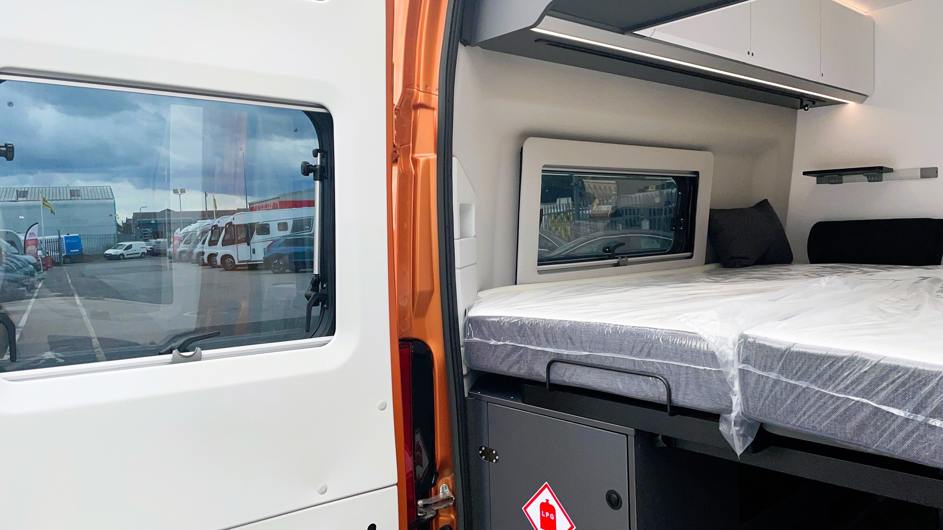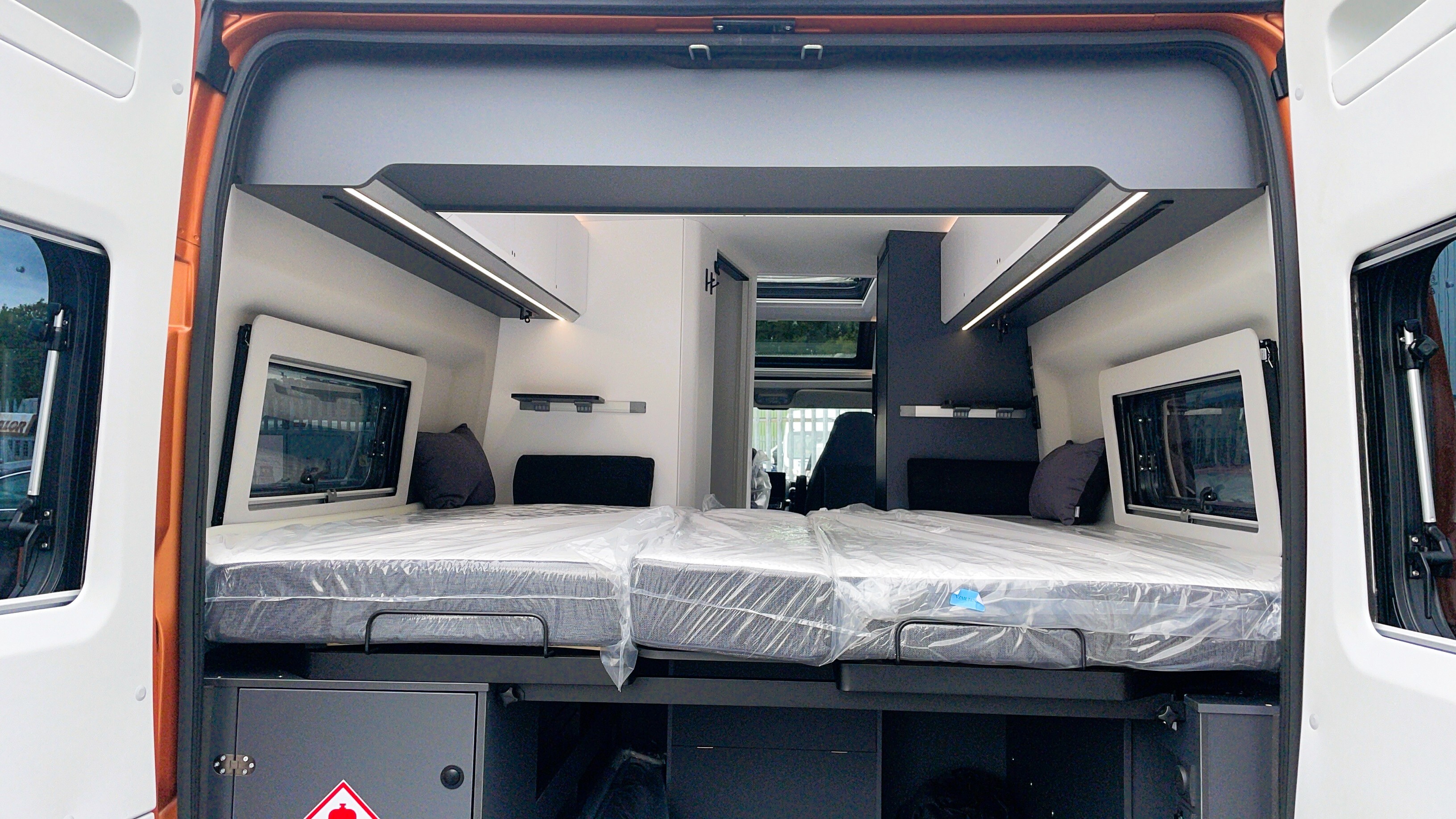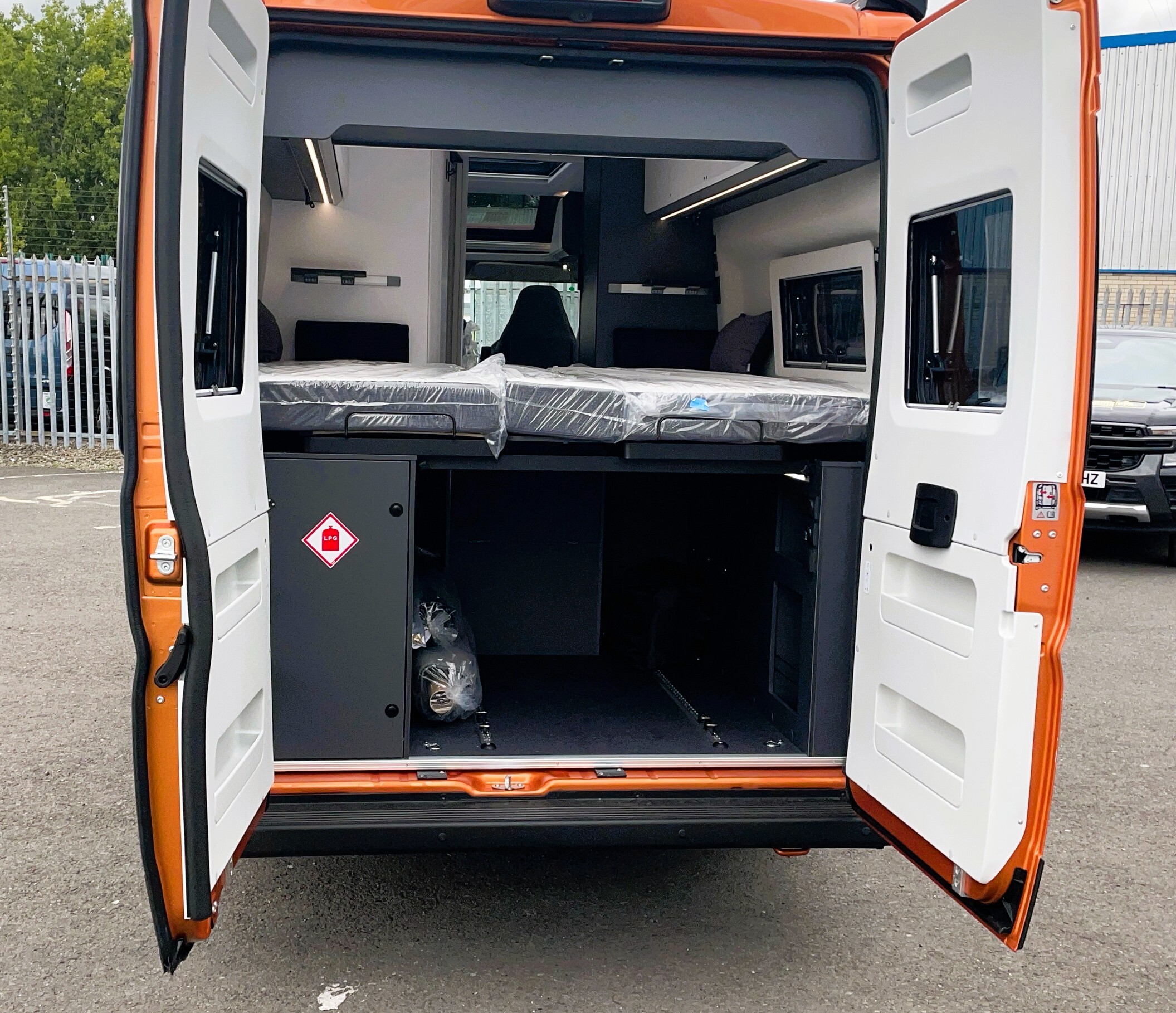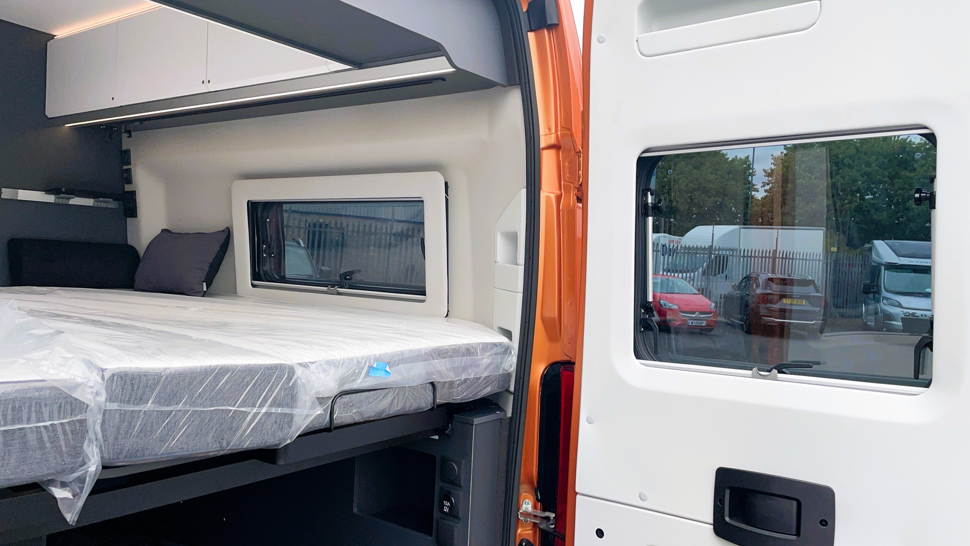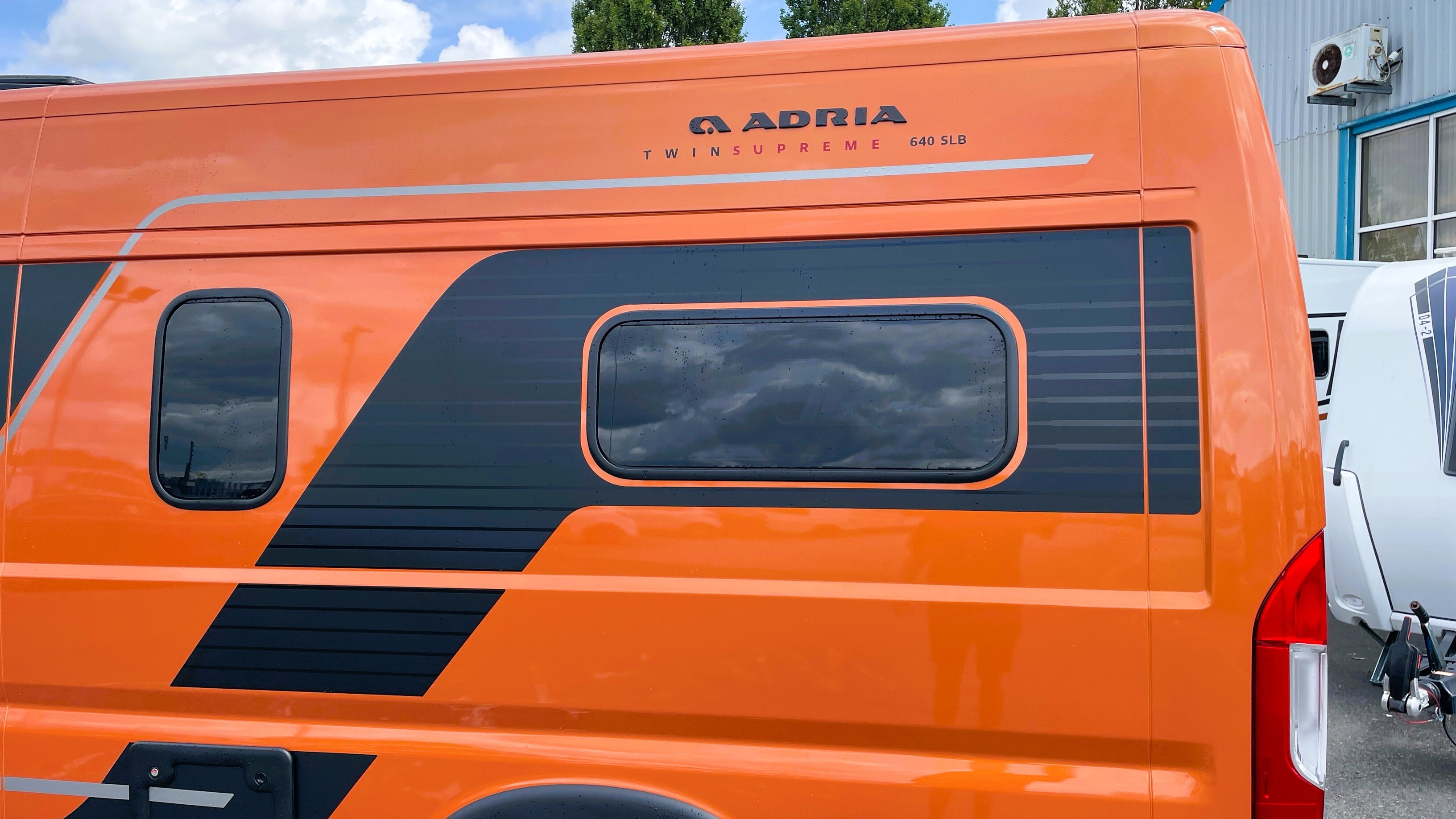 2025 Adria Twin Supreme 640LB Fiat 140BHP, Automatic 8-speed AT8, All Inclusive, Fiat Lux Pack, BATIC ORANGE 505 (black Front Bumper),10” Radio Navi DAB Rev. Camera, Full LED headlamps, Electric Park brake, Fuel tank 60L Diesel-electric heater with boiler Truma Combi D 6 E, Auxiliary battery X2 100ah AGM Solar Panel, PANORAMIC ROOF WINDOW WITH OPENING OPTION, Refrigerator with compressor, Flyscreen sliding door, Thule Awning, AddOn Airbed with TearGuard & Air pump for "AddOn bed", Outdoor table holder, LEATHER EDWARD Interior Cushions CARBON KNIT, 640 SLB With cross rear bed 196 x 145 cm