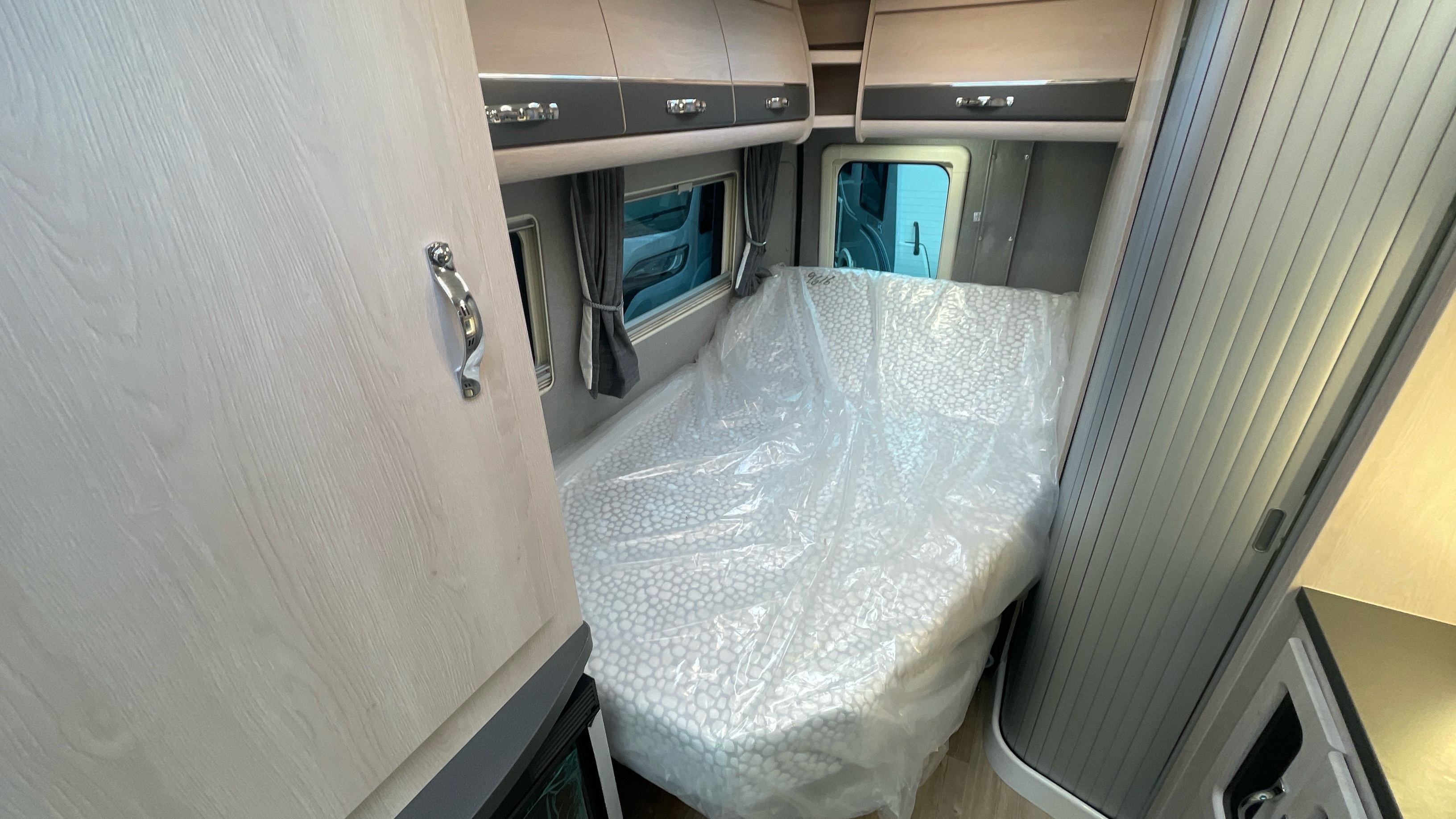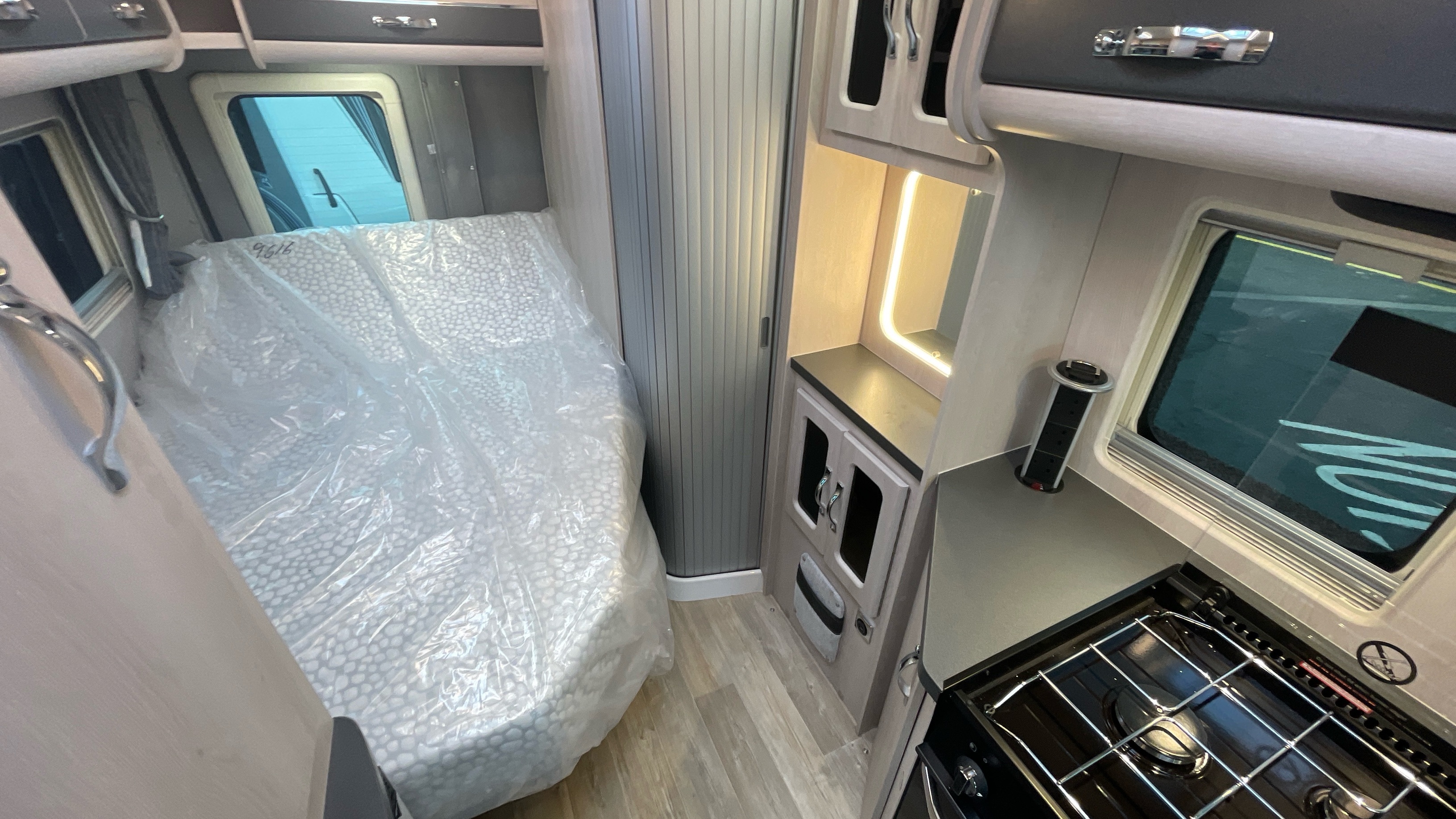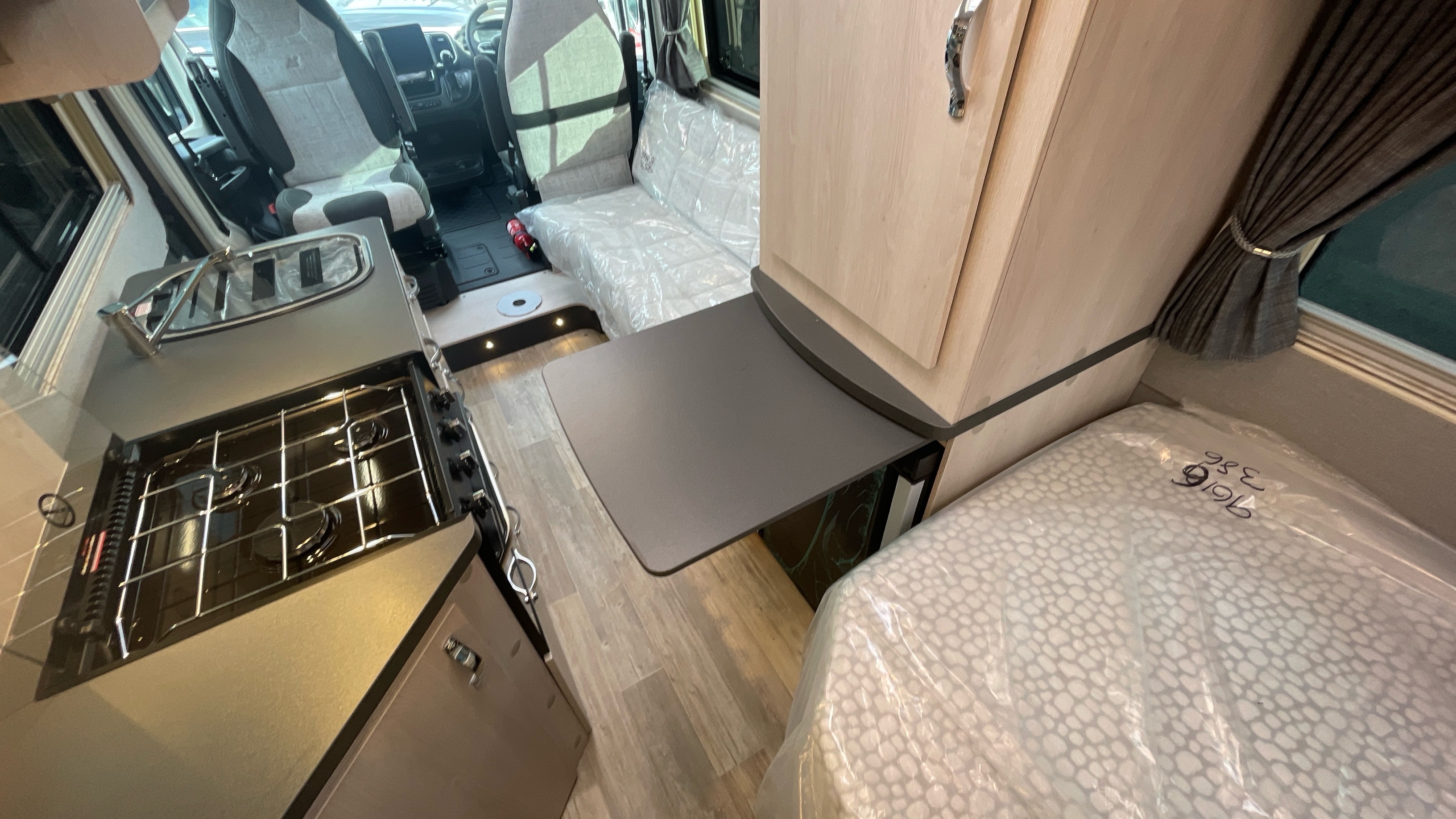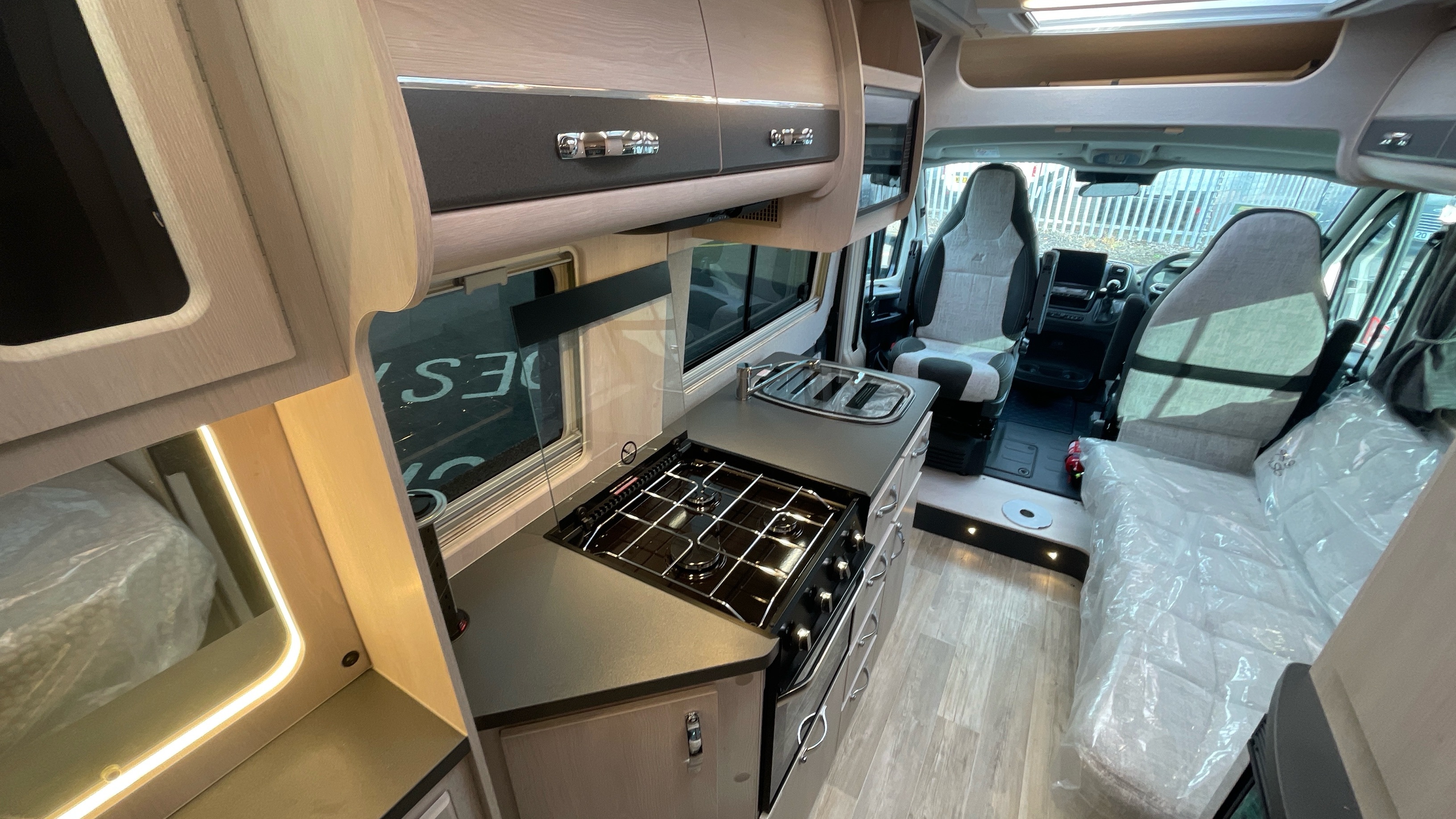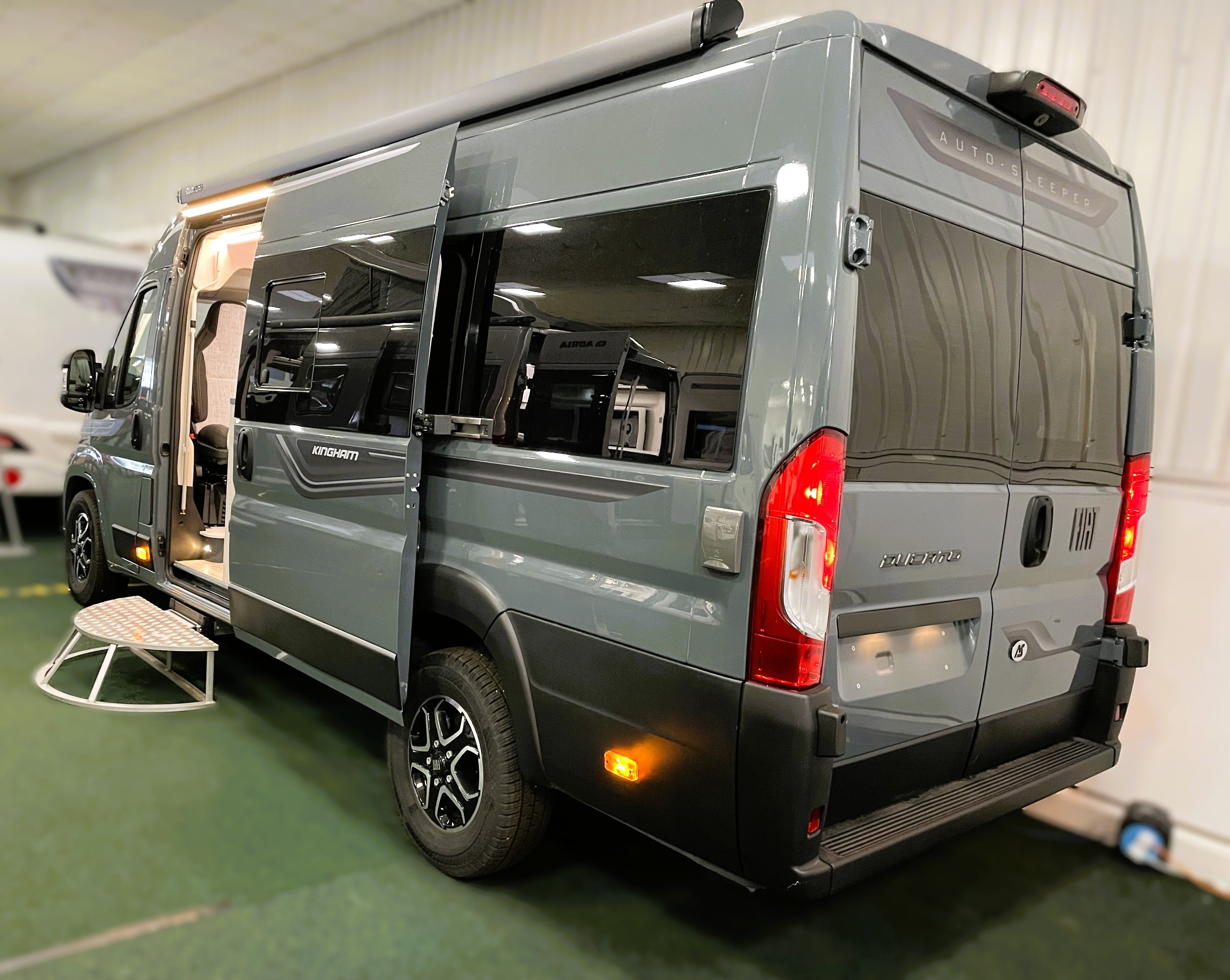 The Kingham raises the bar to an all-new level, featuring a fixed French double bed that can slide back to lift the rear section to provide backrest support, pulls down flat for nighttime use and can lift up on gas struts for access to the large storage area beneath. A fully featured kitchen is on the nearside with bespoke sofa seating and swiveling cab seats at the front combining to make this a unique and exceptional proposition for luxury 2 berth accommodation.