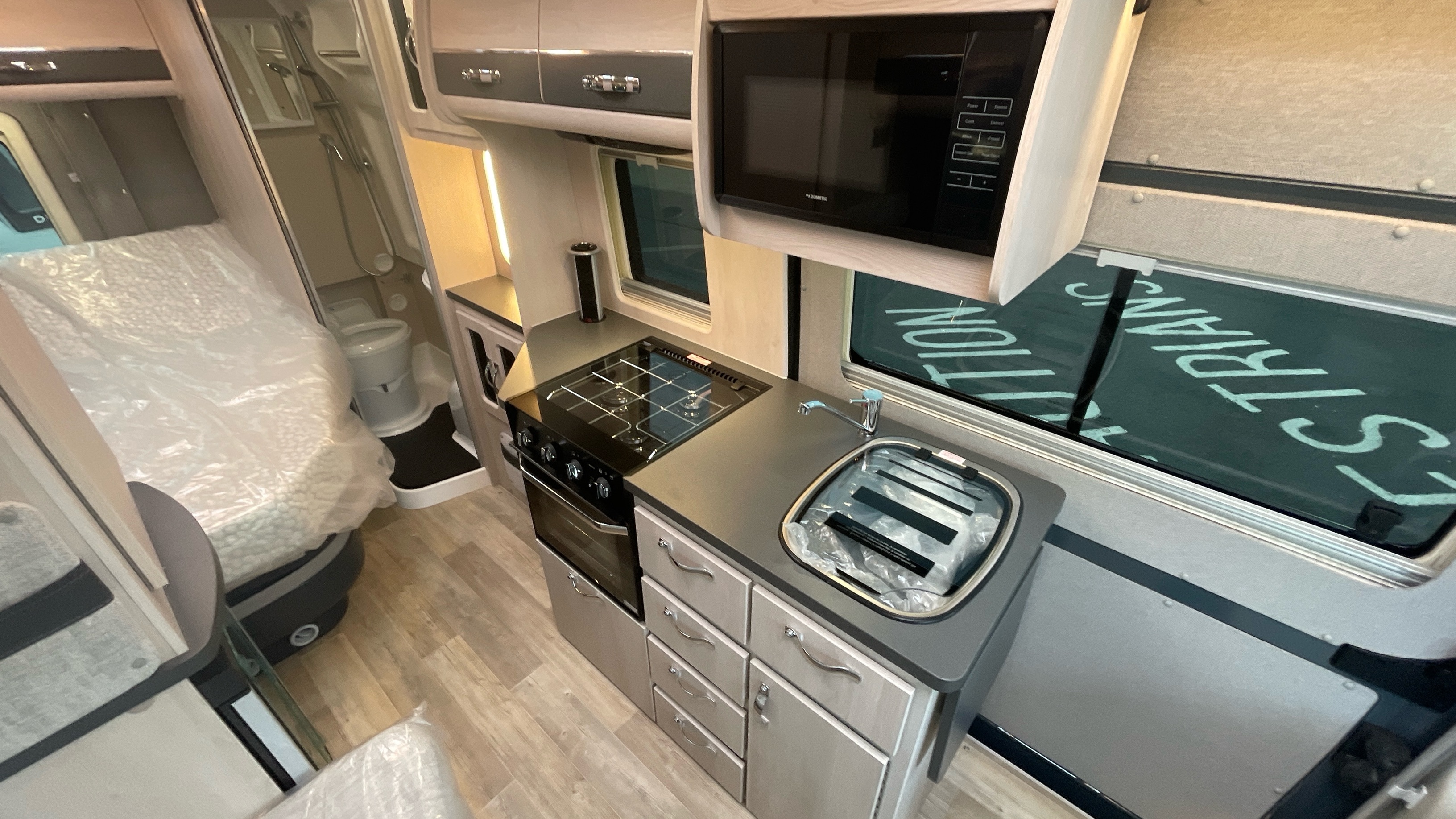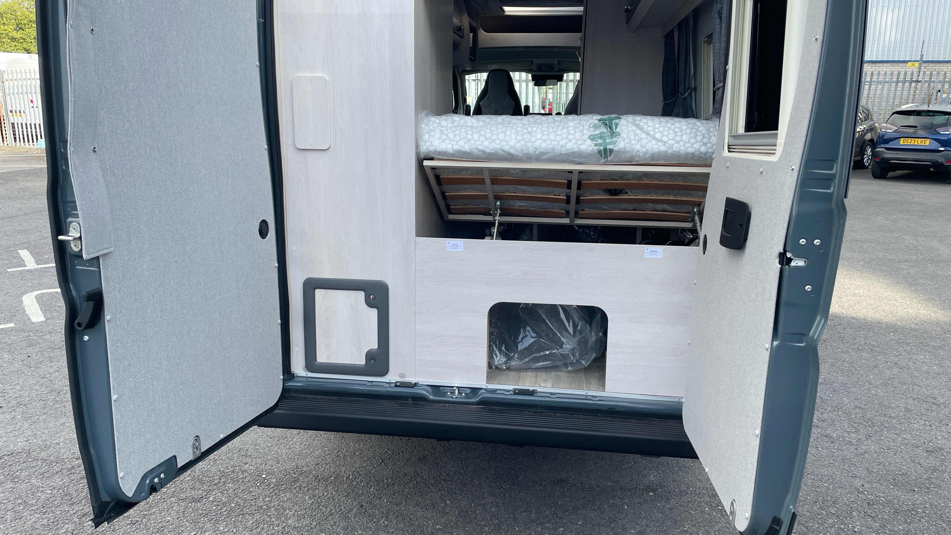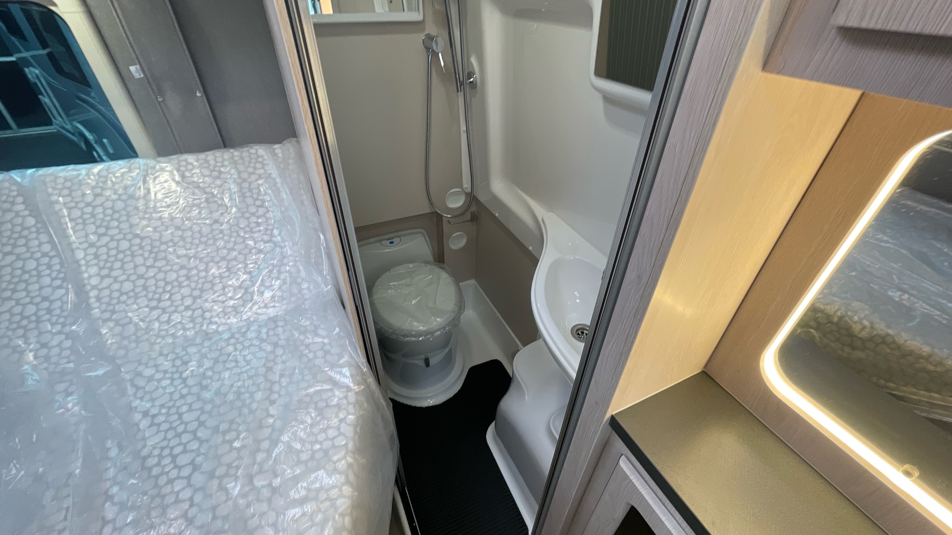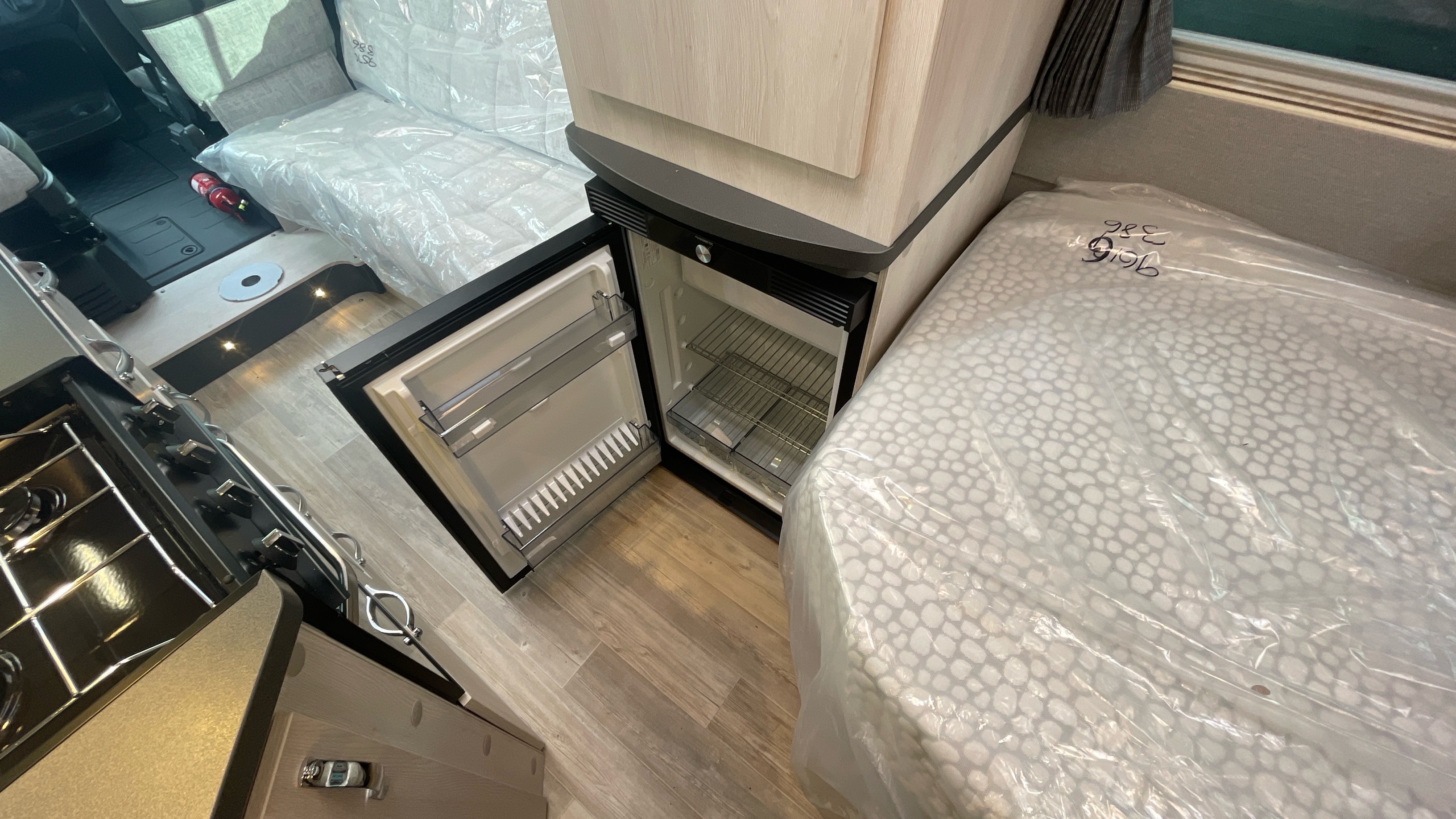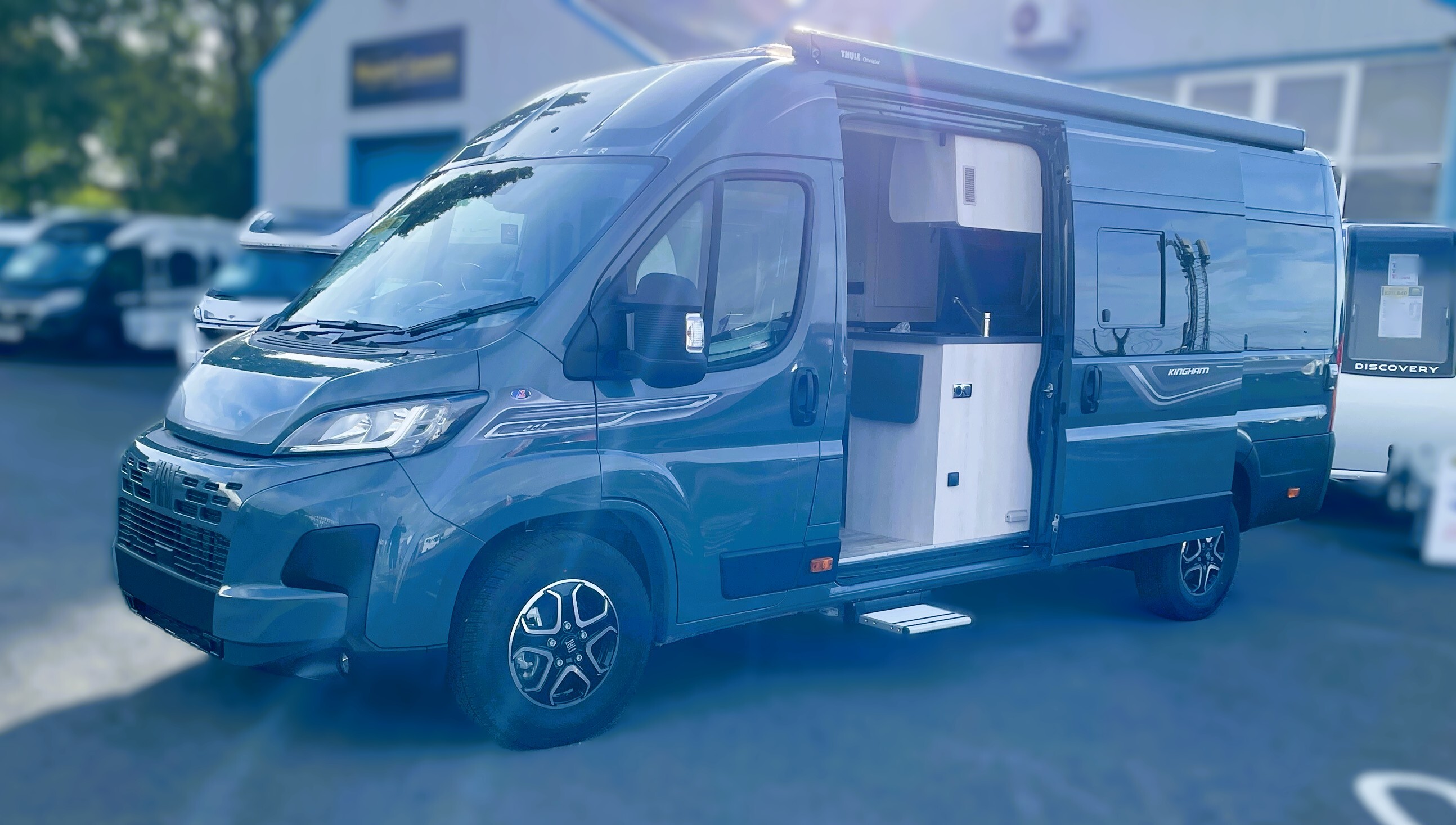 The Kingham raises the bar to an all-new level, featuring a fixed French double bed that can slide back to lift the rear section to provide backrest support, pulls down flat for nighttime use and can lift up on gas struts for access to the large storage area beneath. A fully featured kitchen is on the nearside with bespoke sofa seating and swiveling cab seats at the front combining to make this a unique and exceptional proposition for luxury 2 berth accommodation.