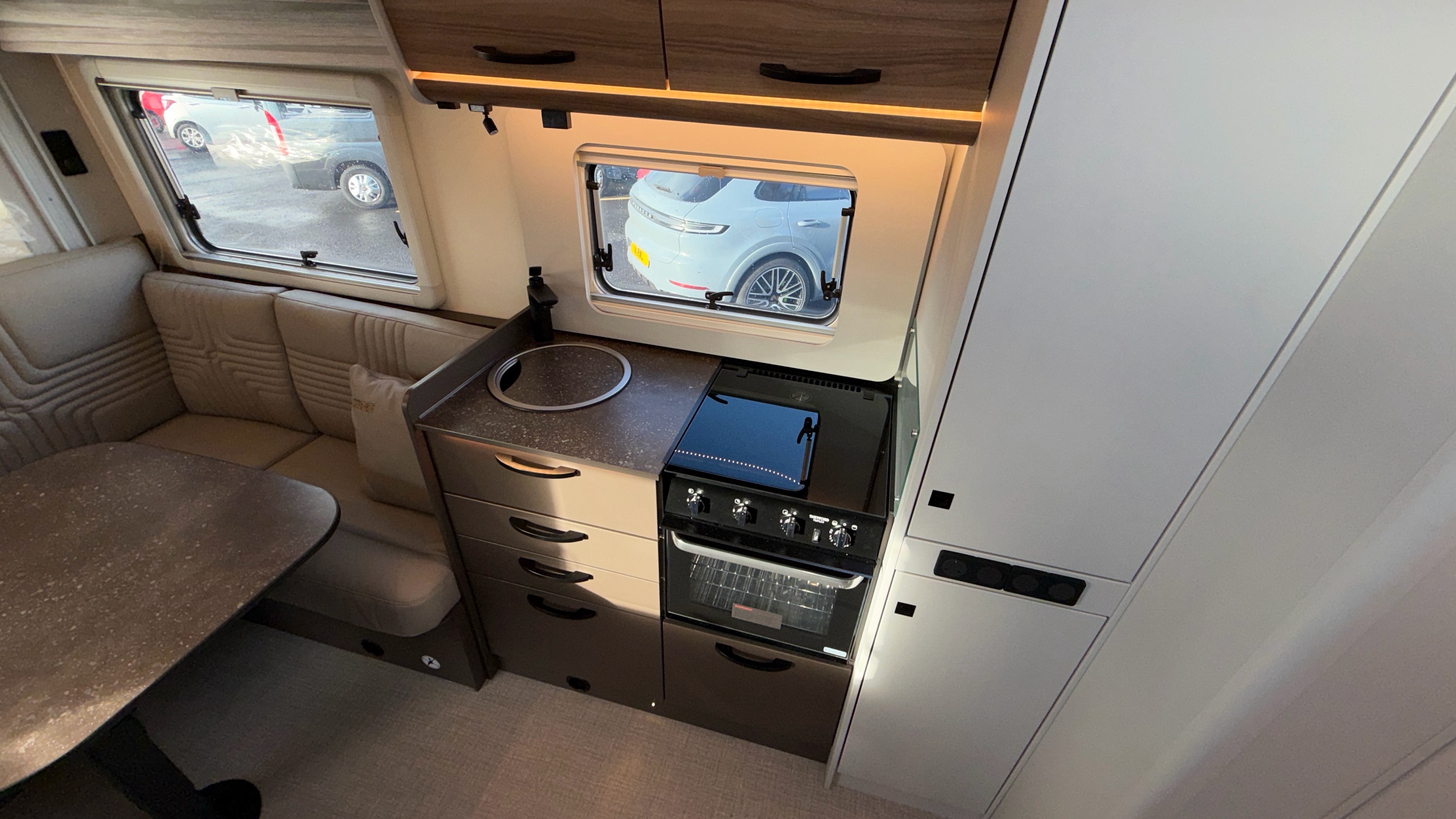 The Bürstner B66 Edition 684G is a smart companion that scores with versatility and a clever design. Whether adventures in nature or relaxed holidays, this all-rounder always adapts to your plans. With flexible sitting and sleeping concepts and a modern design, it is as suitable for couples as it is for families.