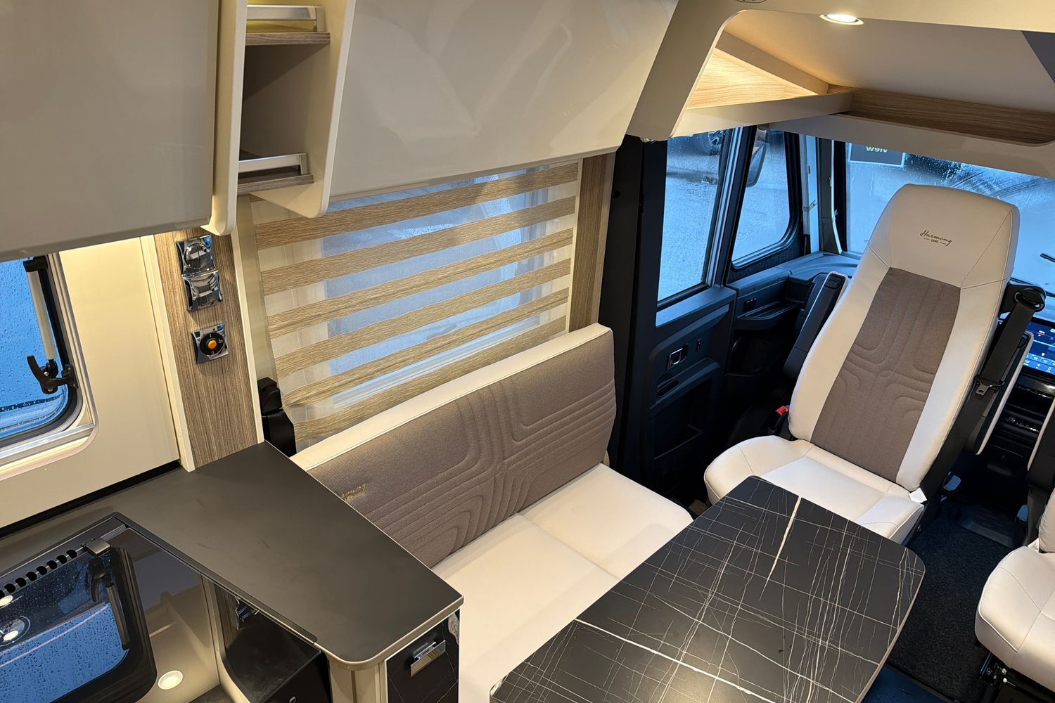 Indirect lighting in the entrance element, Indirect lighting above the hand wash basin in the toilet room, Indirect lighting under the overhead cupboards in the seating area on the driver's side