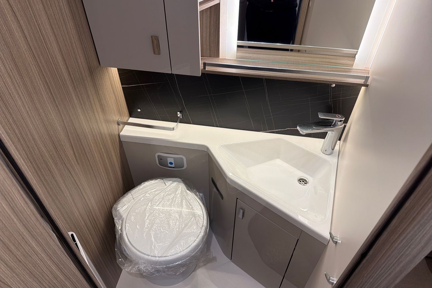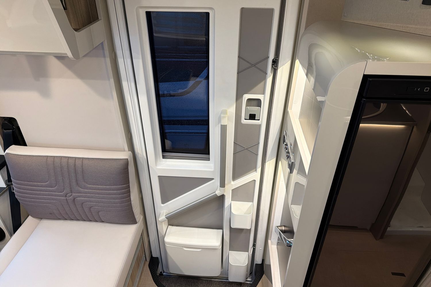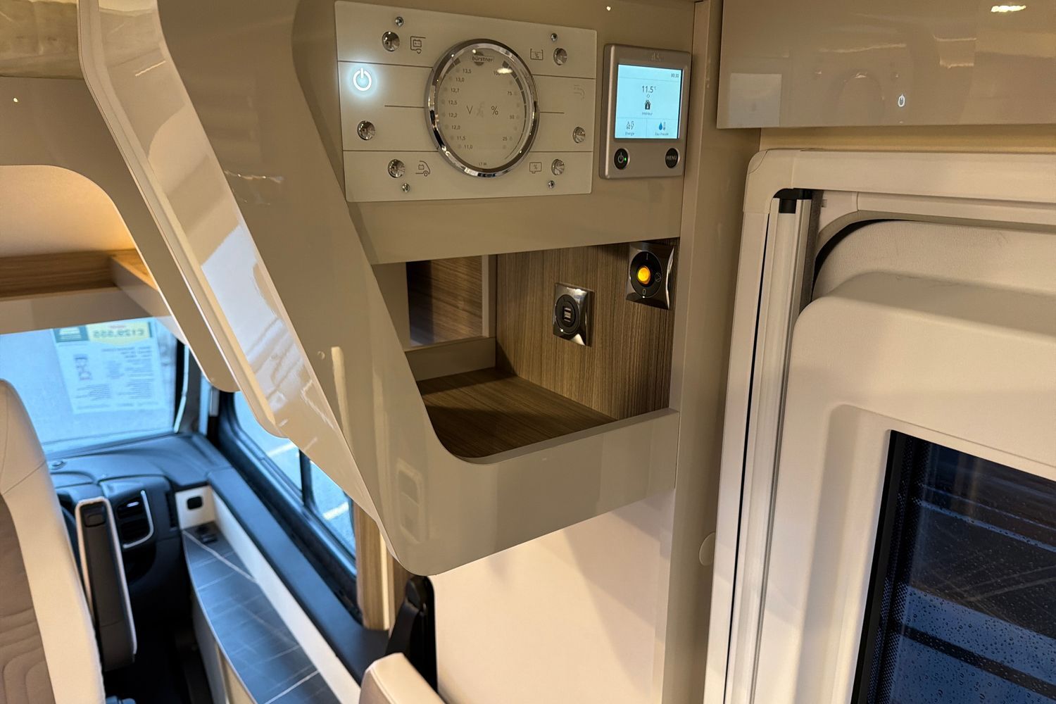 Backlit mirror in toilet room, Indirect lighting storage compartments drop-down bed front, Indirect lighting shower column, Indirect lighting of the