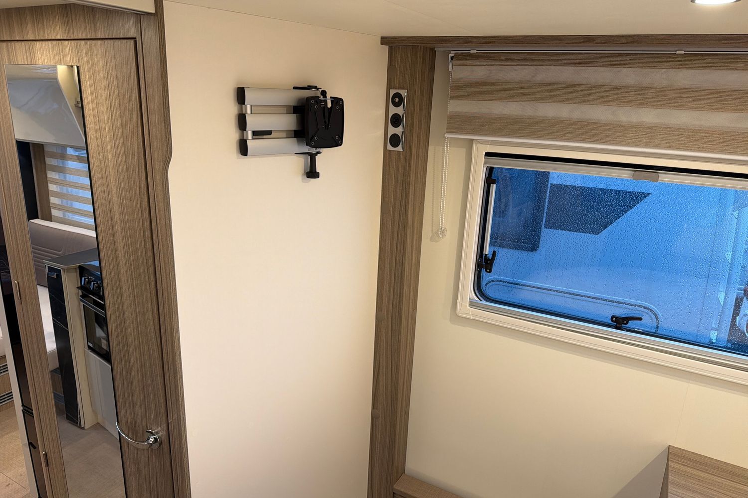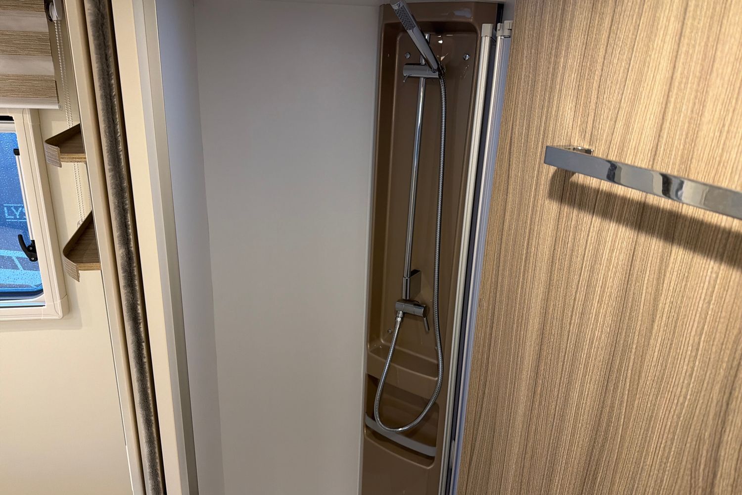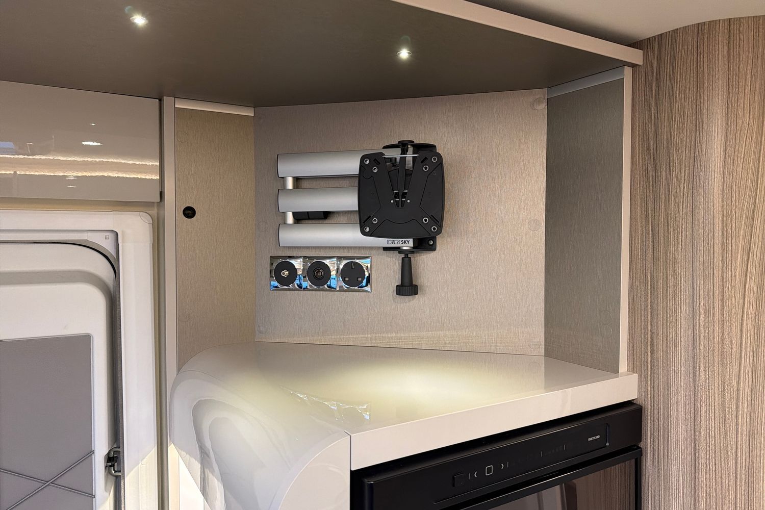 Backlit mirror in toilet room, Indirect lighting storage compartments drop-down bed front, Indirect lighting shower column, Indirect lighting of the