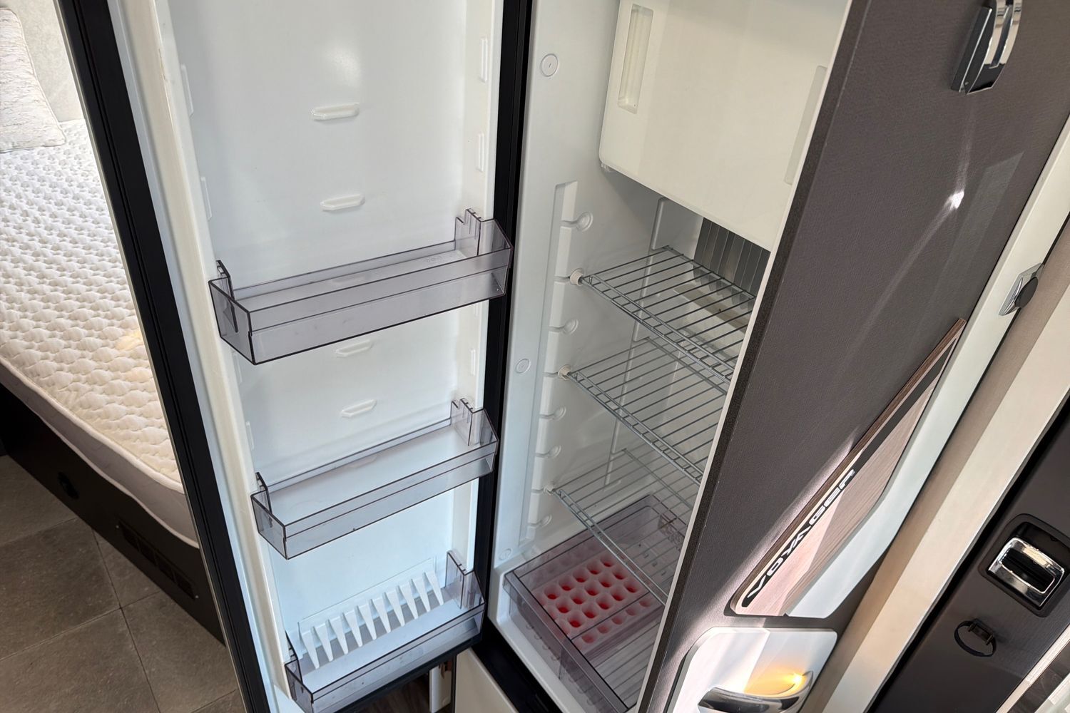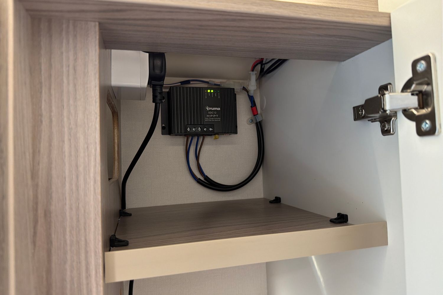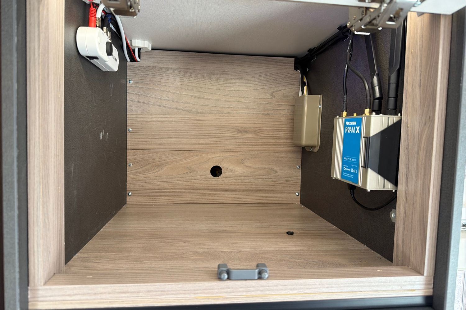 Integrated Thule‑style awning light. Good garage/storage capacity beneath the fixed bed